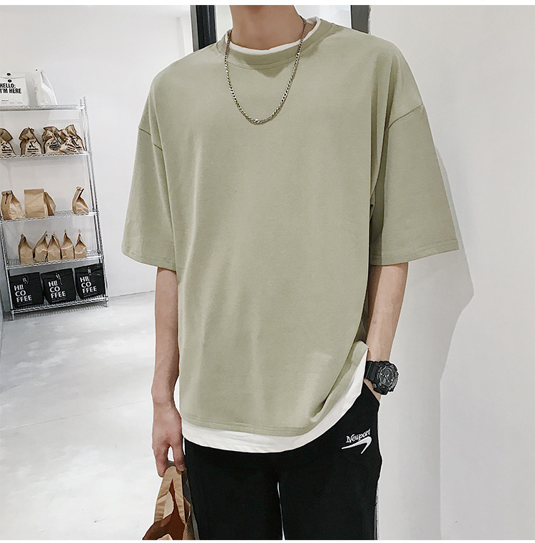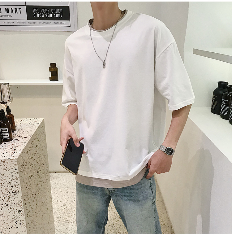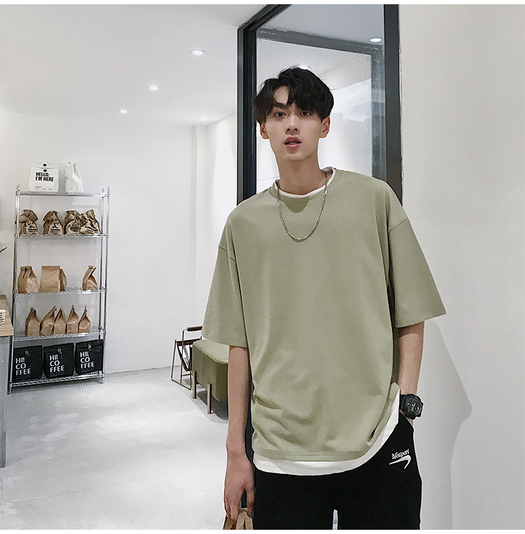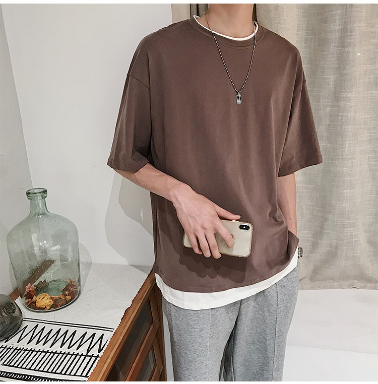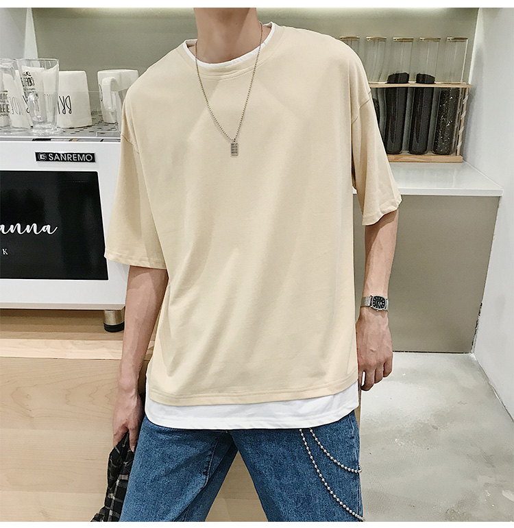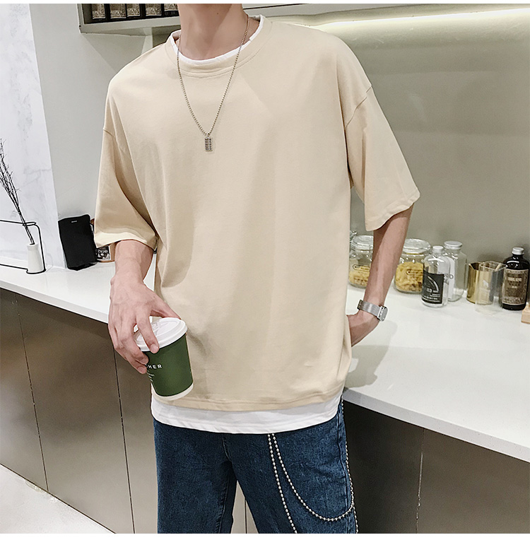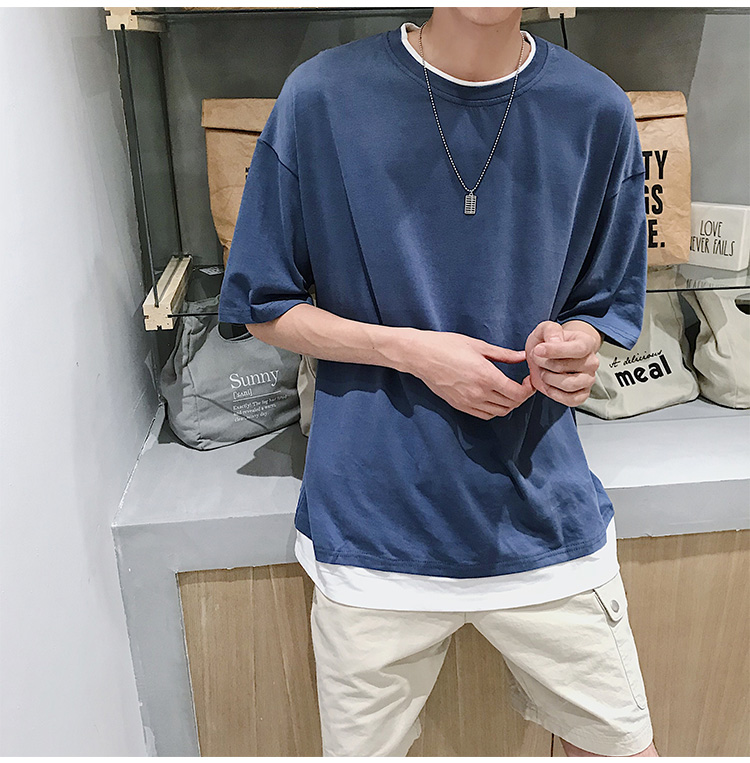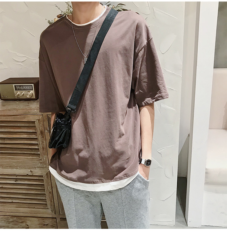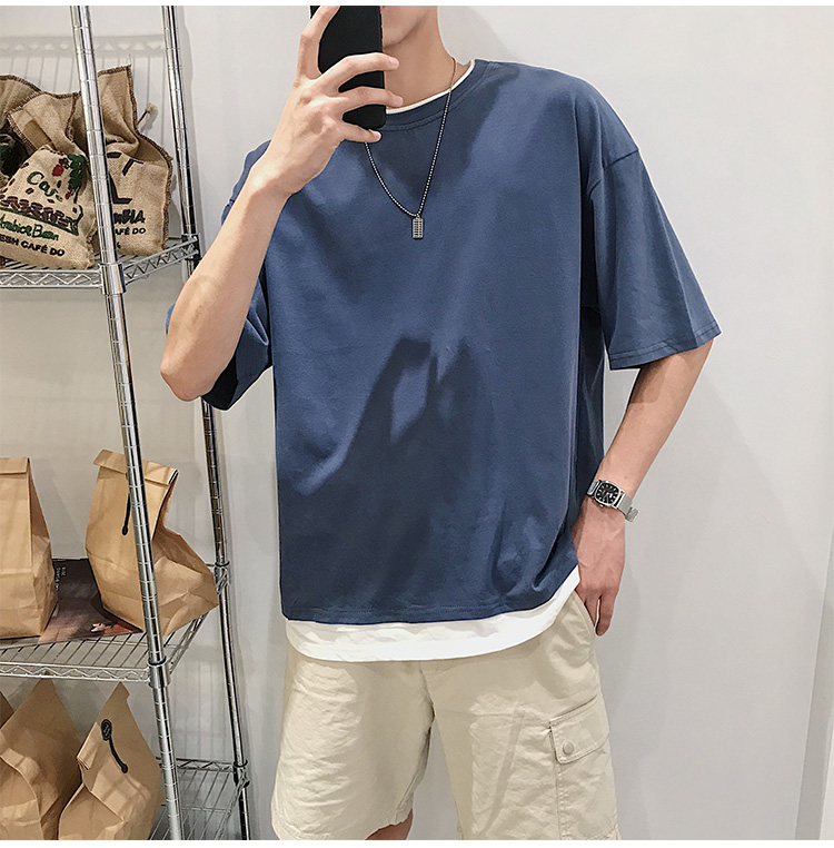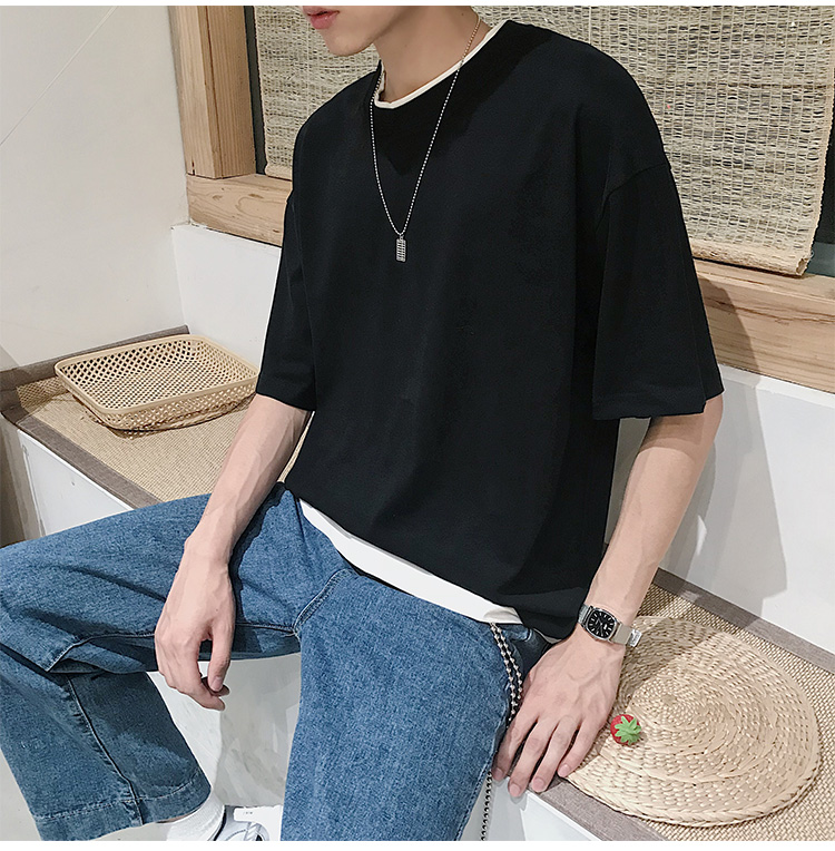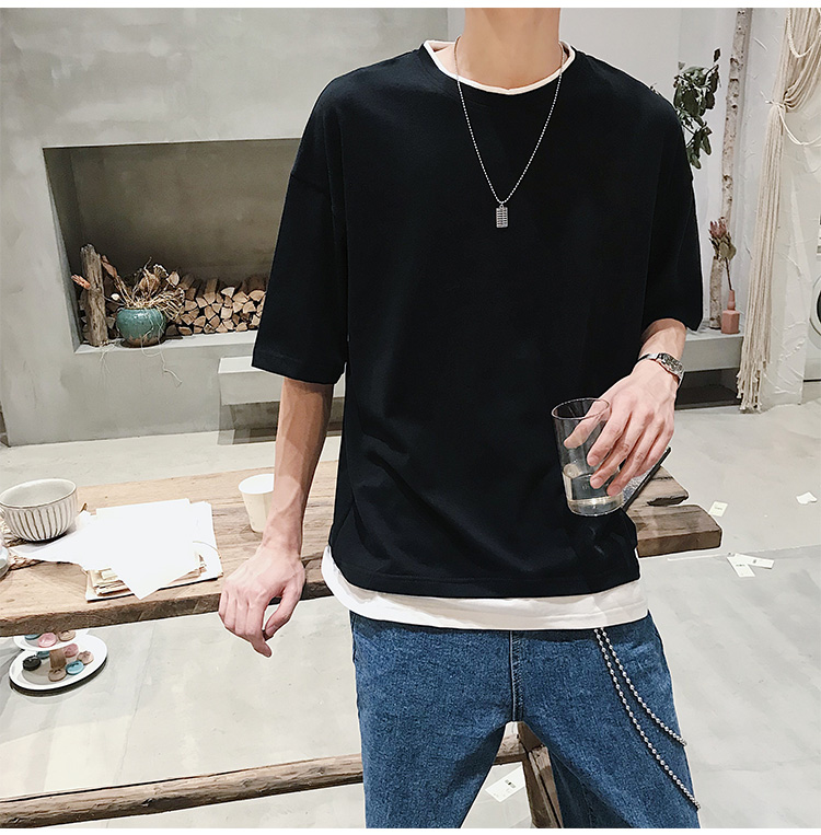 春夏季假兩件衛衣男短袖套頭港風bf寬松韓版潮流學生ins潮百搭T恤