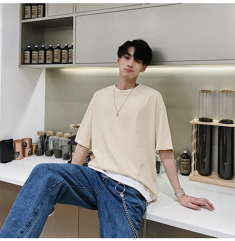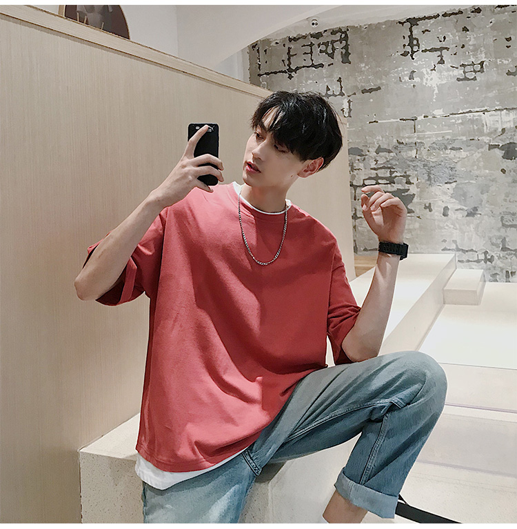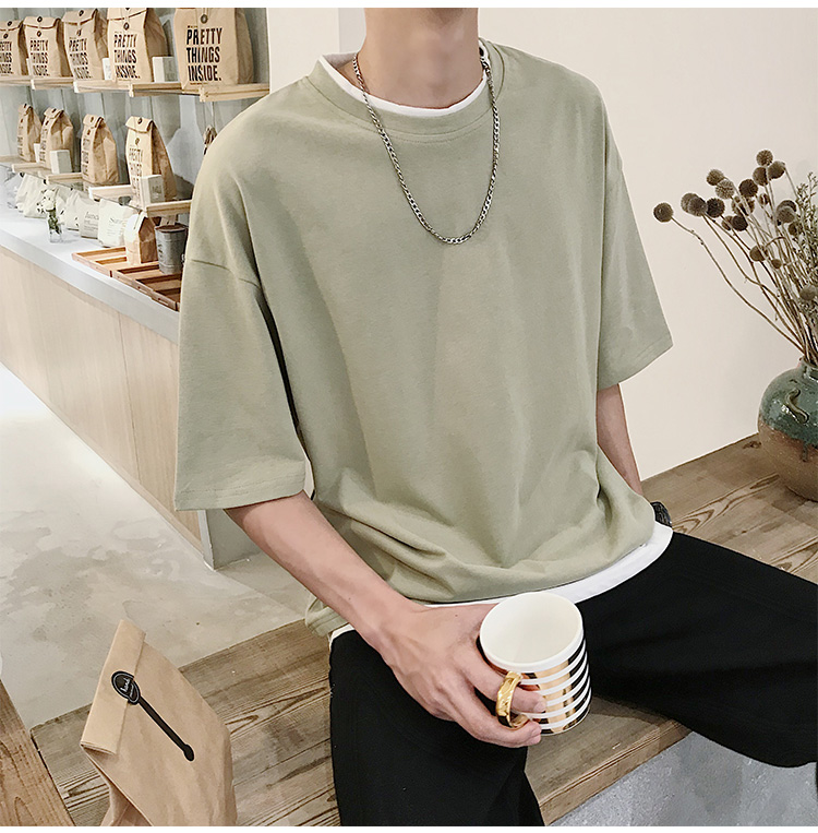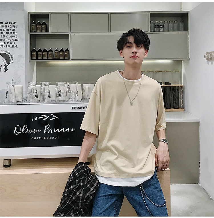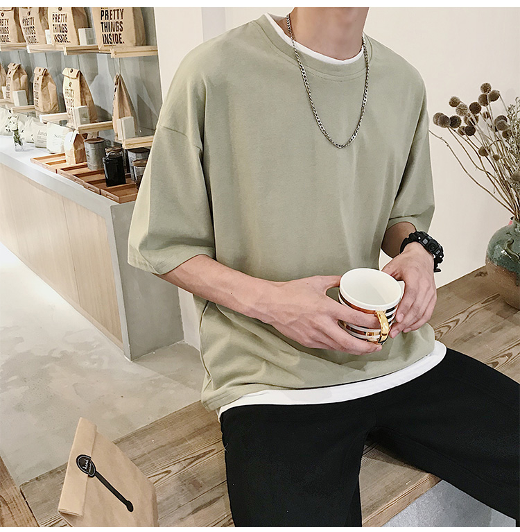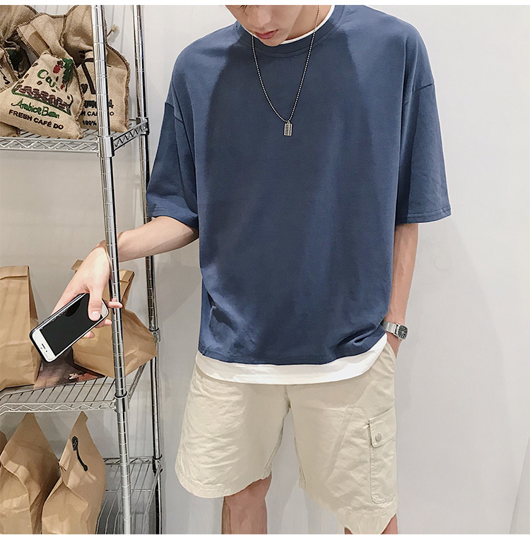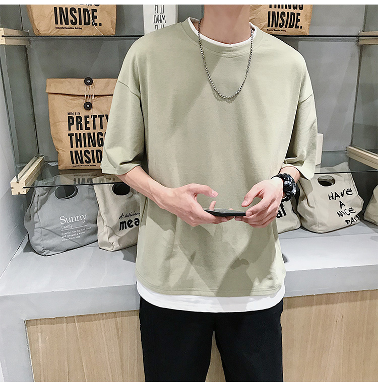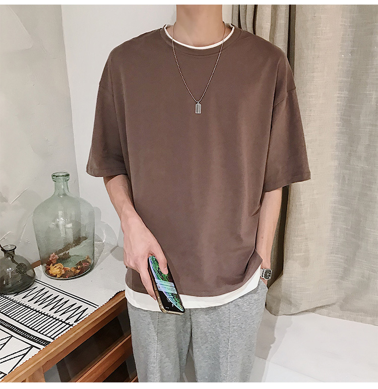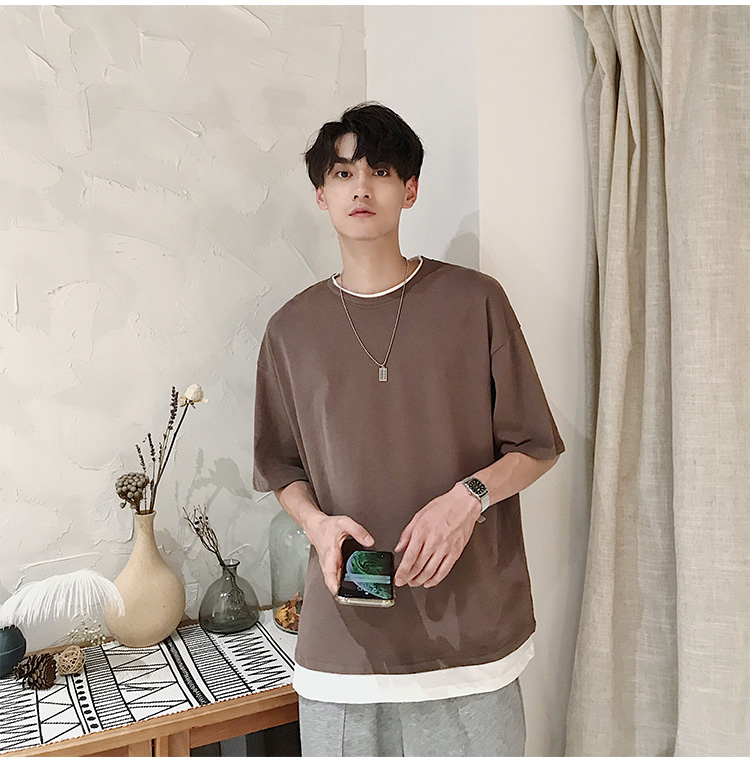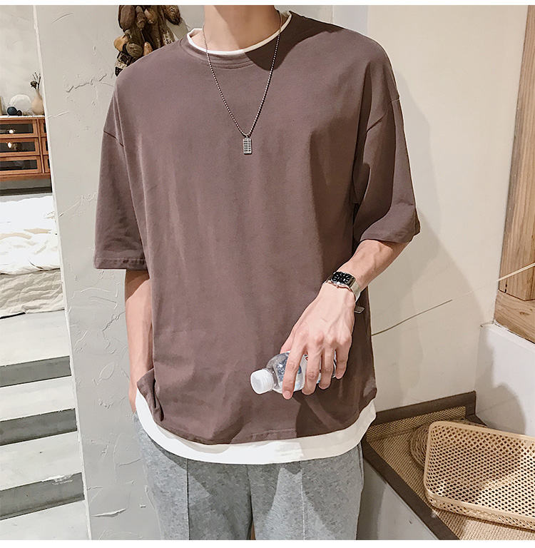 春夏季假兩件衛衣男短袖套頭港風bf寬松韓版潮流學生ins潮百搭T恤