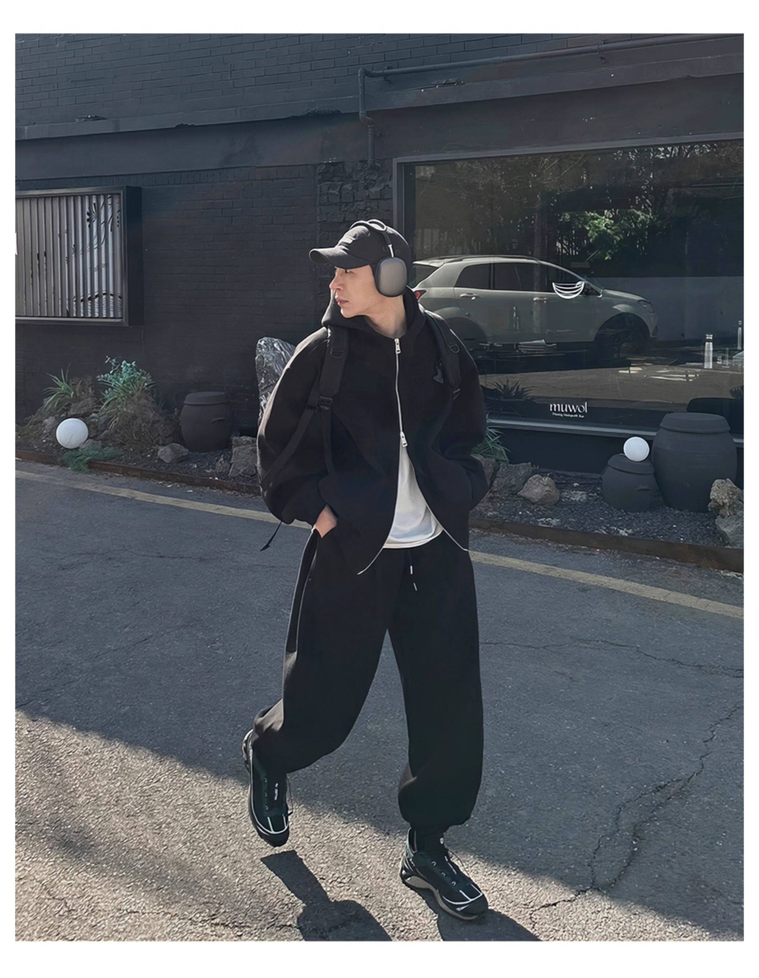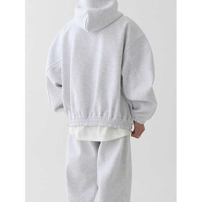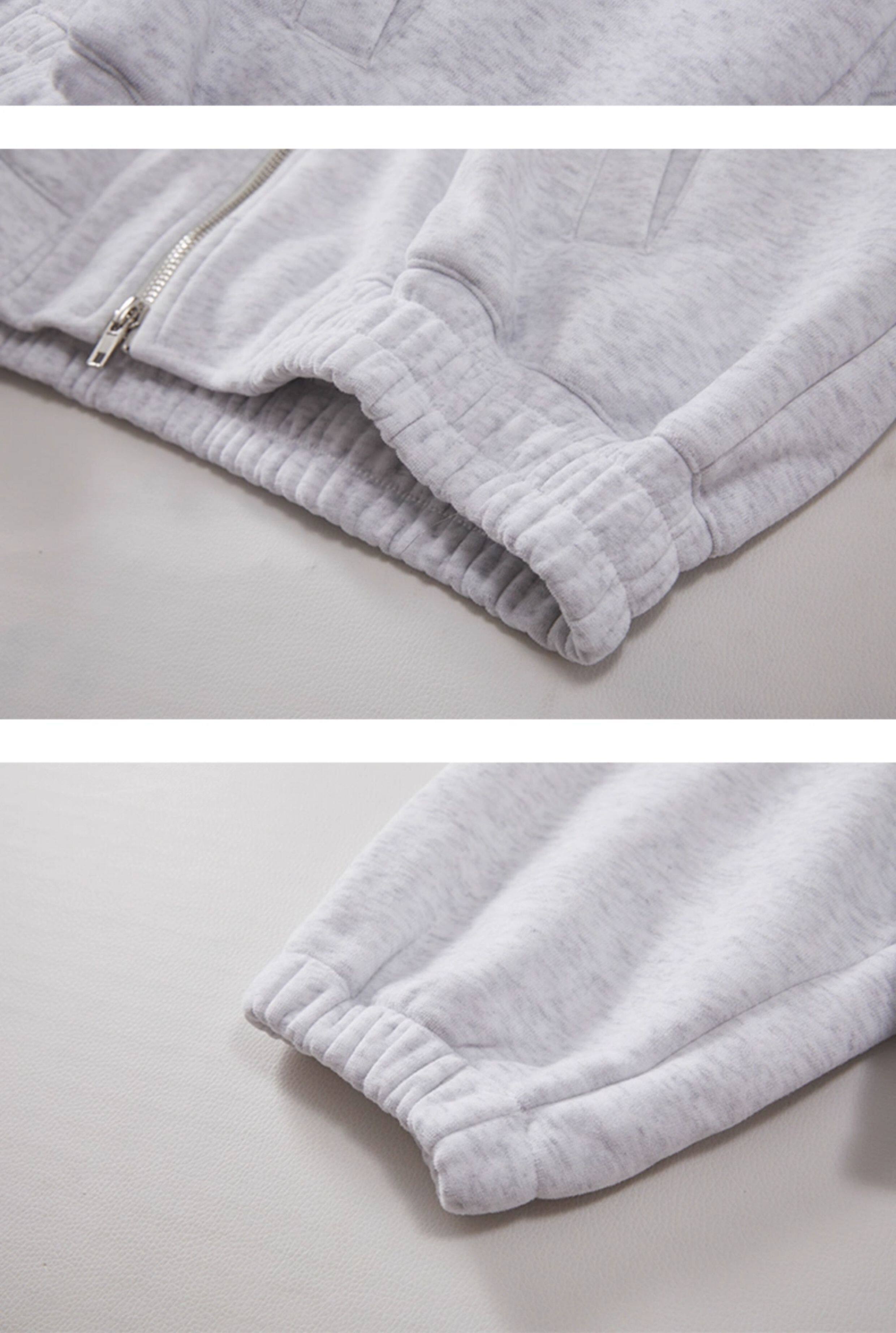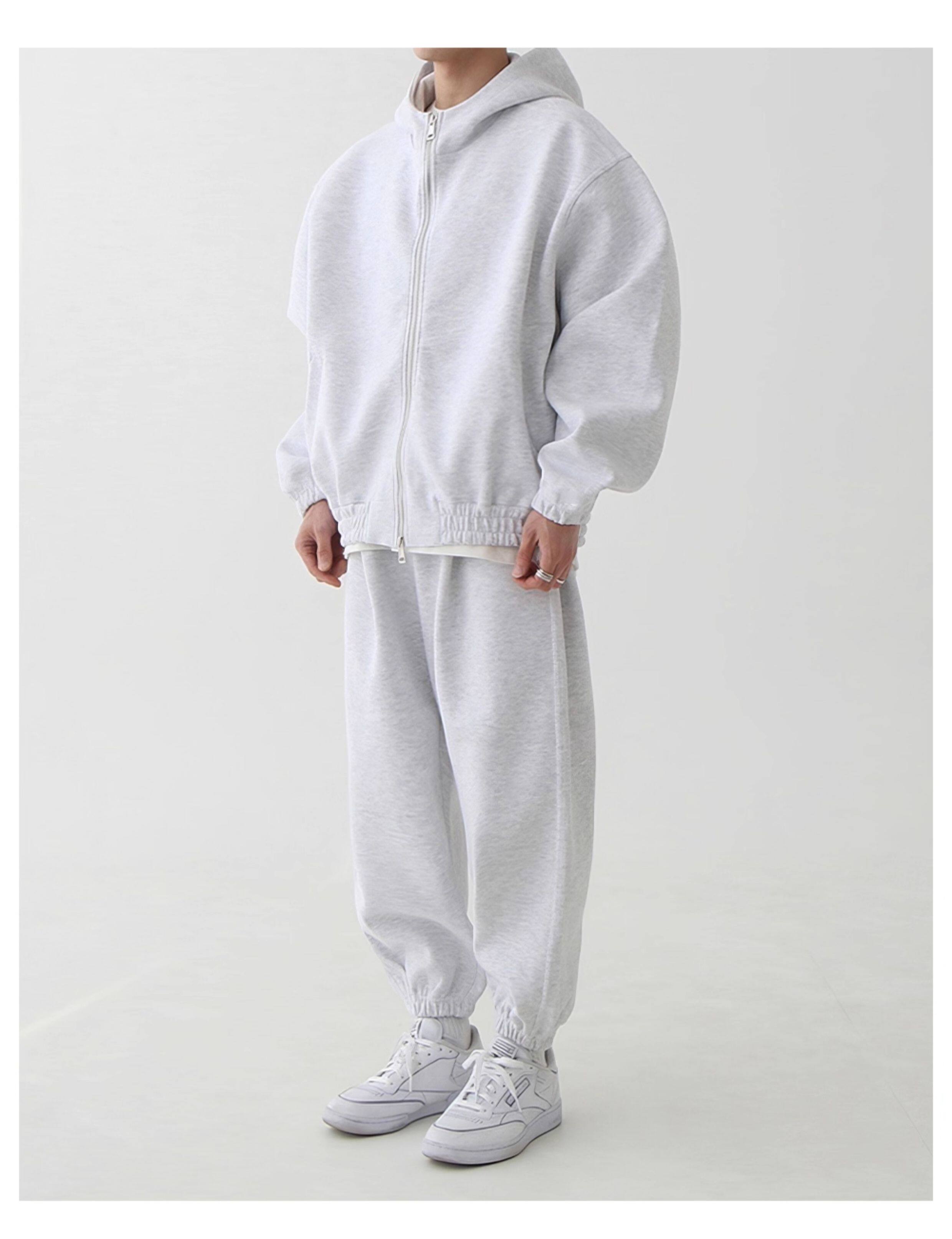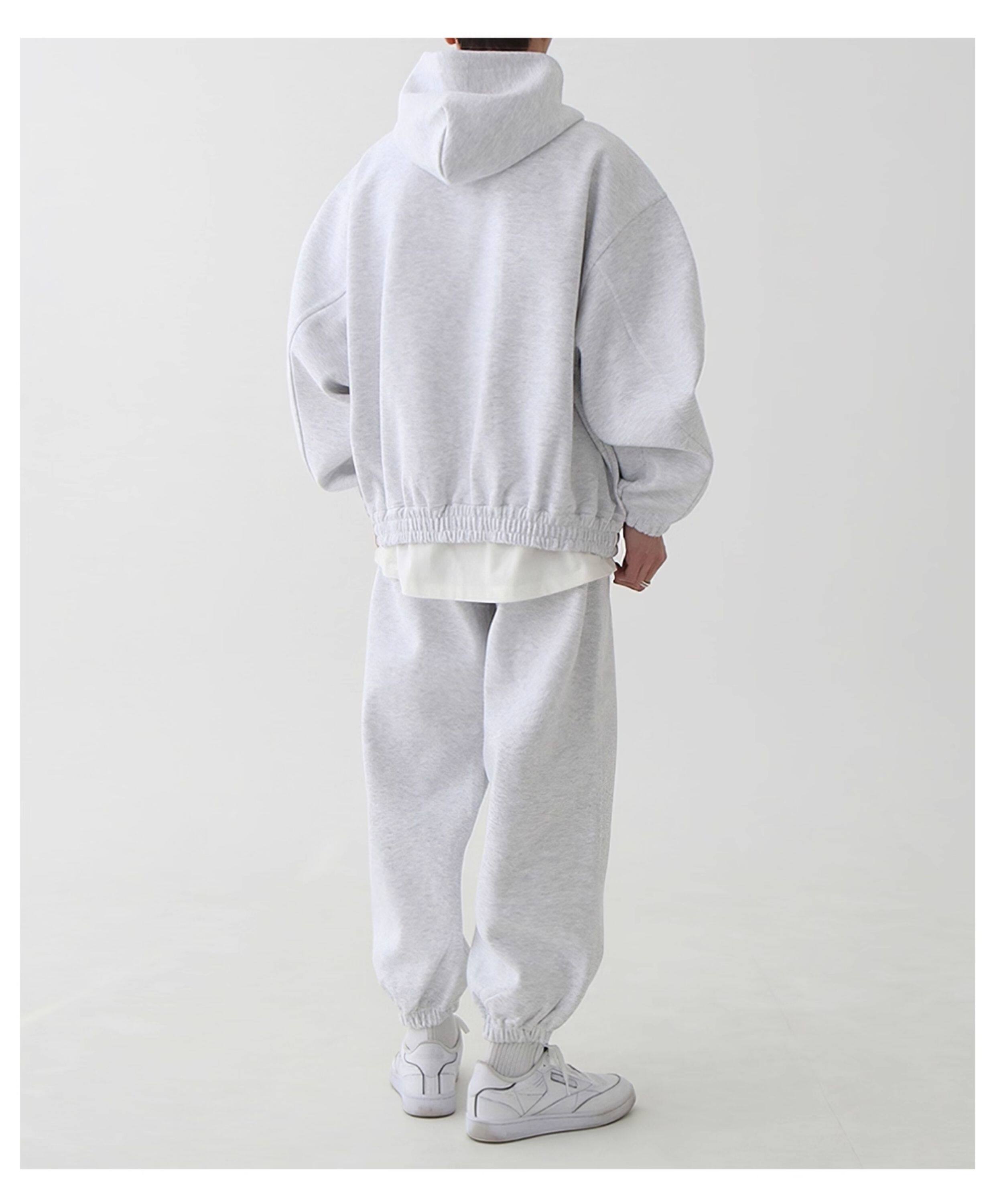 加絨連帽衛衣套裝男士春秋季美式重磅拉鍊外套寬松休閒運動風衛褲