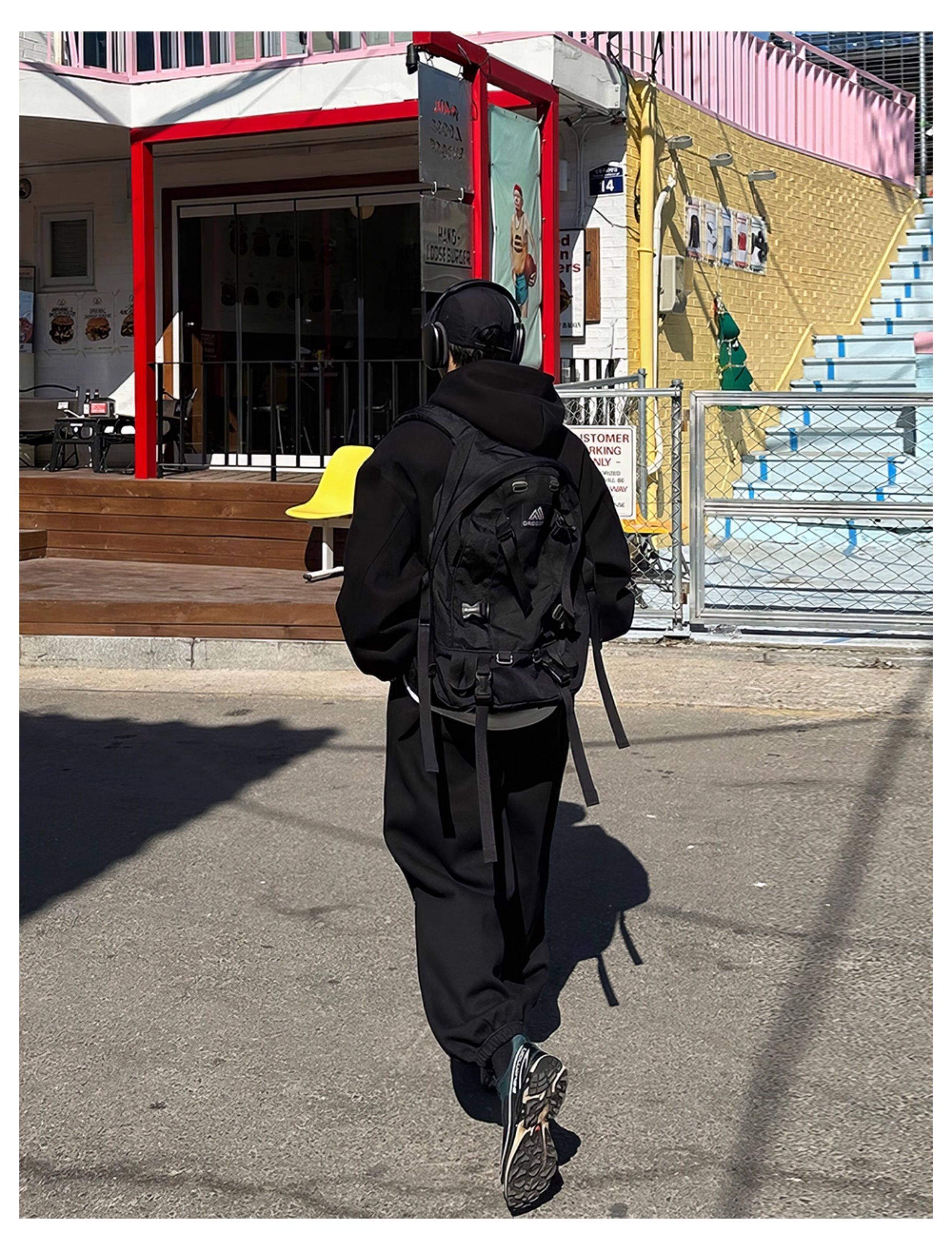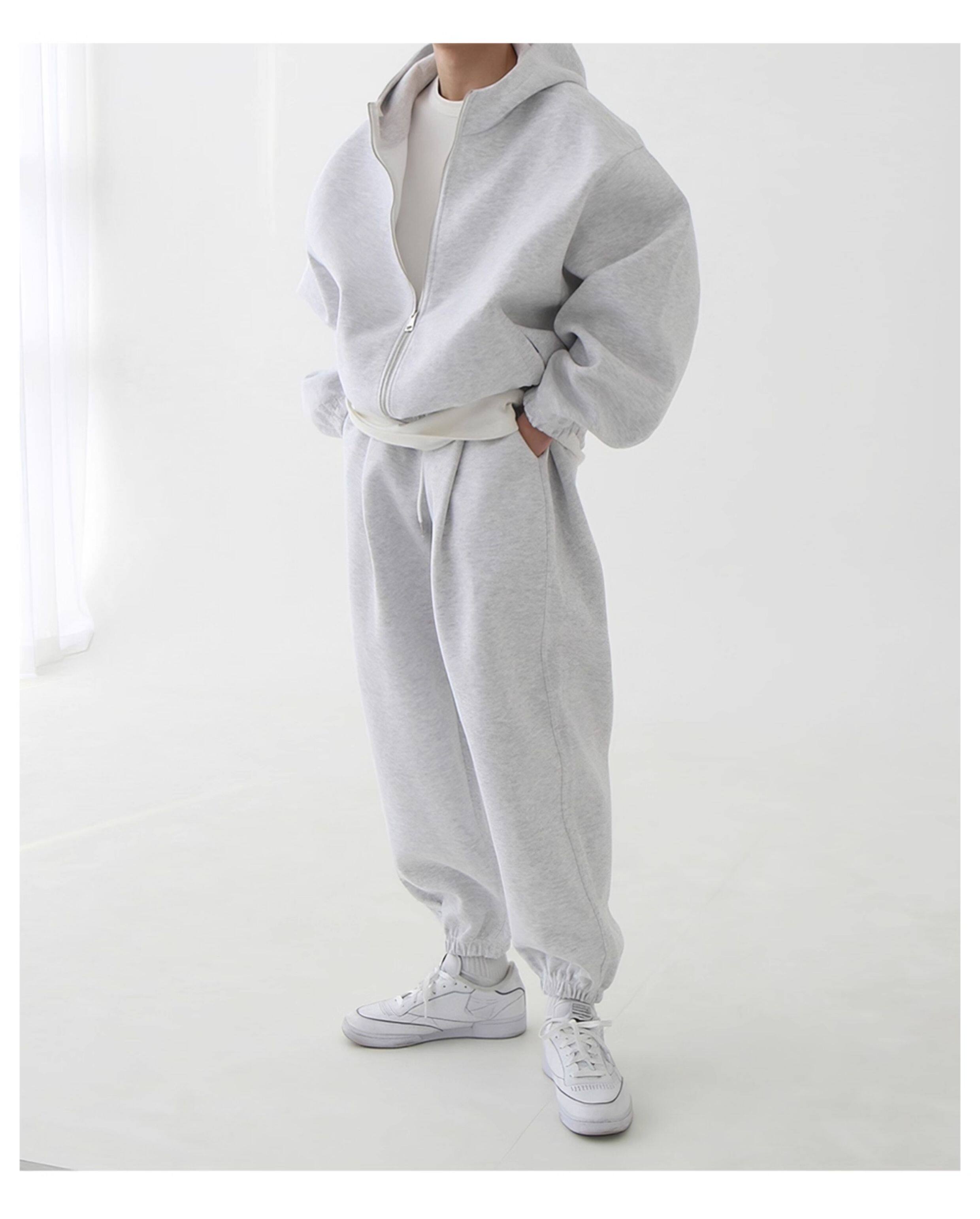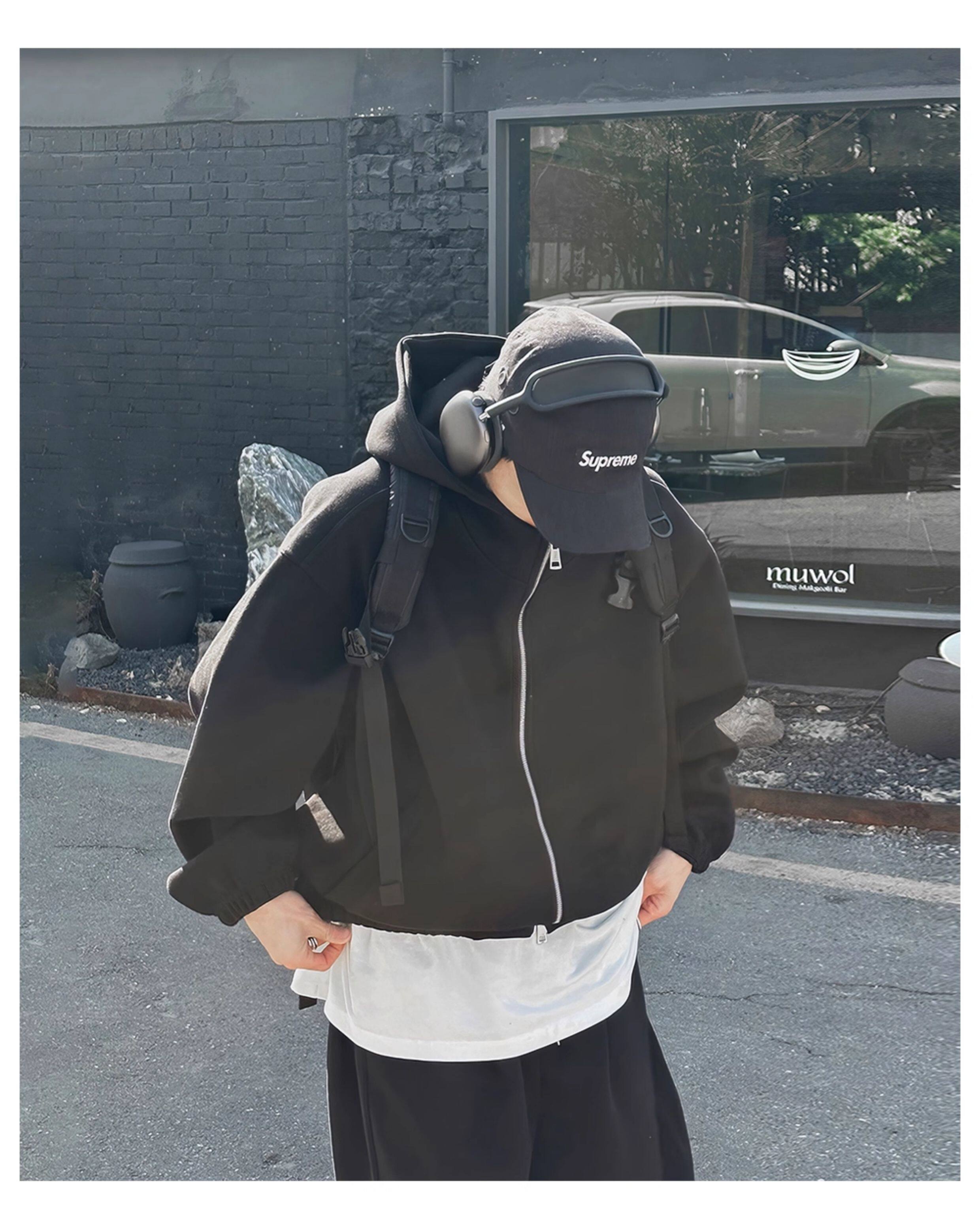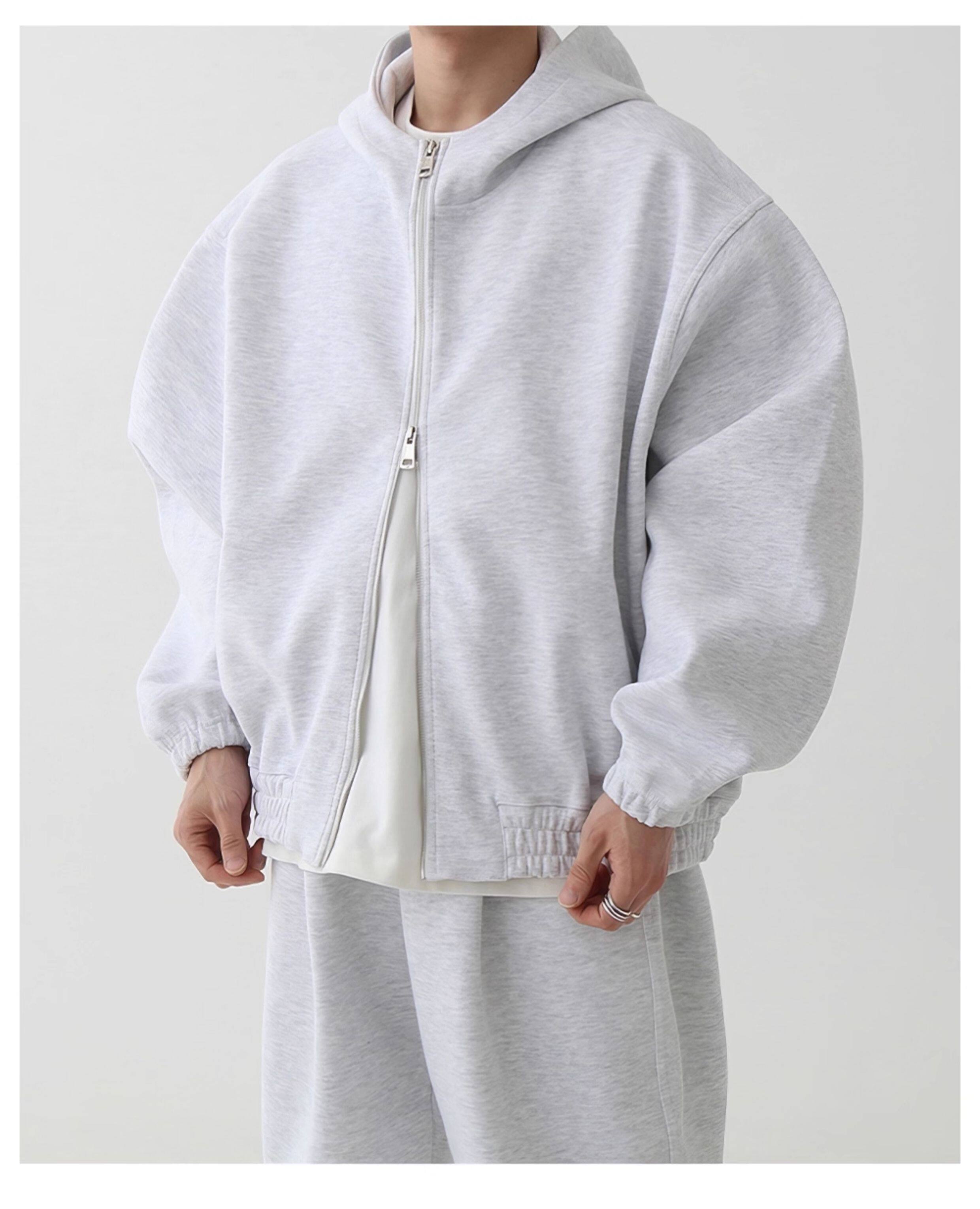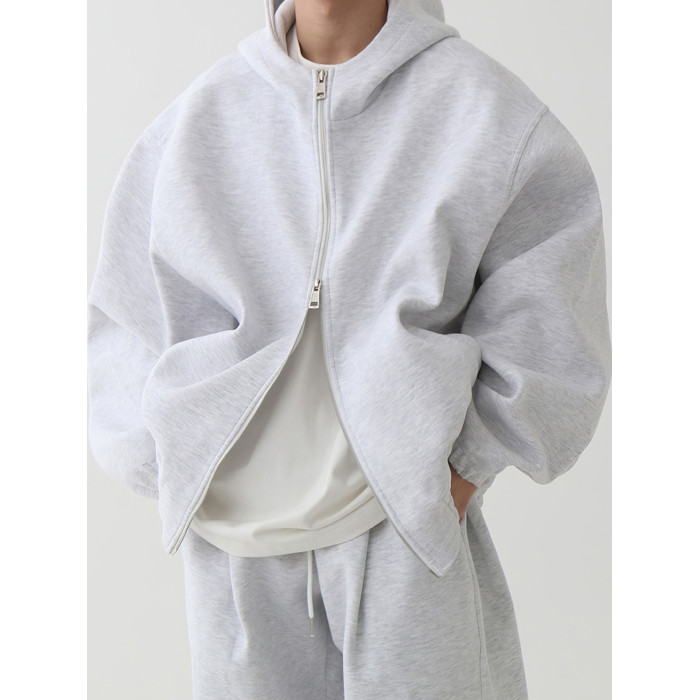 加絨連帽衛衣套裝男士春秋季美式重磅拉鍊外套寬松休閒運動風衛褲