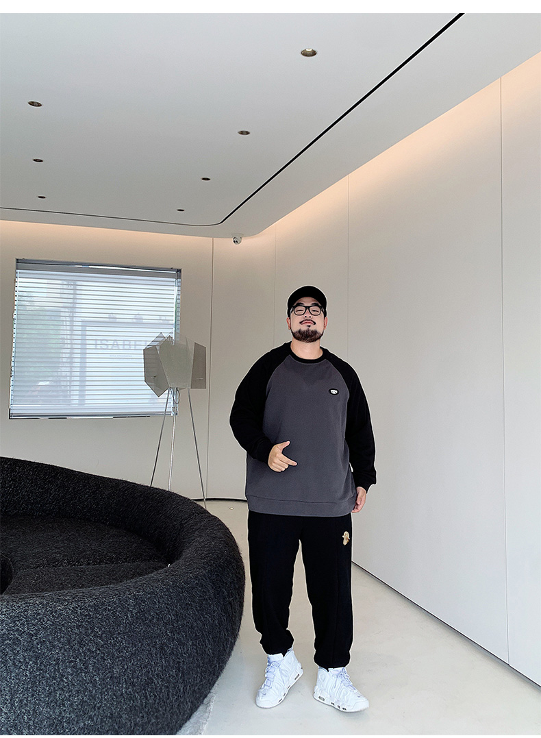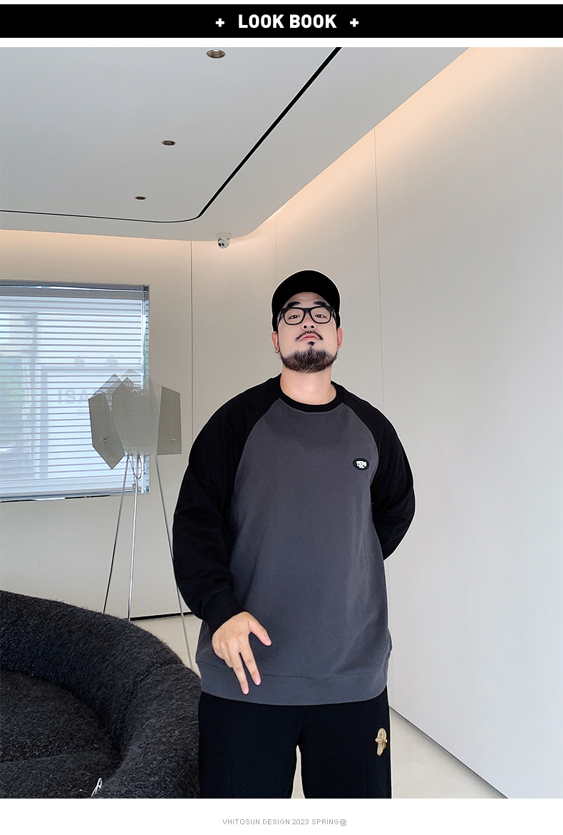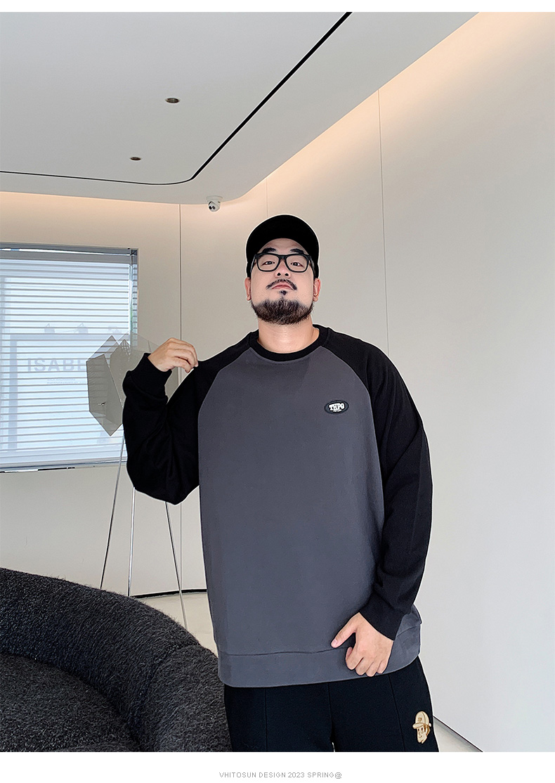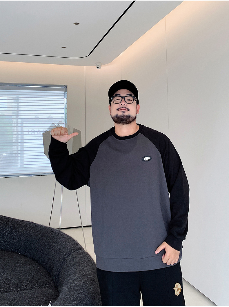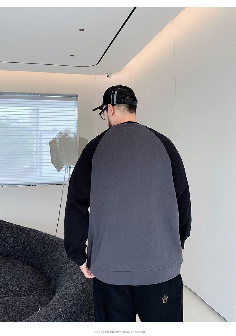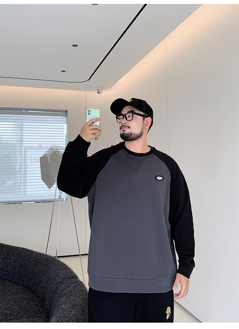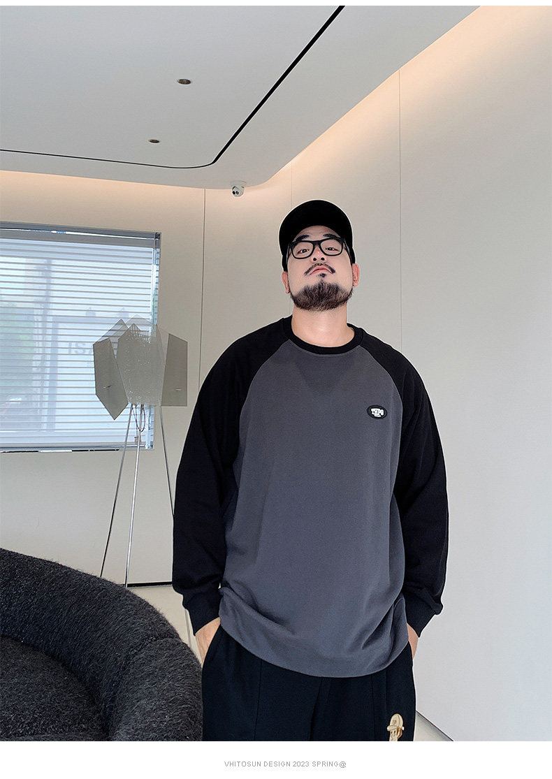 大碼男裝胖子加肥加大寬松打底衫長袖T恤插肩袖休閒圓領衛衣秋季t