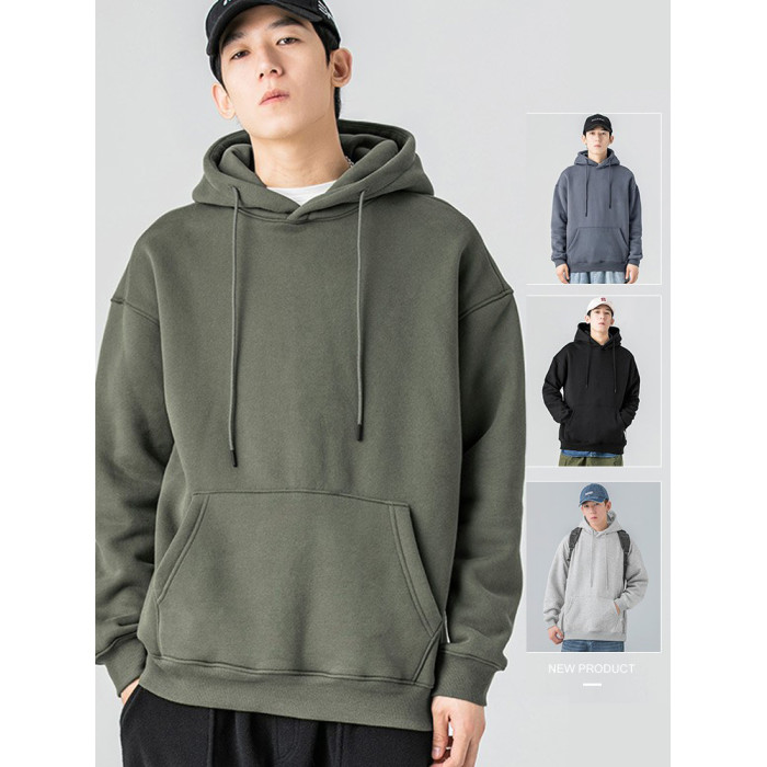 WOODSOON連帽衛衣男春秋季寬松純色男士上衣運動秋冬加絨套頭衫潮