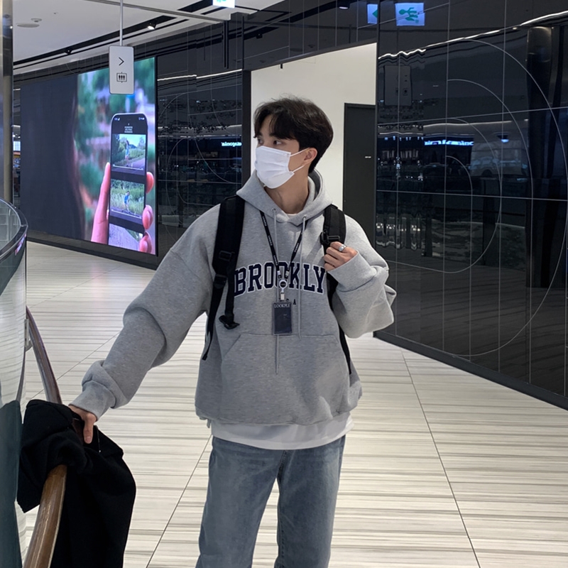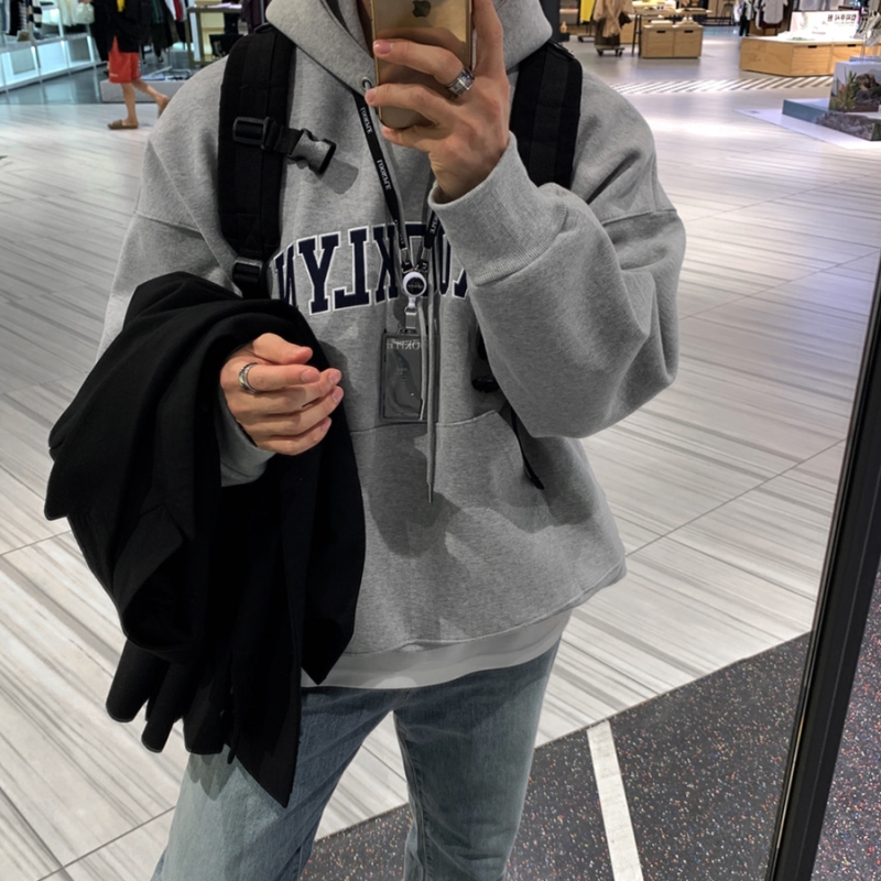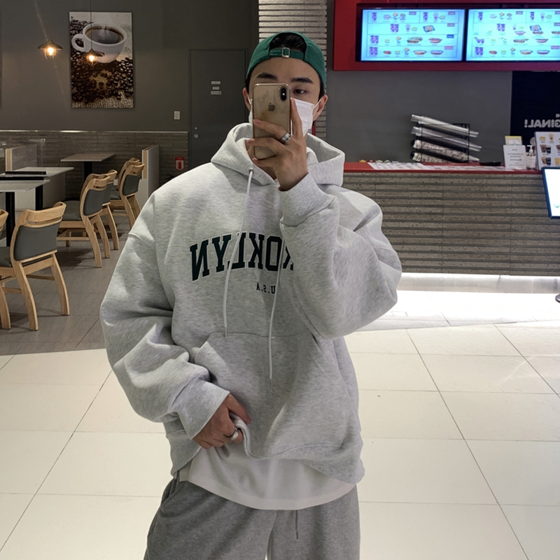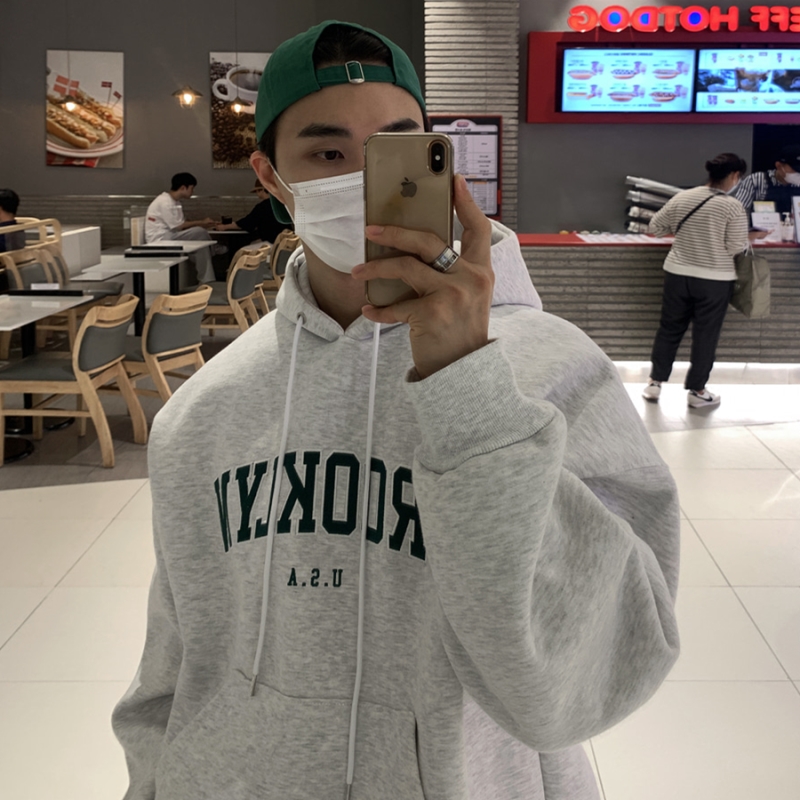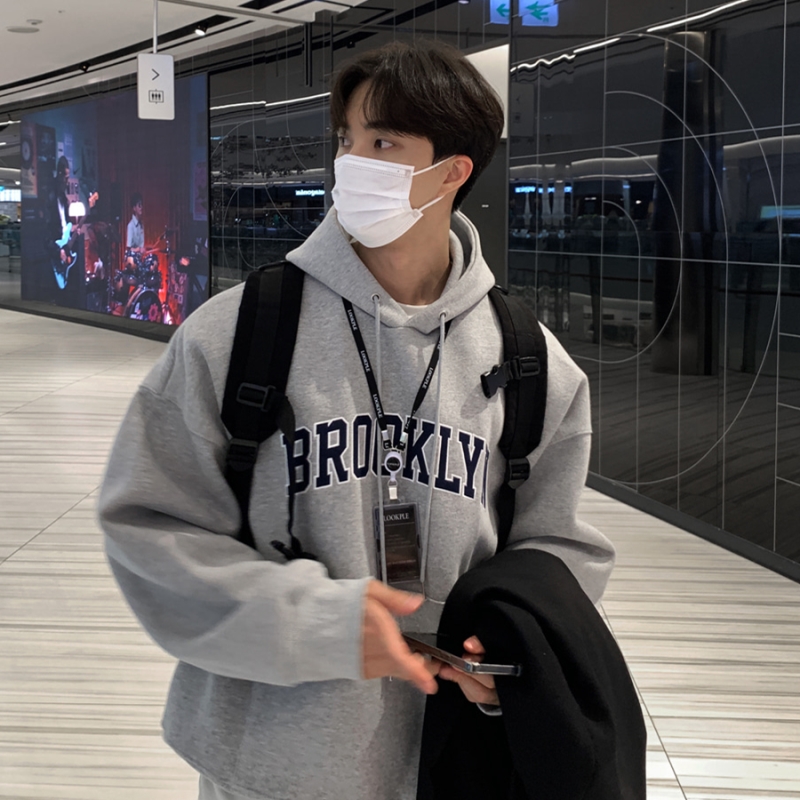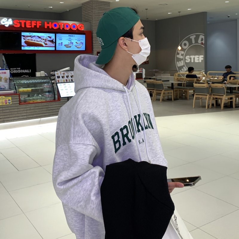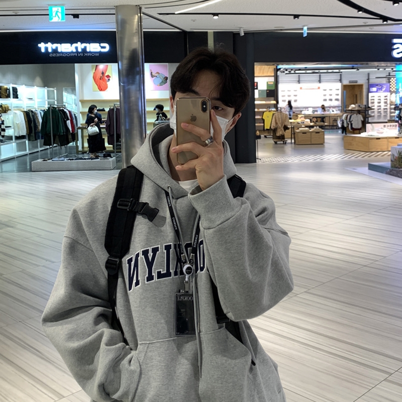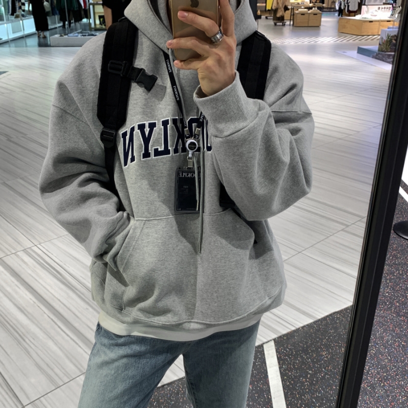 美式重磅百搭連帽衛衣男春秋新款字母印花休閒潮牌硬挺帽衫外套