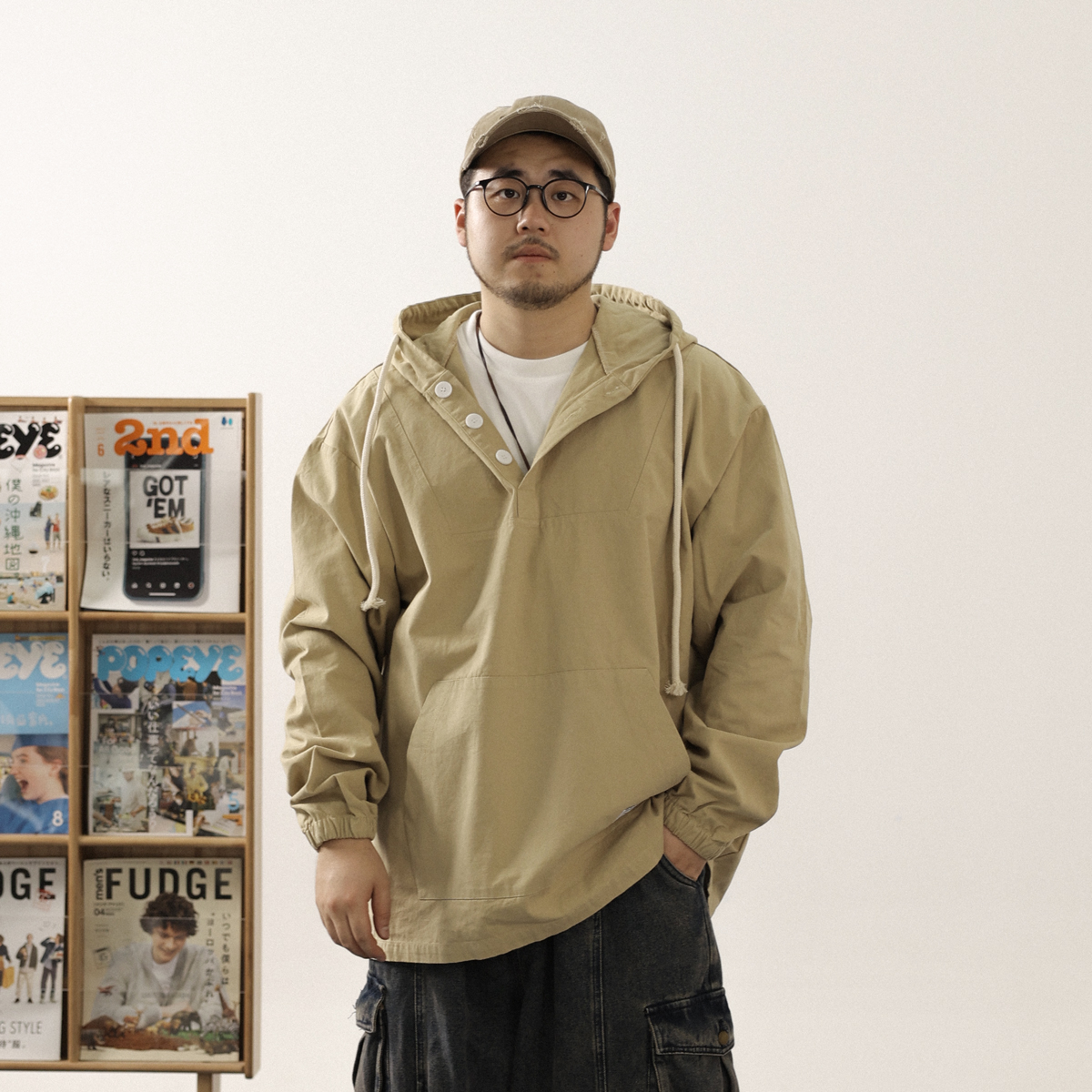 LIIISTORE2024秋款純棉素色簡約工裝帽衫寬松濶版休閒連帽衛衣