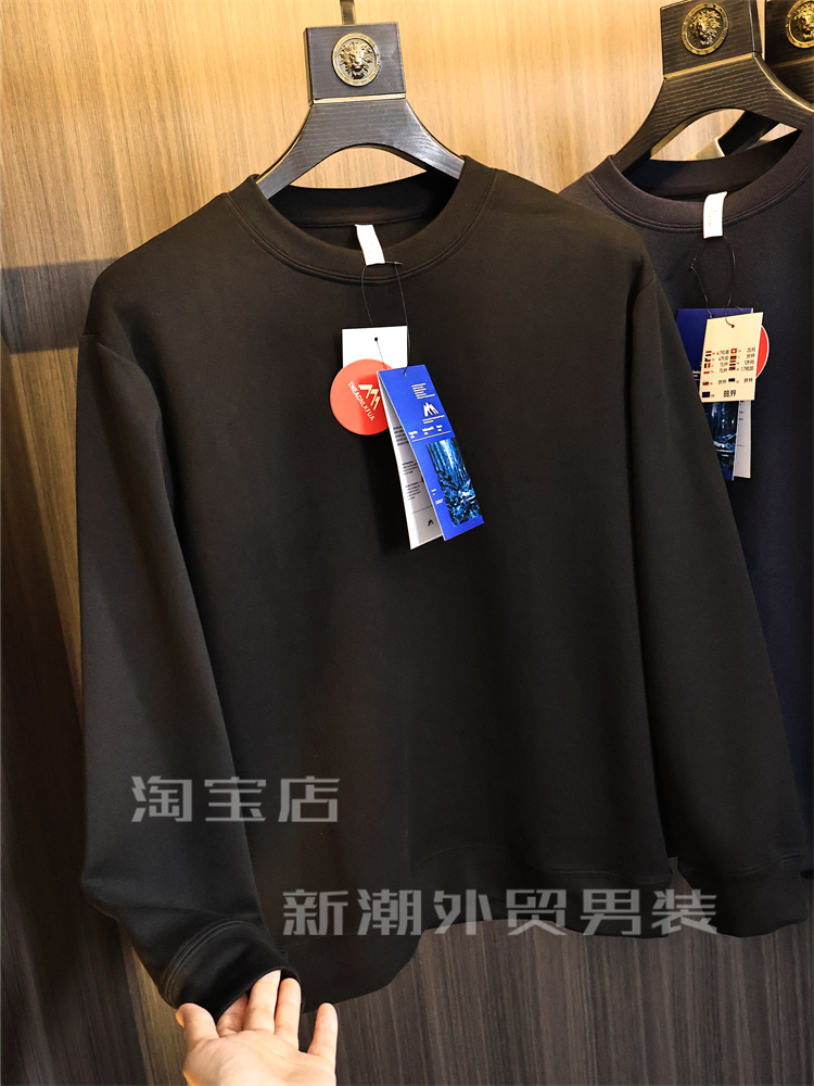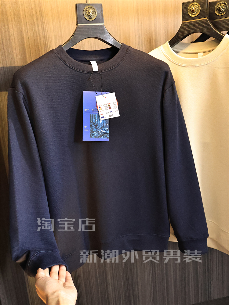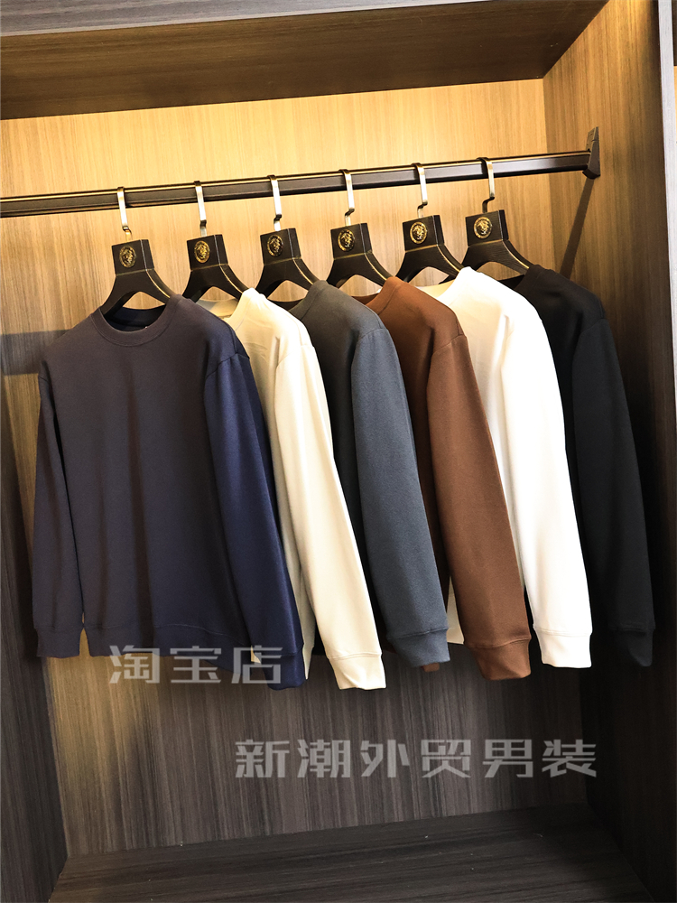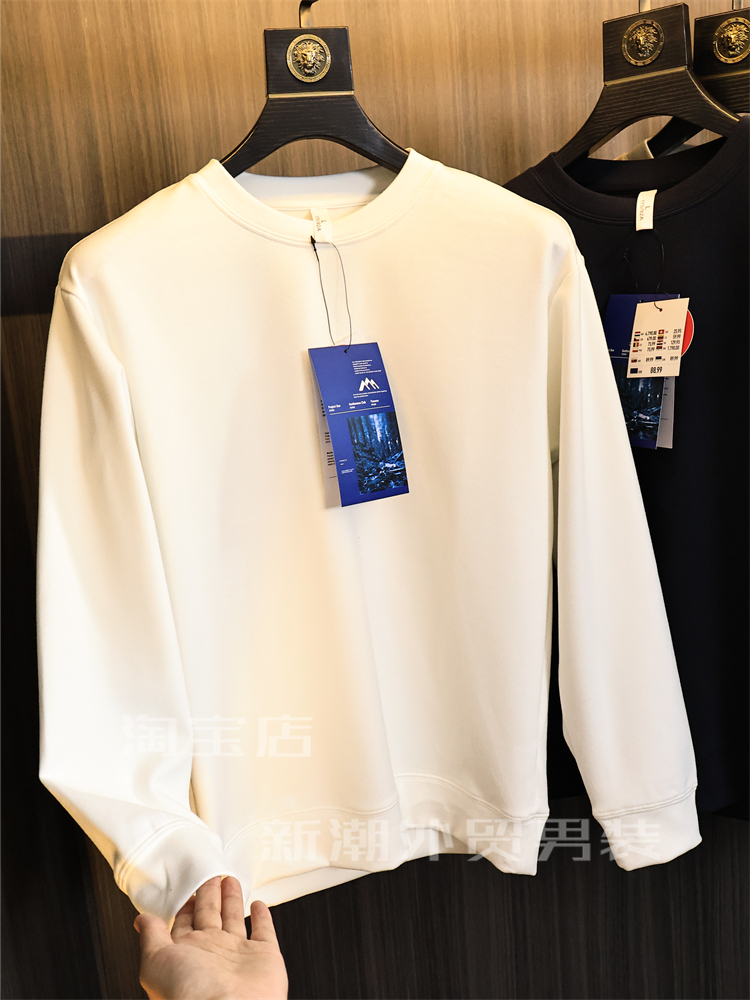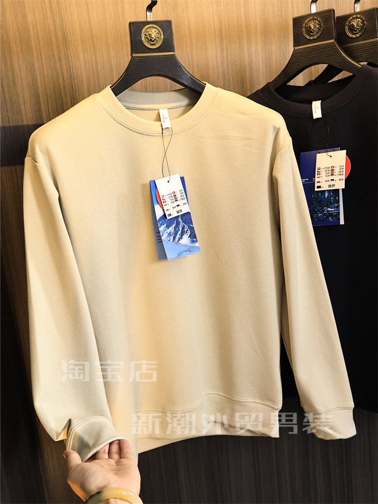 出口多國訂單【軟糯舒適】秋冬男士純色高彈時尚保暖圓領休閒衛衣
