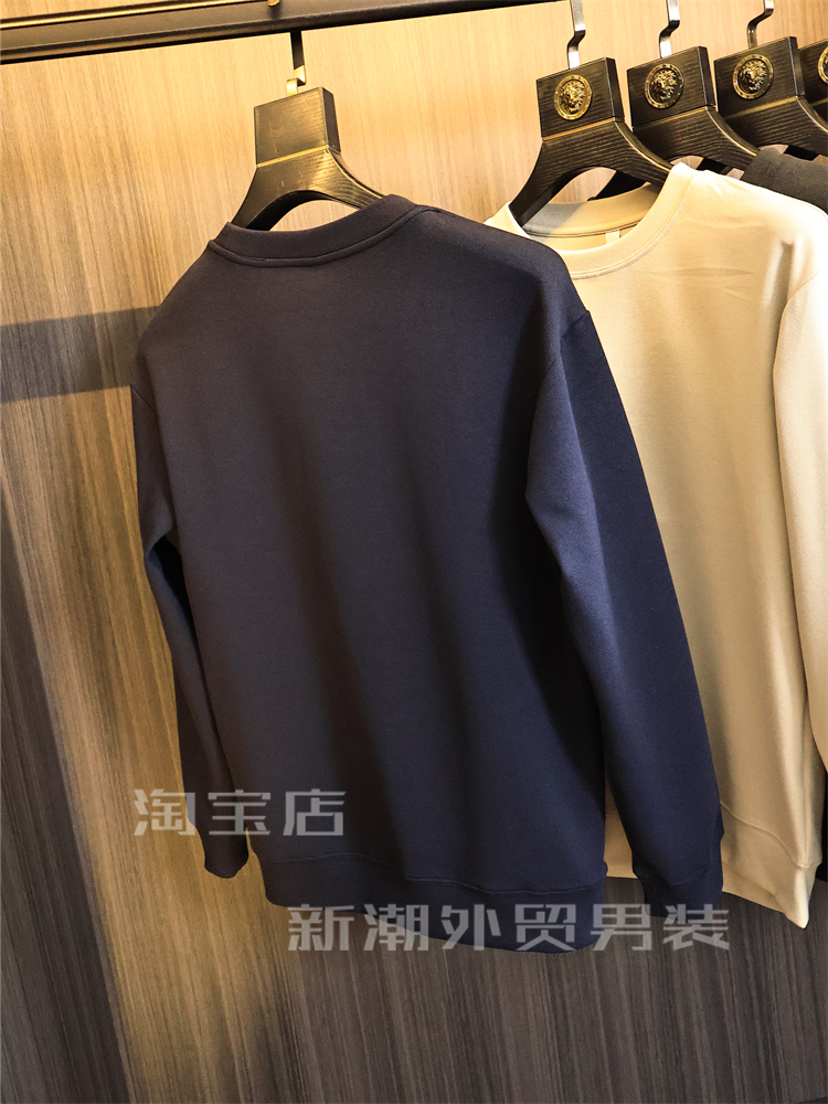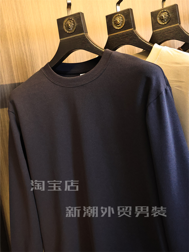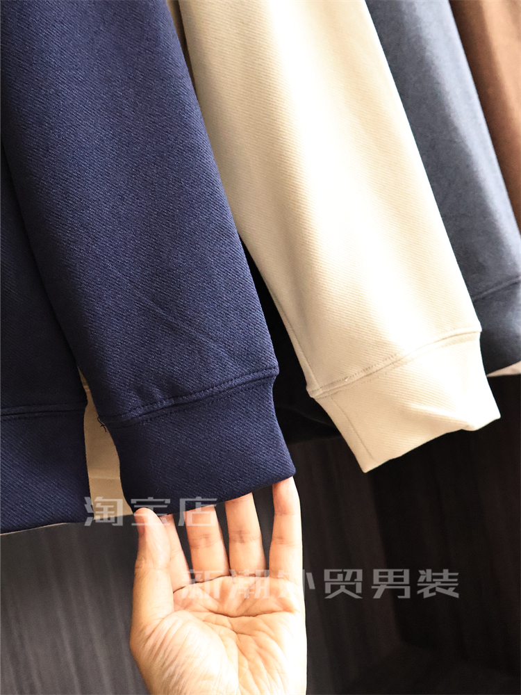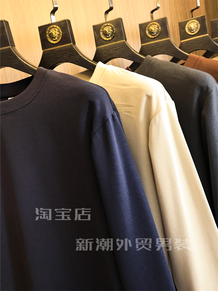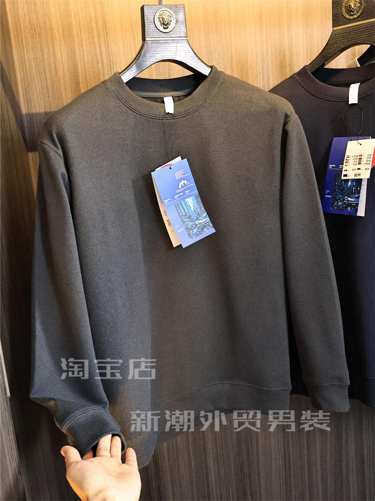 出口多國訂單【軟糯舒適】秋冬男士純色高彈時尚保暖圓領休閒衛衣
