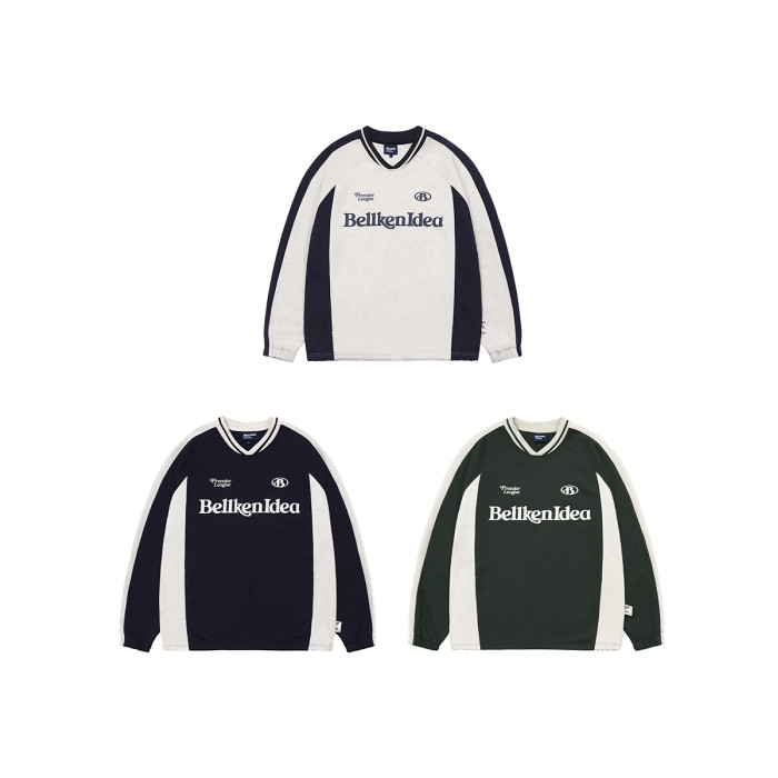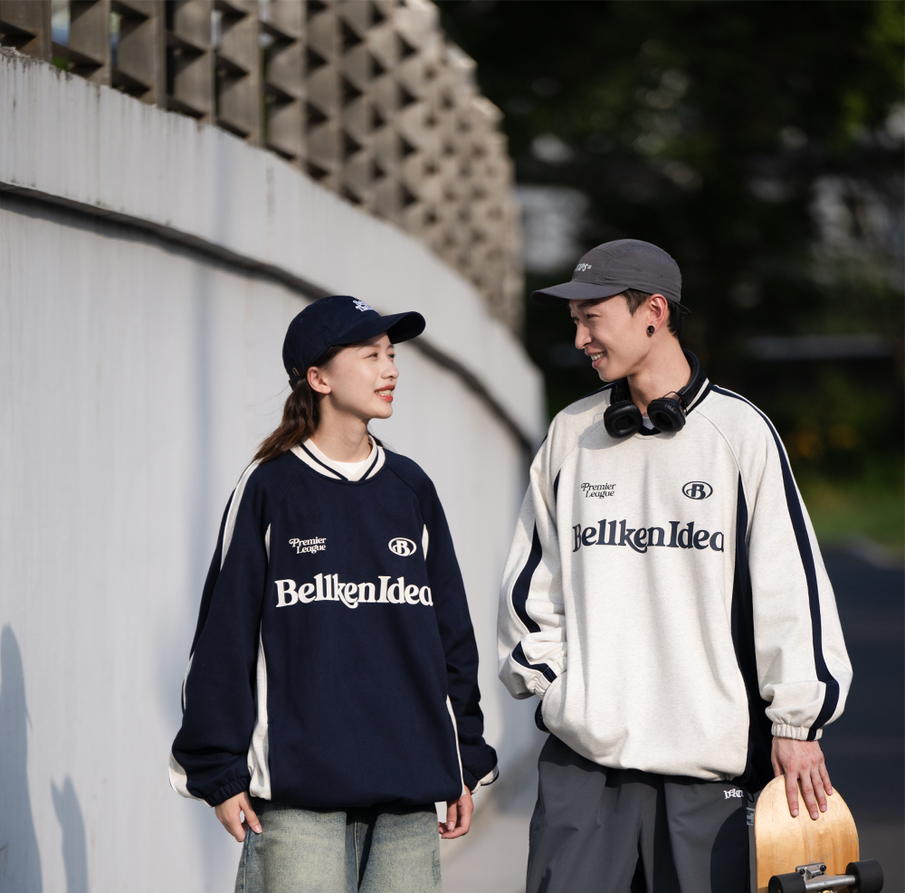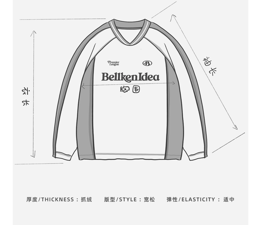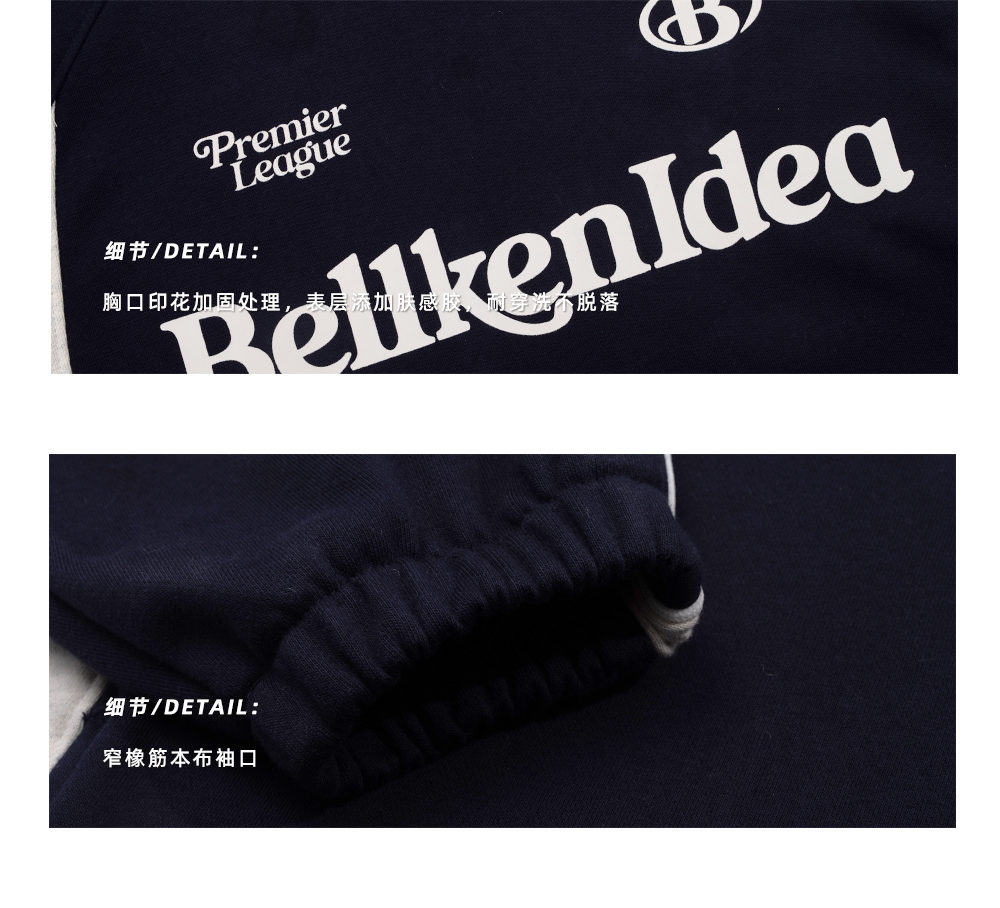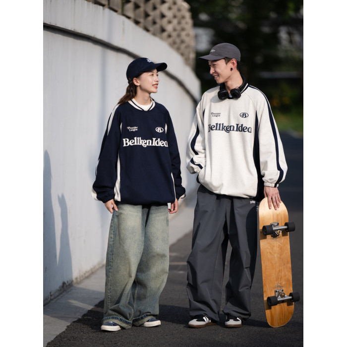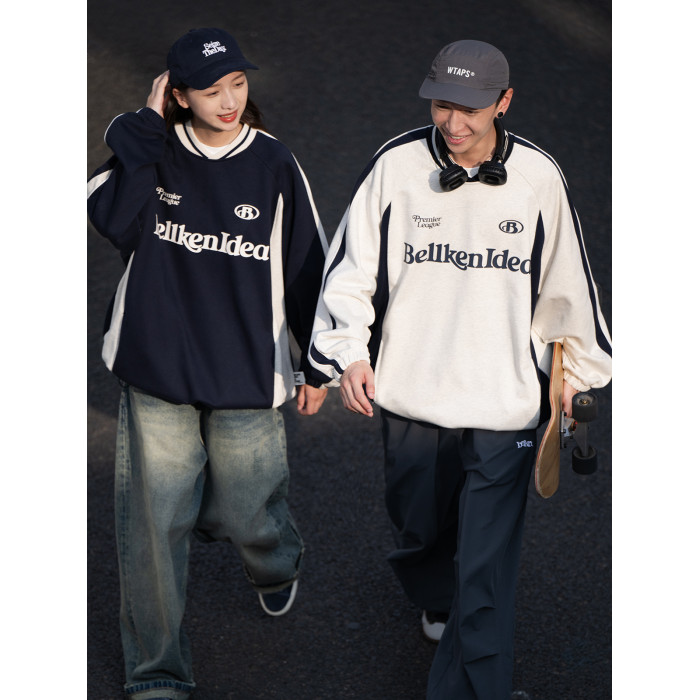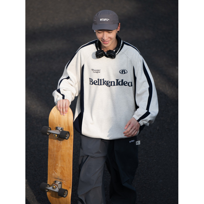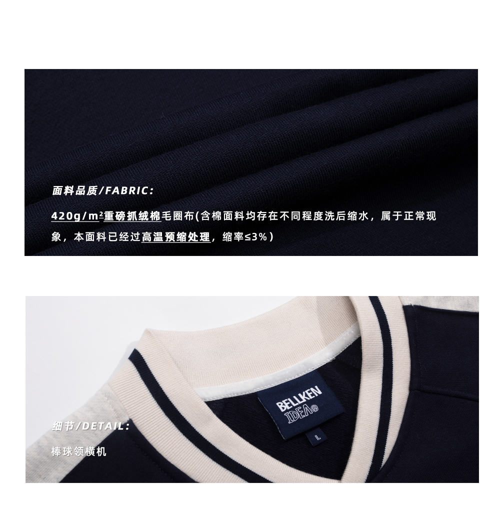 BELLKENIDEA 440G重磅寬松拼接復古棒球圓領衛衣運動男女球衣潮牌