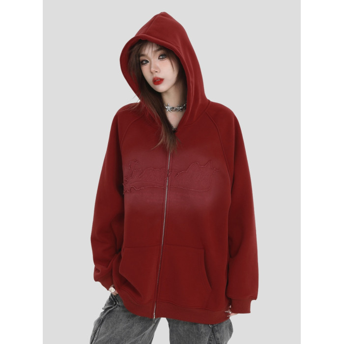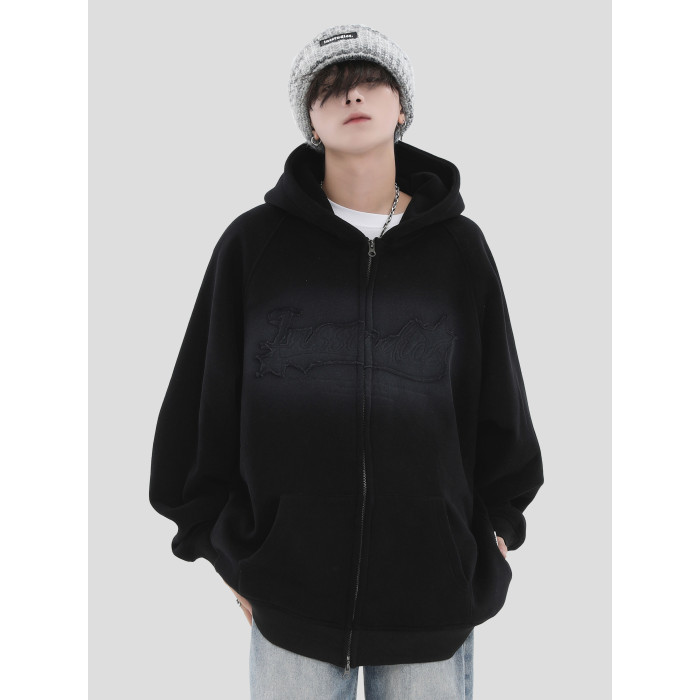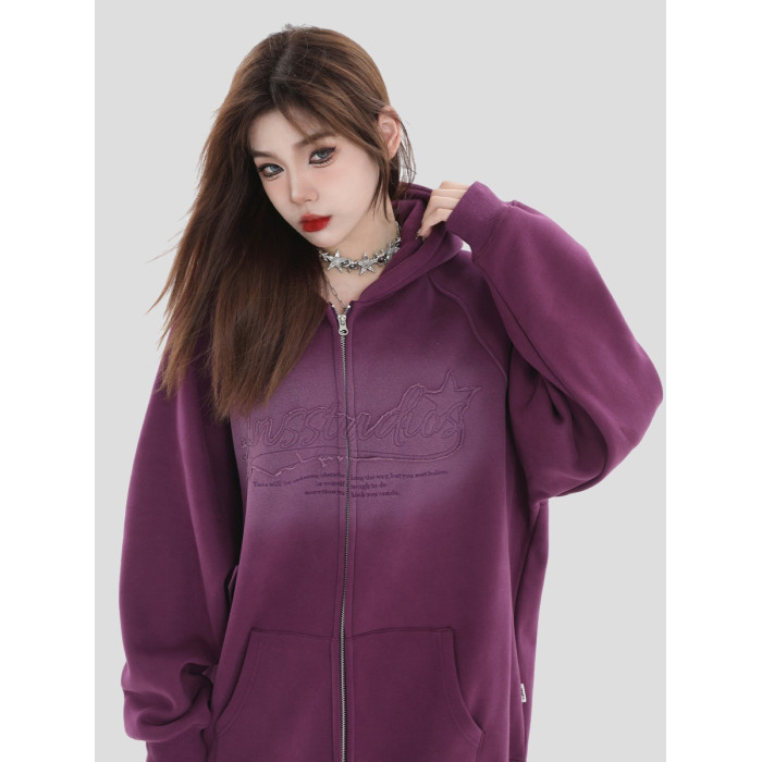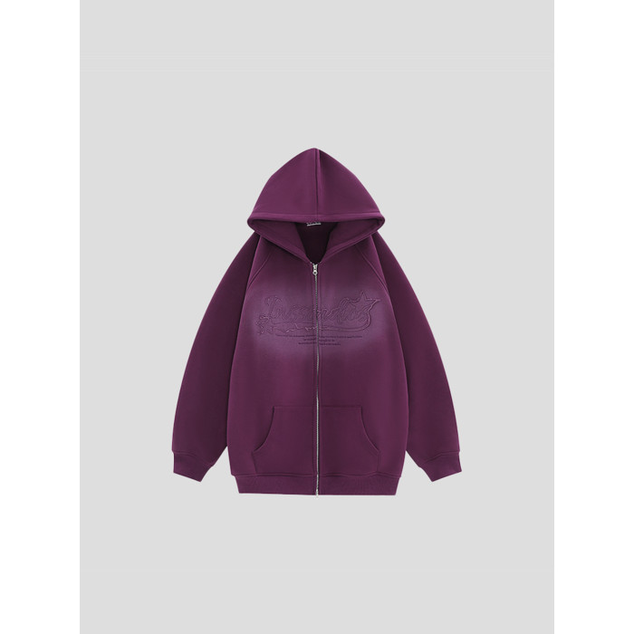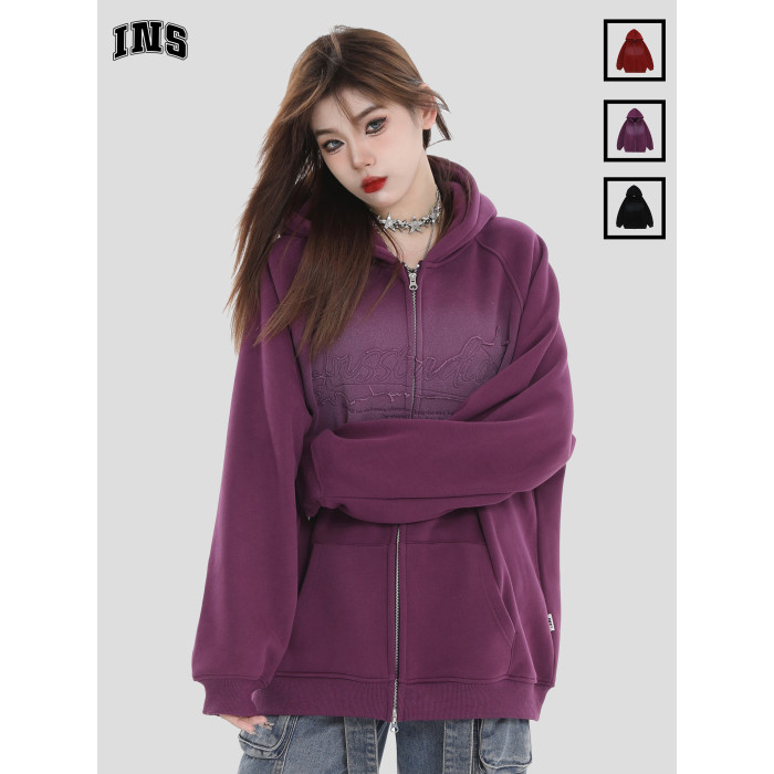 INSstudios 國潮牌情侶美式噴繪貼布綉連帽衛衣加絨拉鍊外套