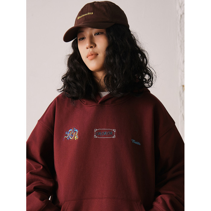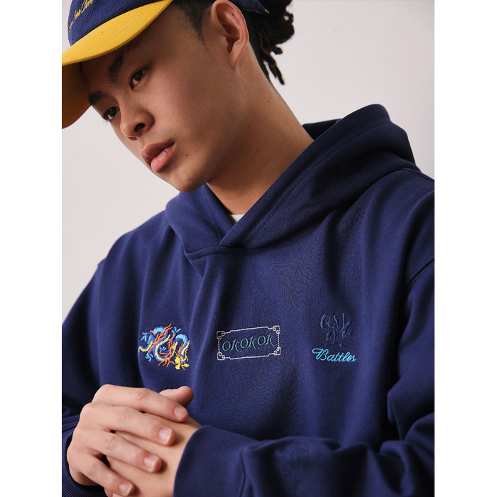 Battles 龍年限定刺綉連帽衛衣420g重磅美式休閒帽衫寬松