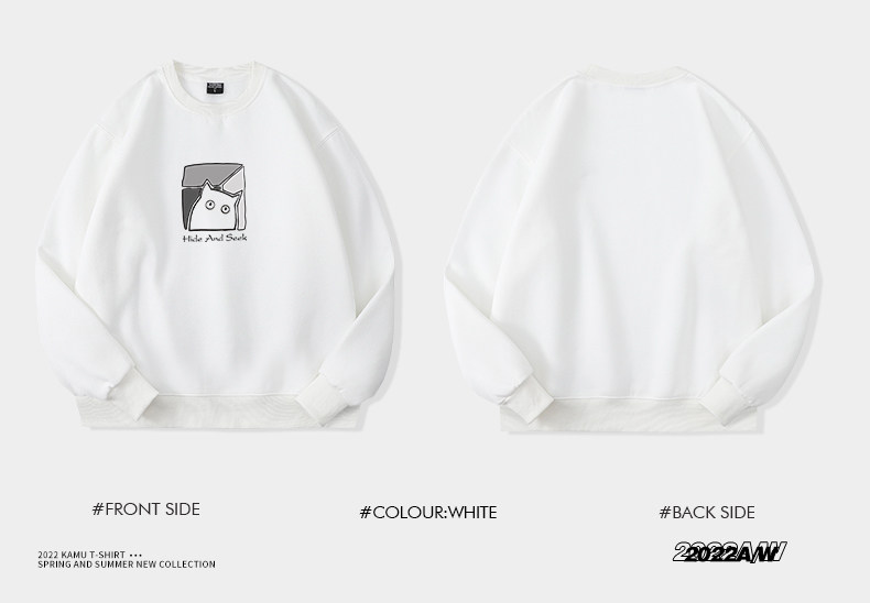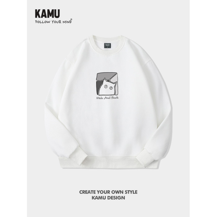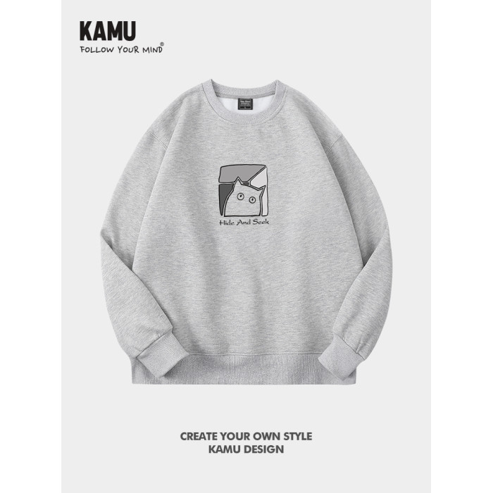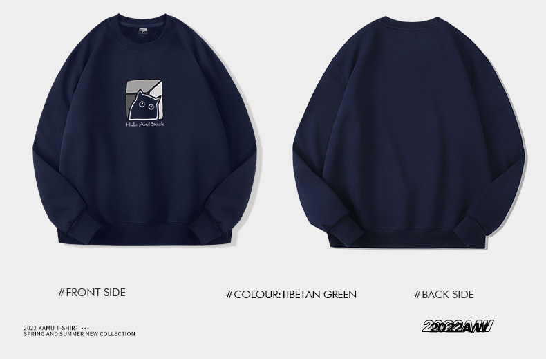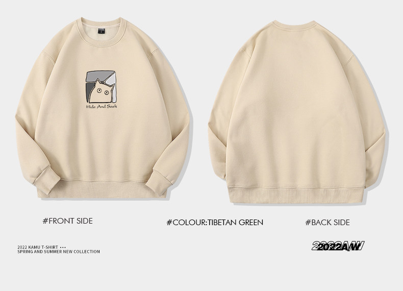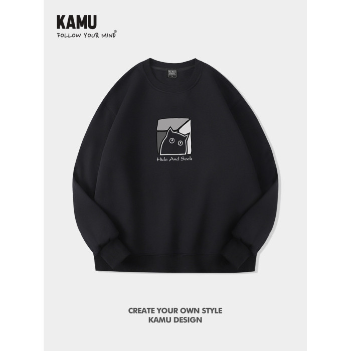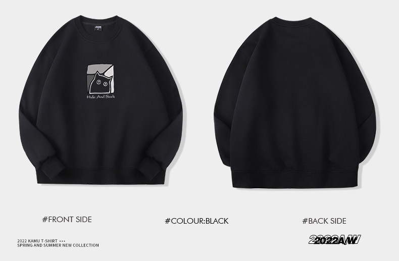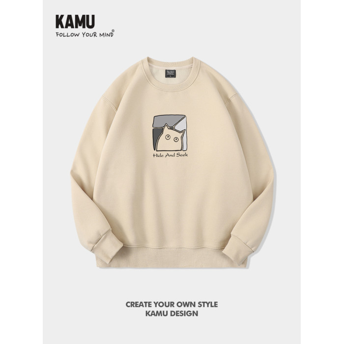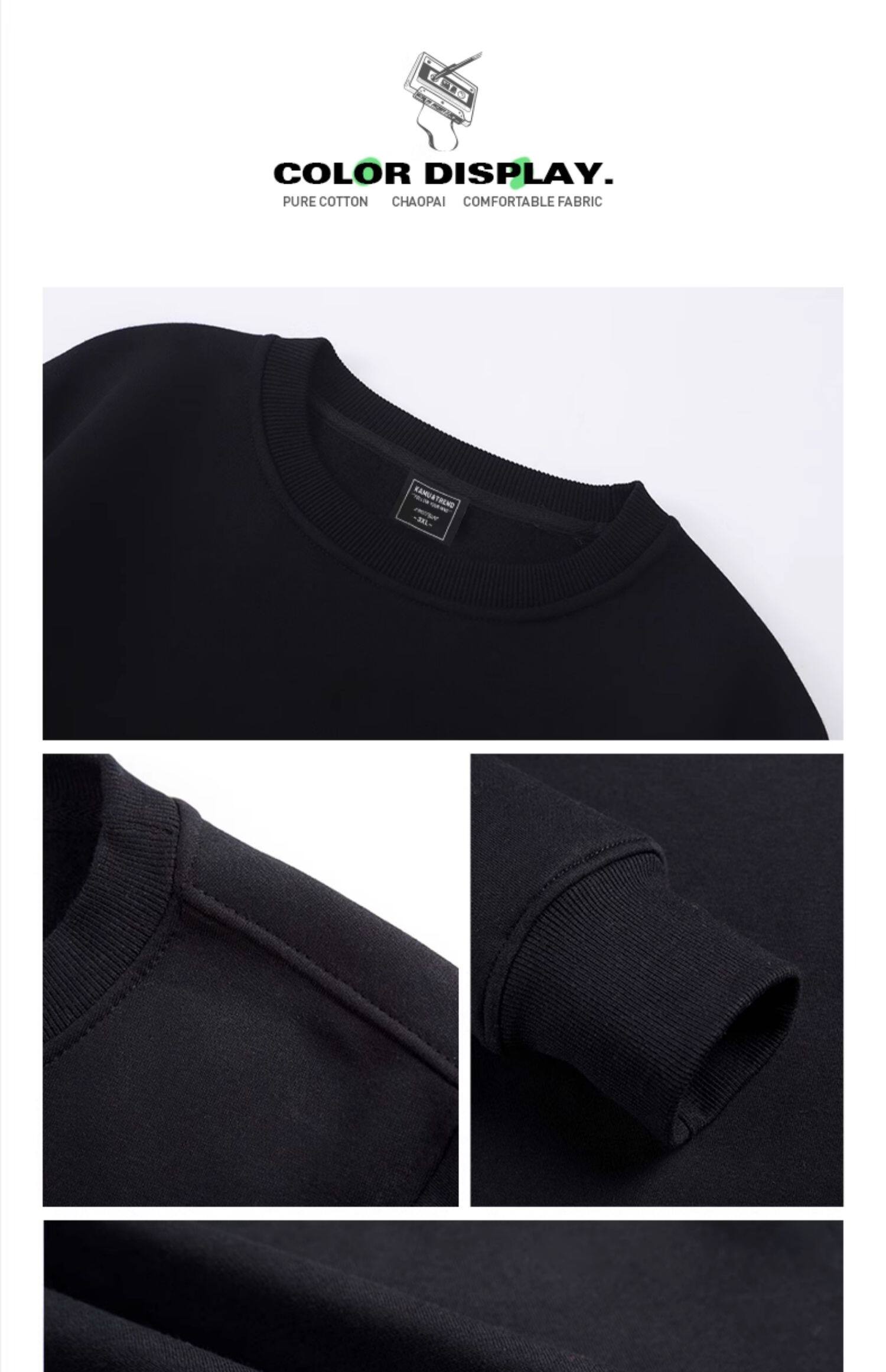 日系簡約圓領衛衣男百搭2025秋冬款潮牌無帽長袖加絨加厚寬松上衣
