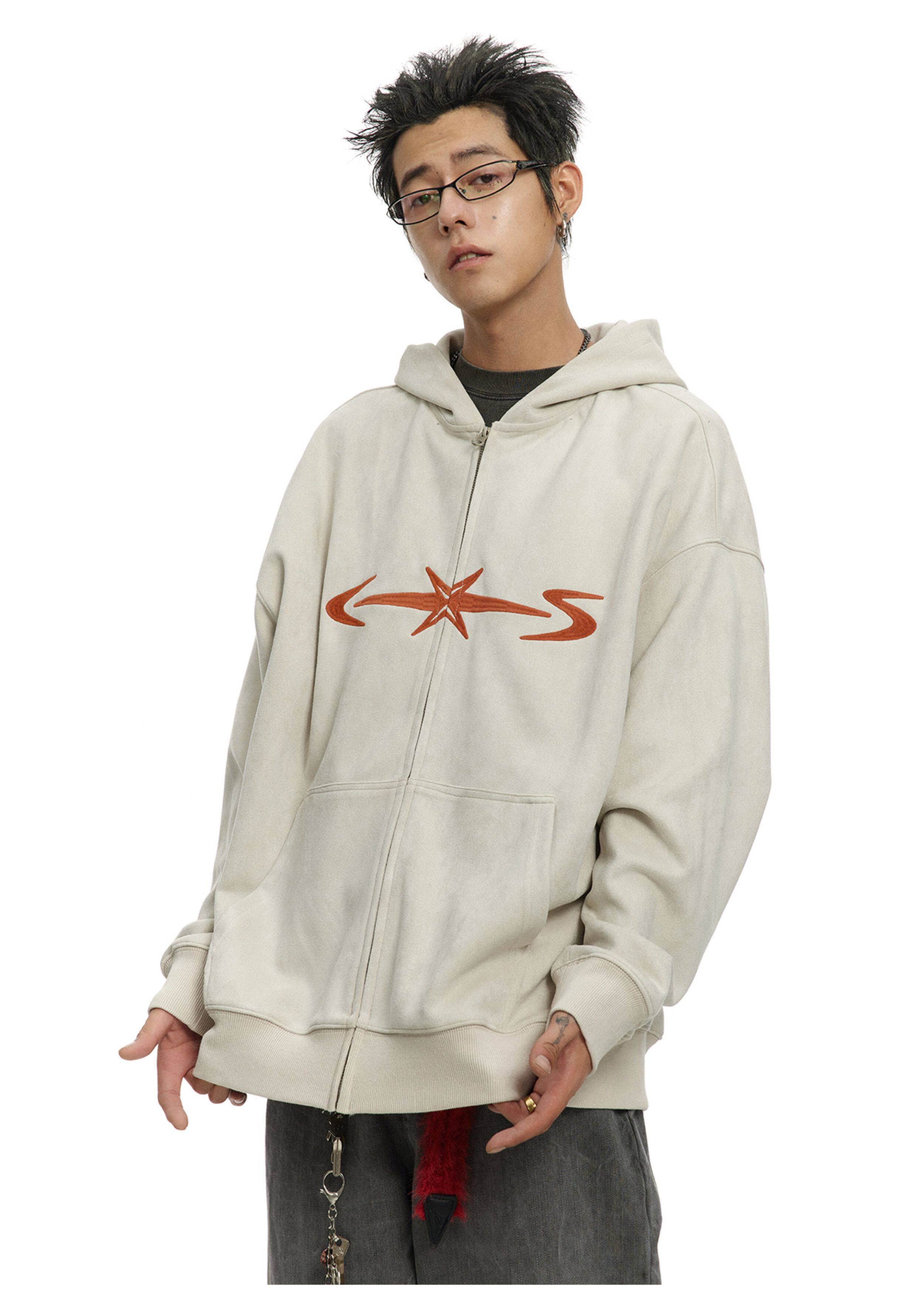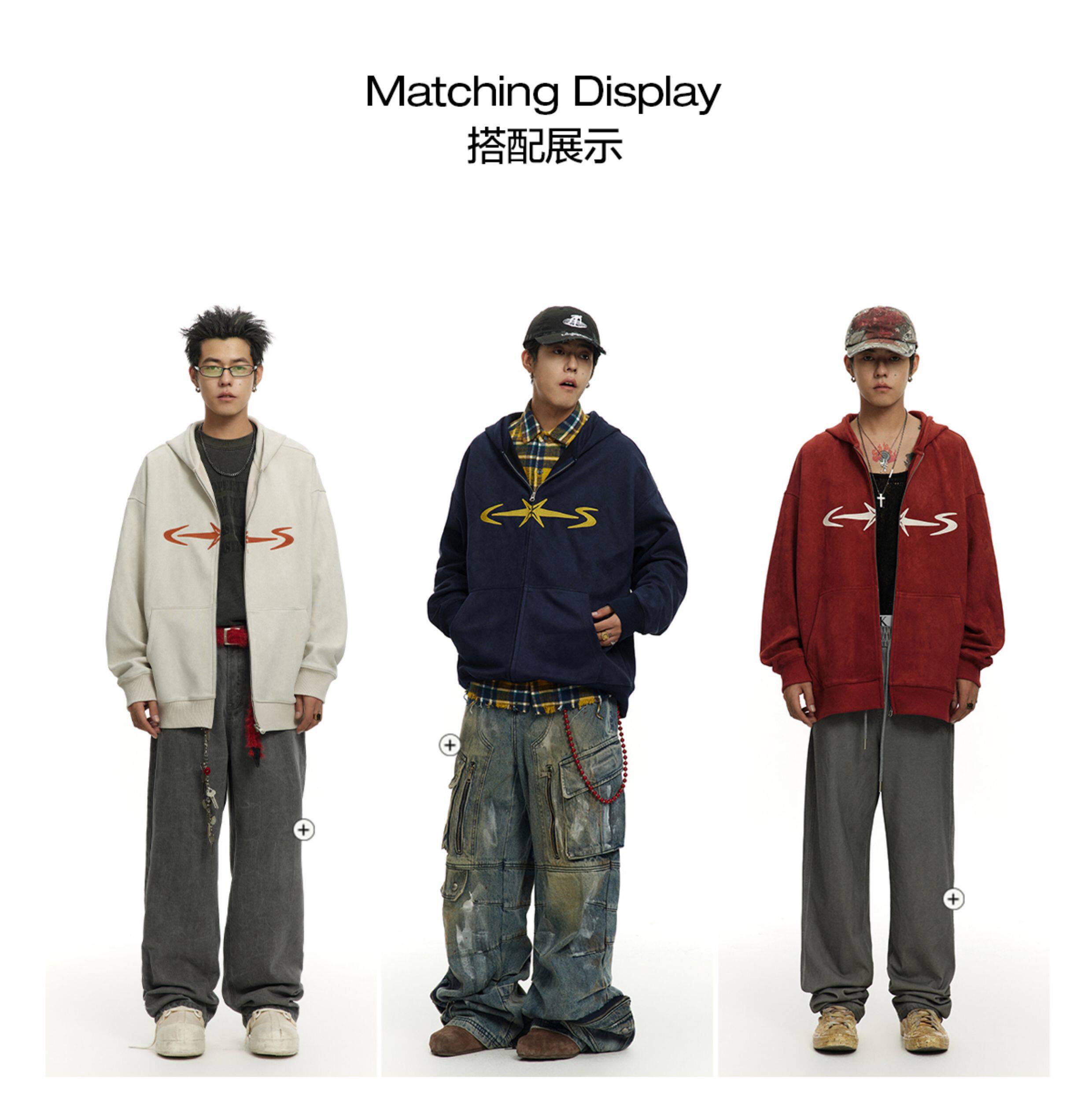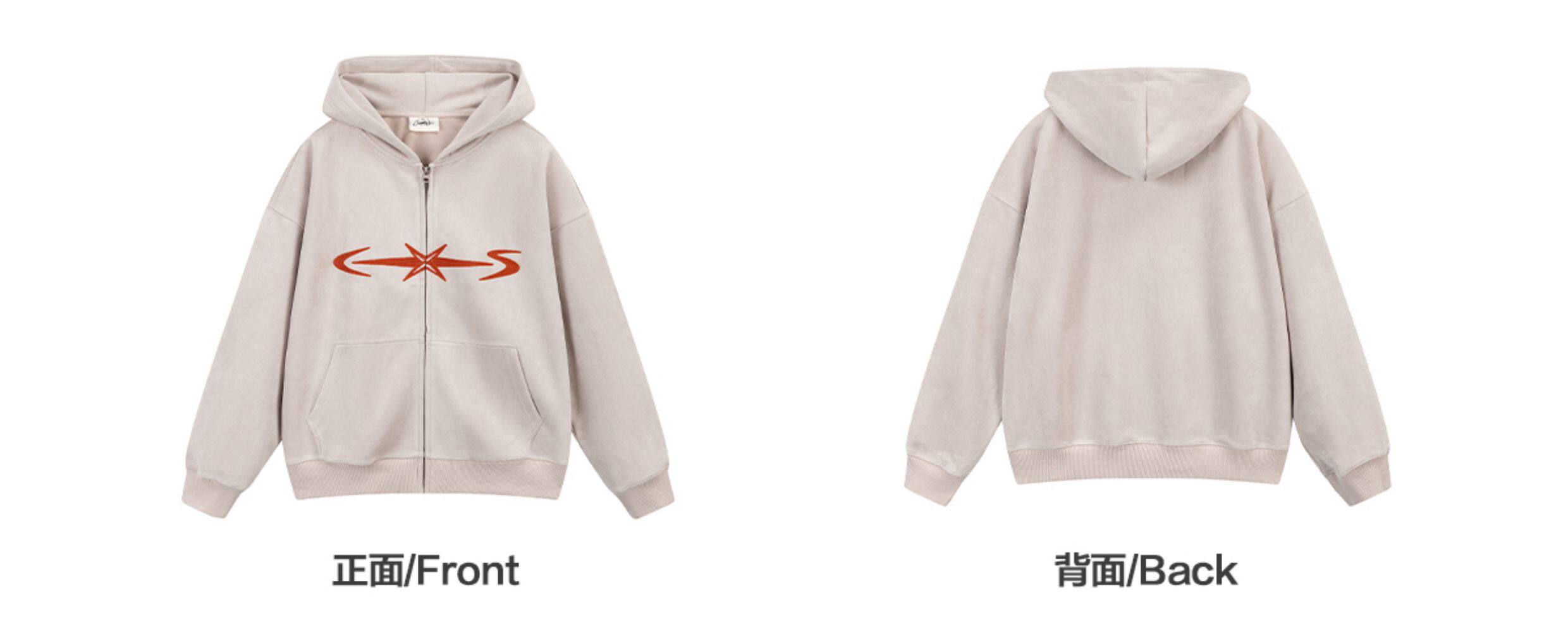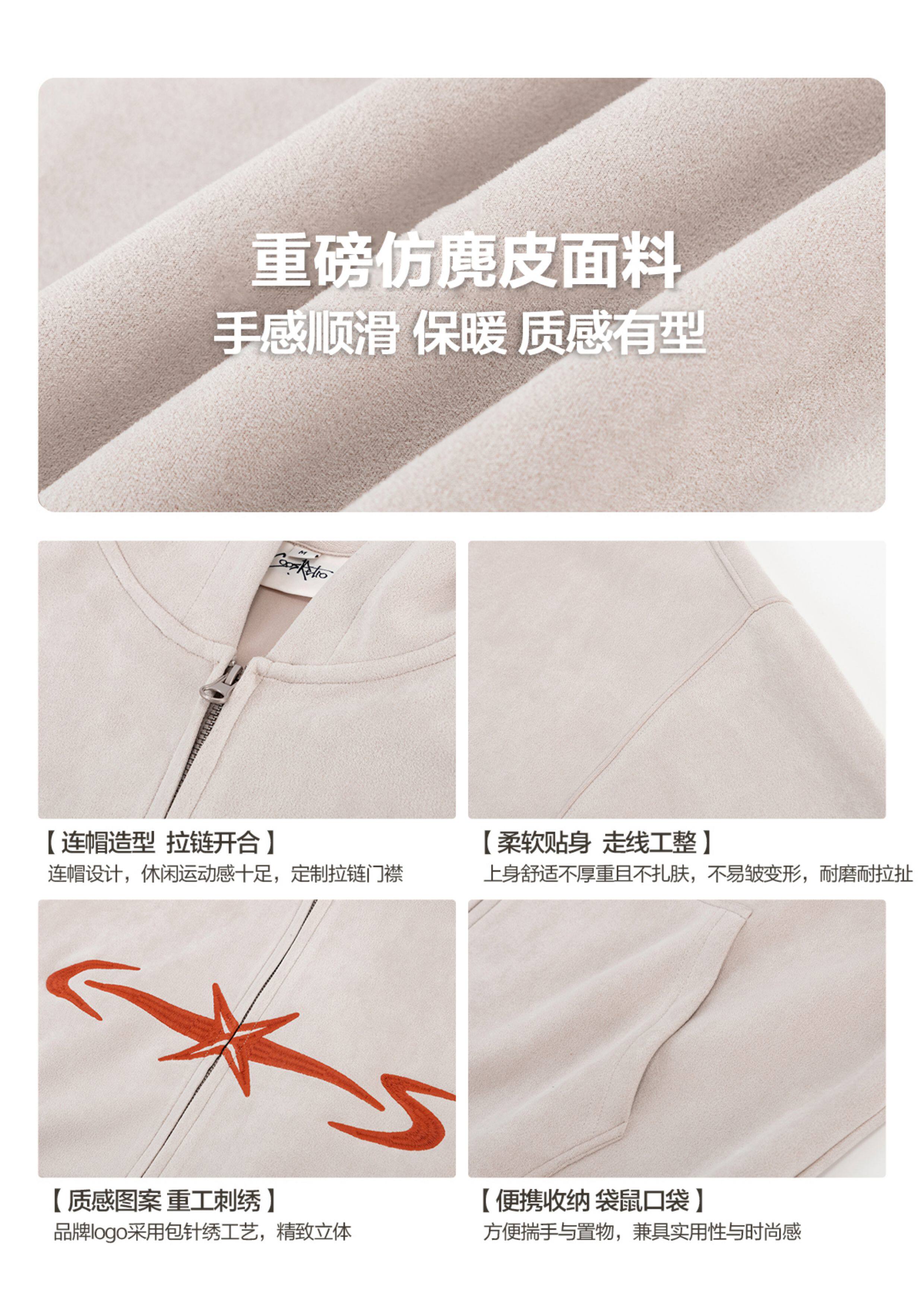 CoosRetro美式350g重磅仿麂皮寬松連帽衛衣春秋休閒寬松開衫外套