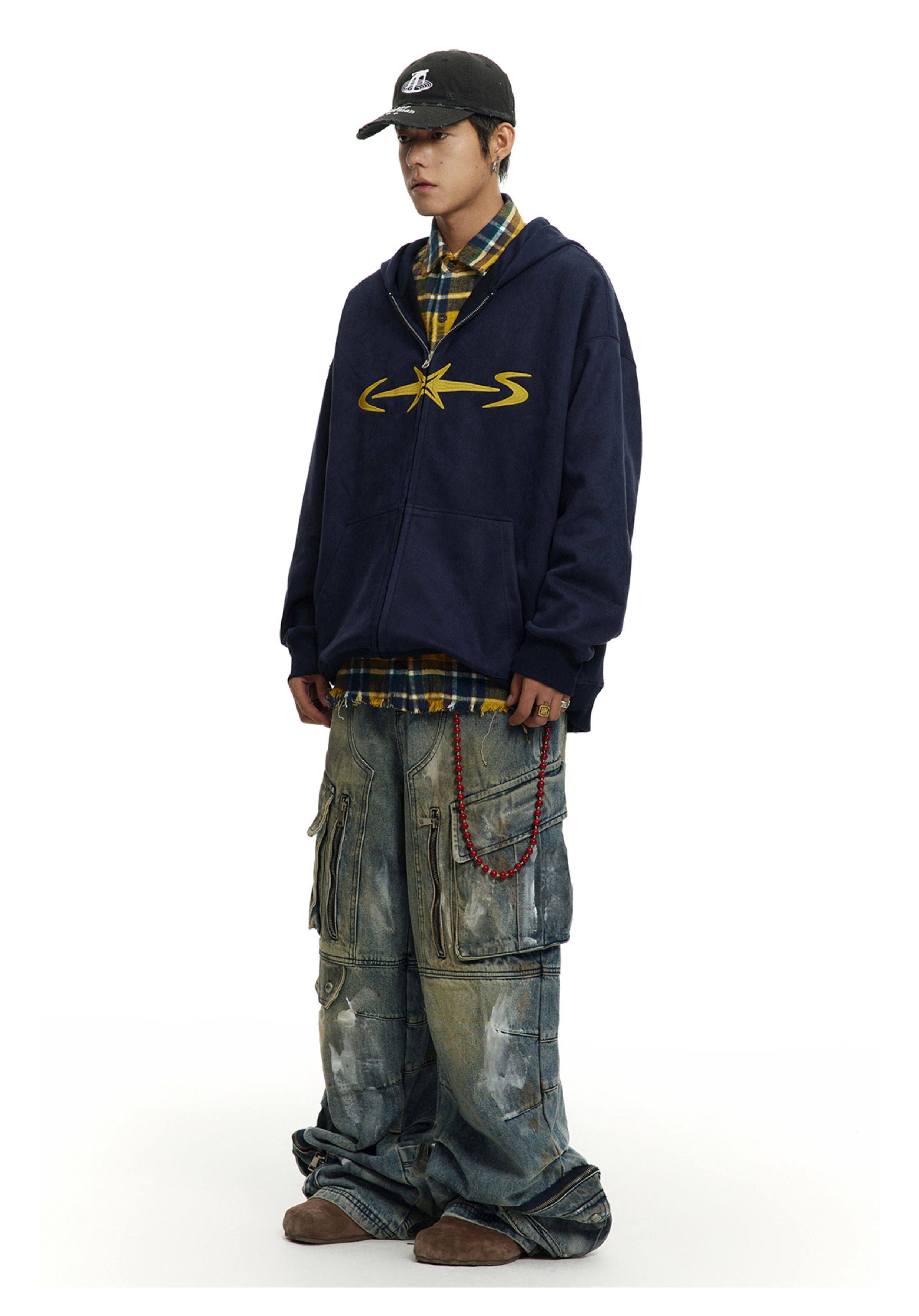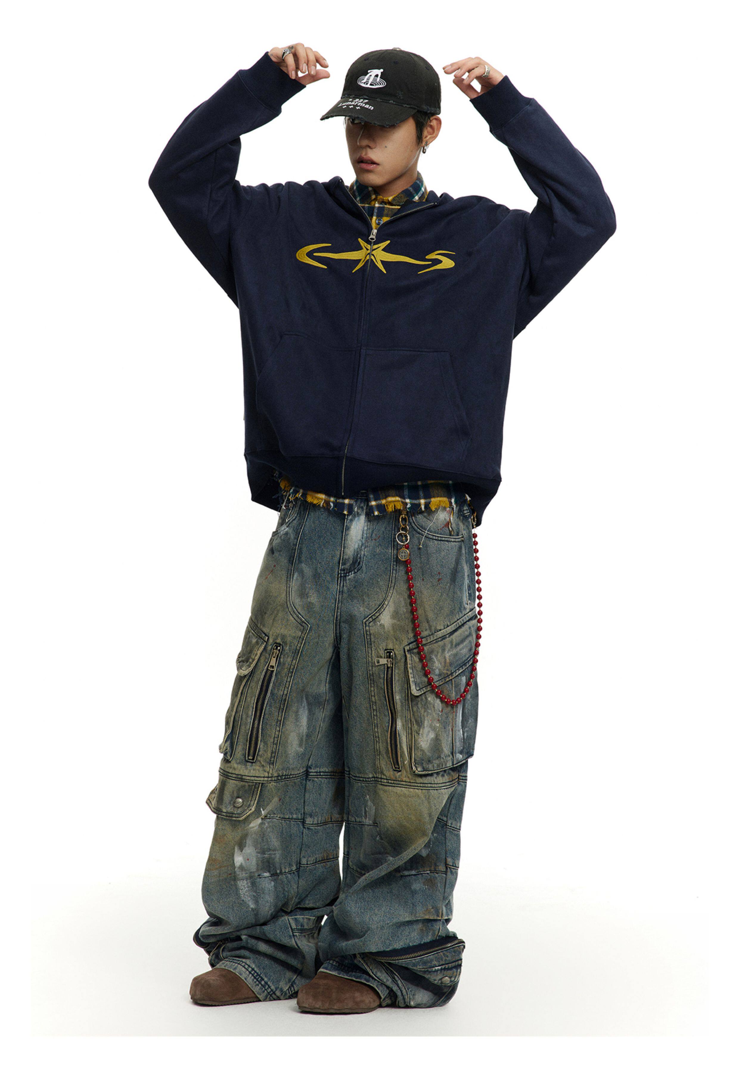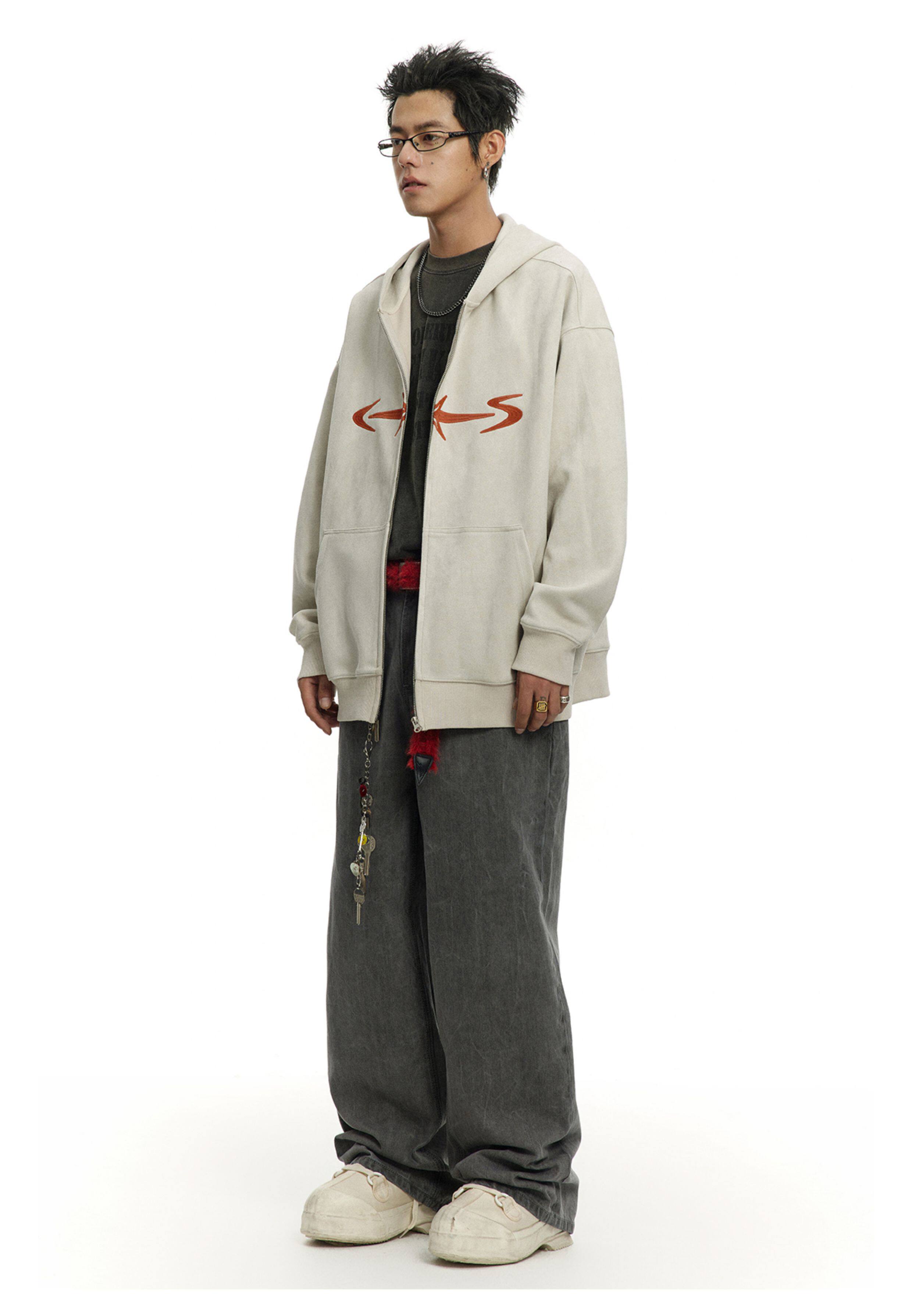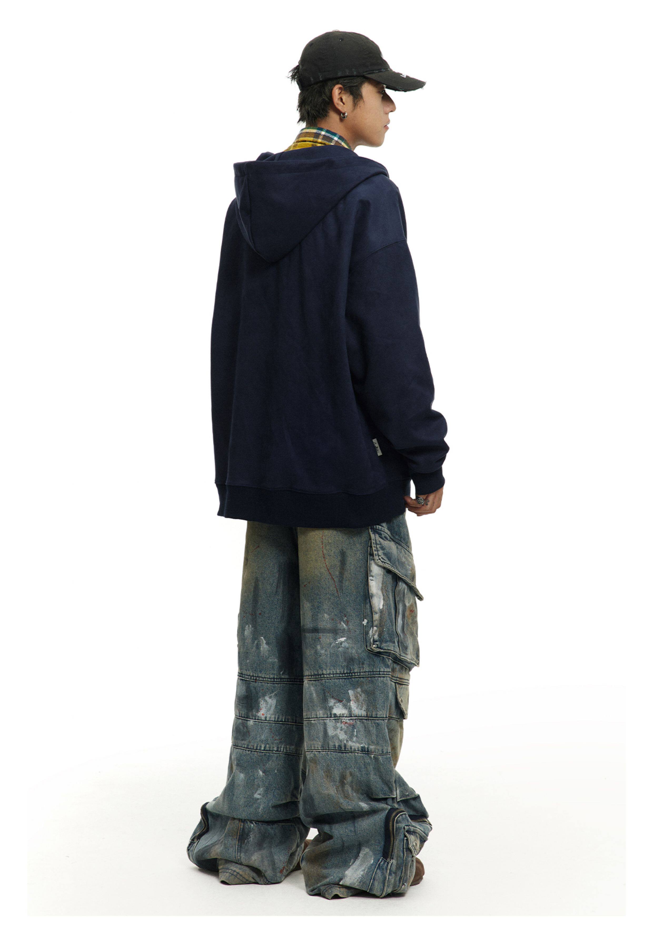 CoosRetro美式350g重磅仿麂皮寬松連帽衛衣春秋休閒寬松開衫外套