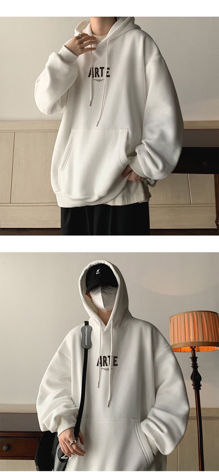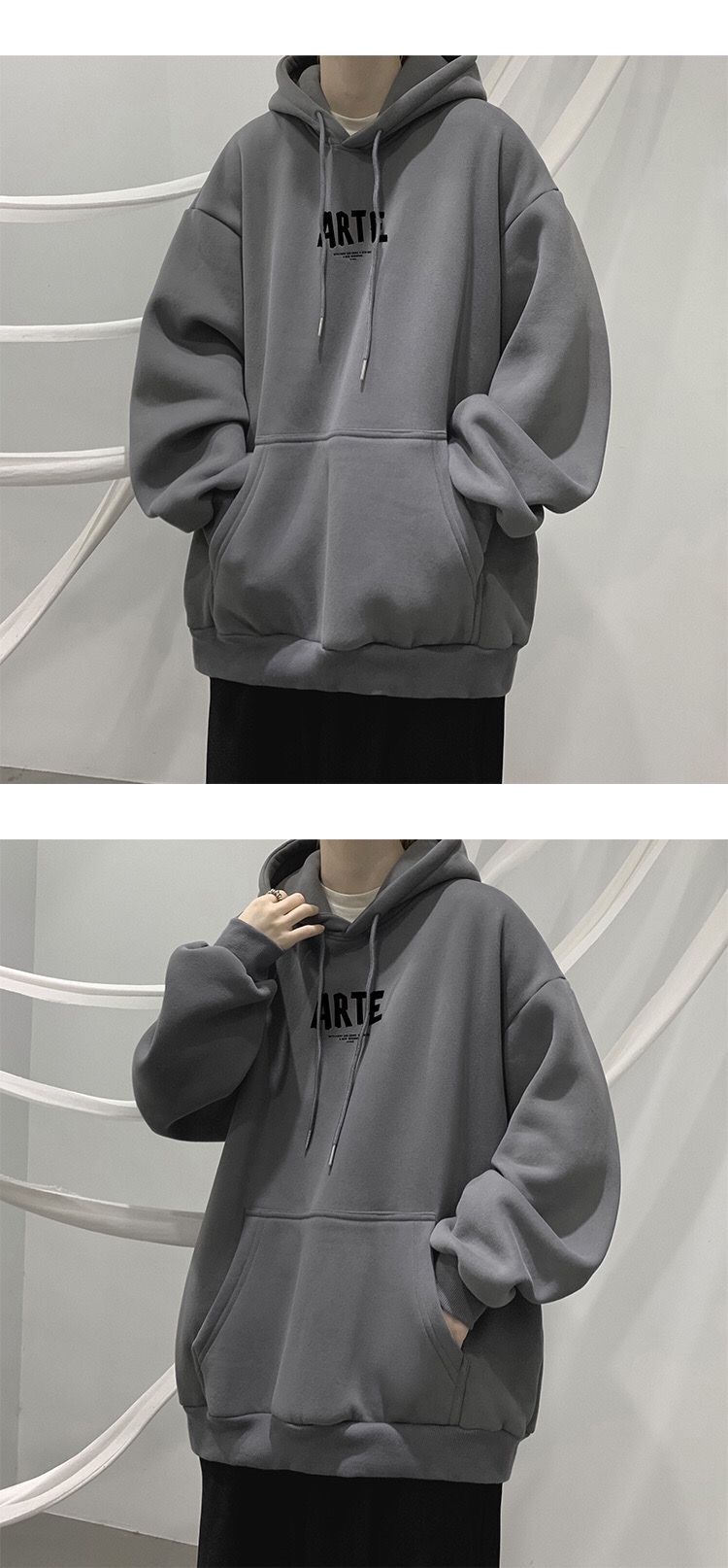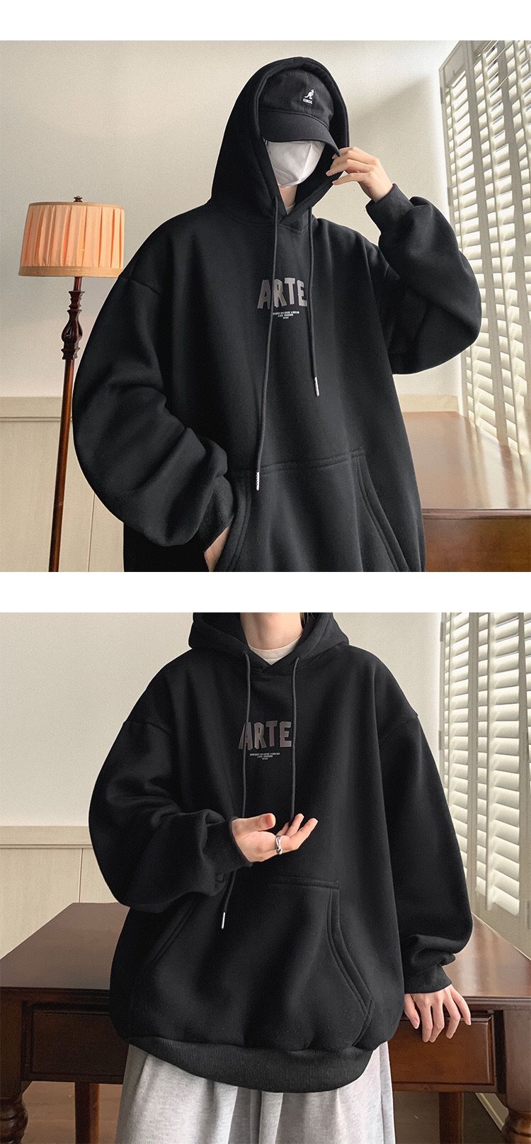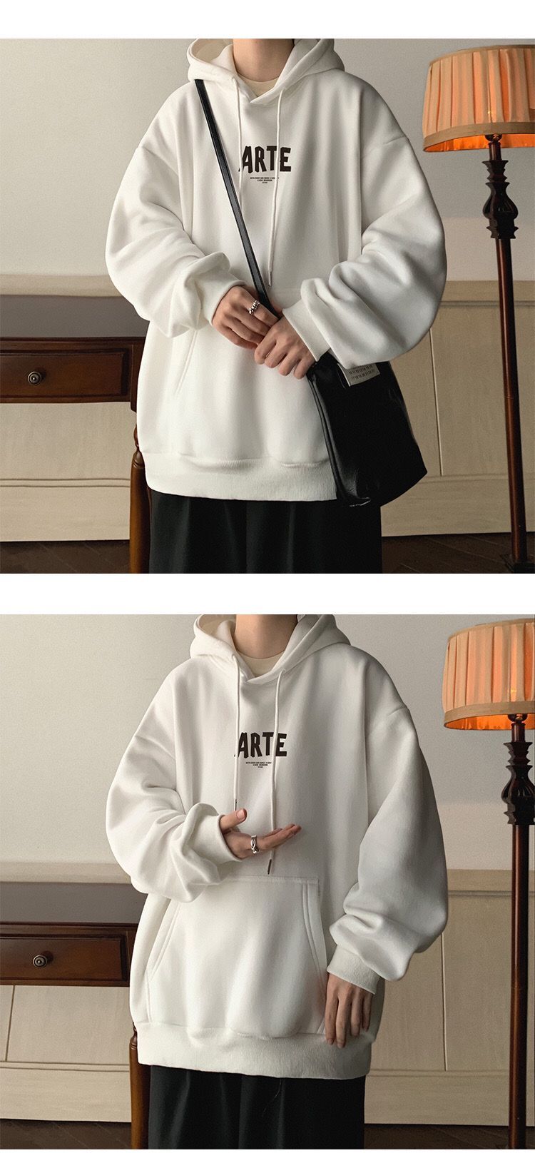 重磅純棉秋冬加絨加厚連帽衛衣男士美式潮牌簡約字母寬松休閒外套