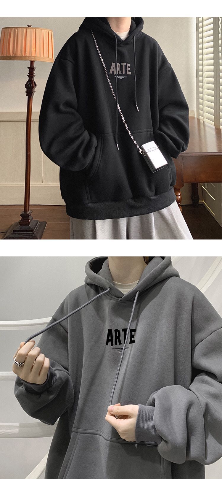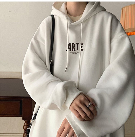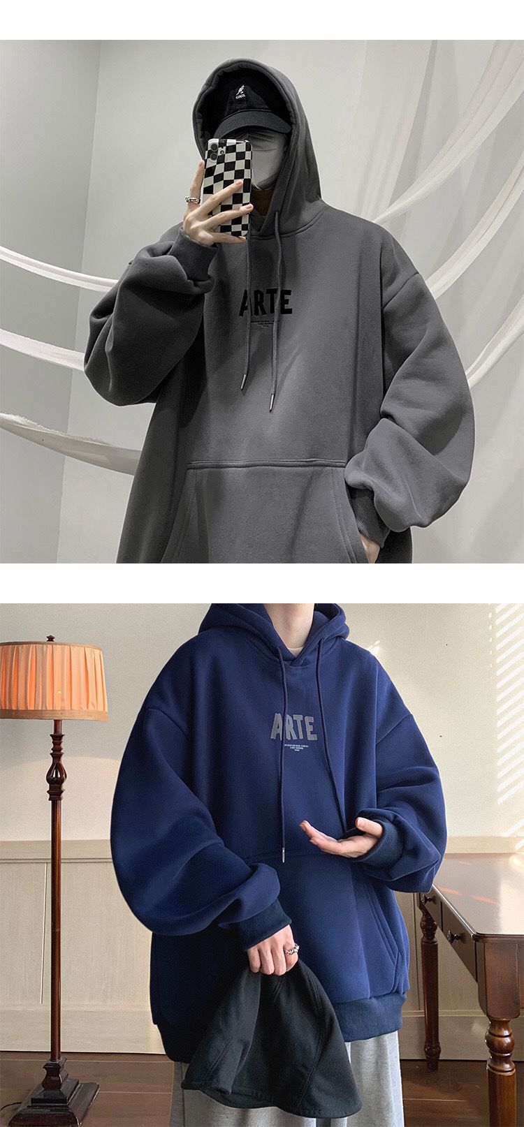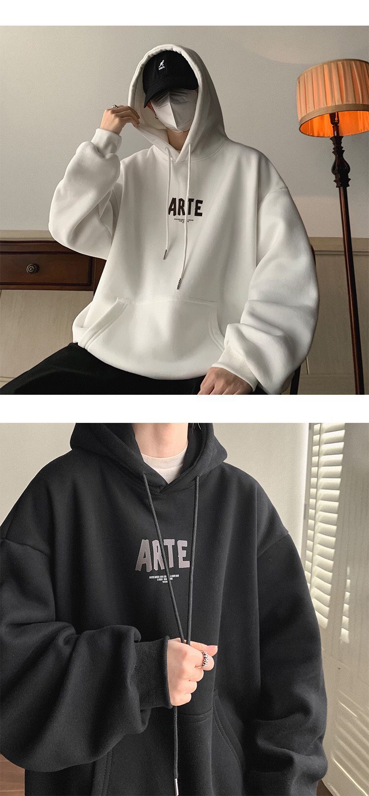 重磅純棉秋冬加絨加厚連帽衛衣男士美式潮牌簡約字母寬松休閒外套