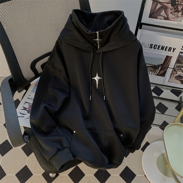 美式oversize高街連帽衛衣男春秋季寬松休閒潮牌i人遮臉高領上衣