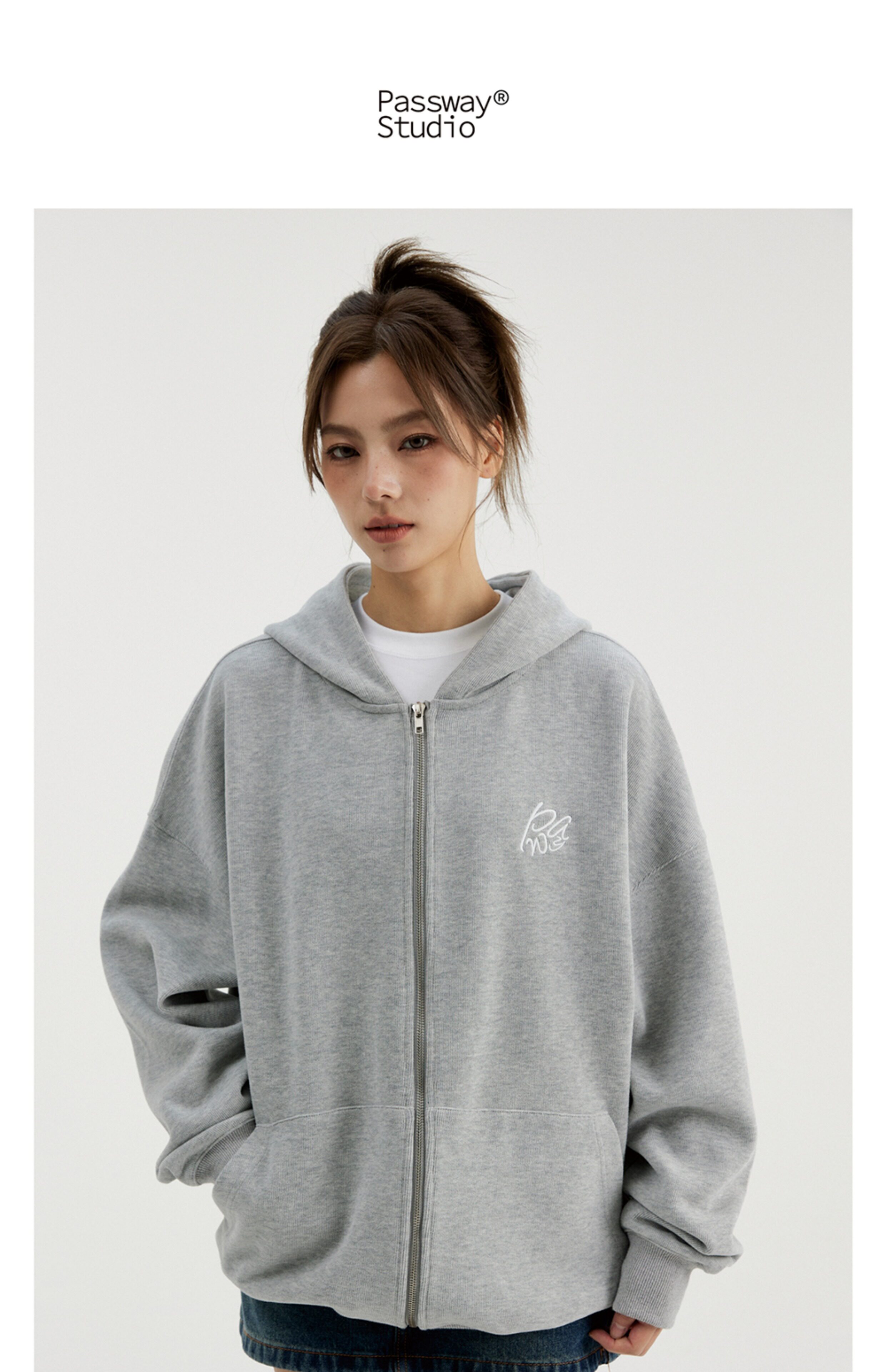 Passway Studio秋新款慵懶開衫連帽衛衣外套男女休閒復古潮牌上衣
