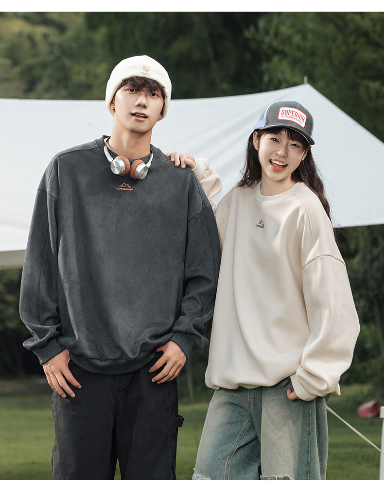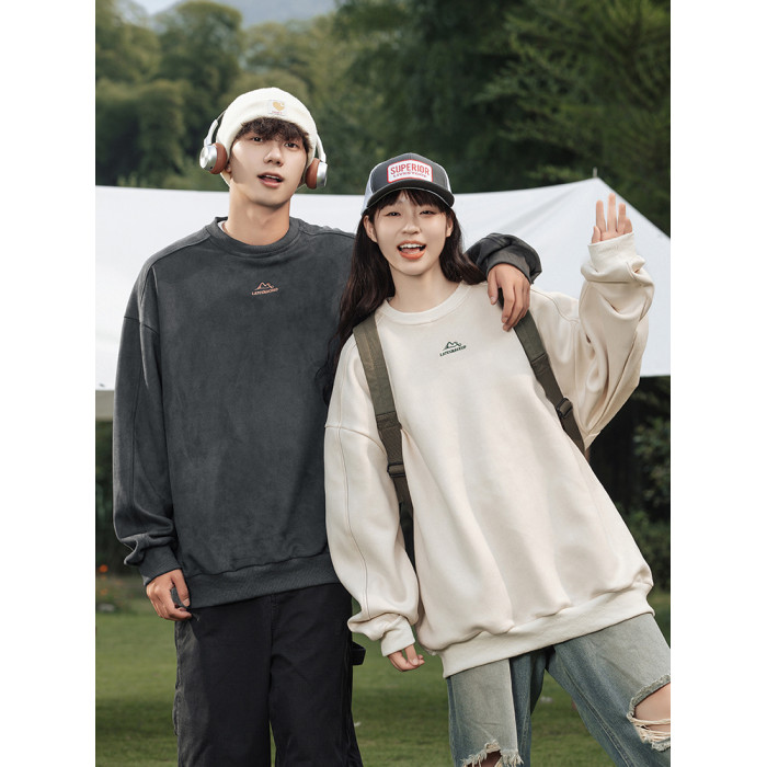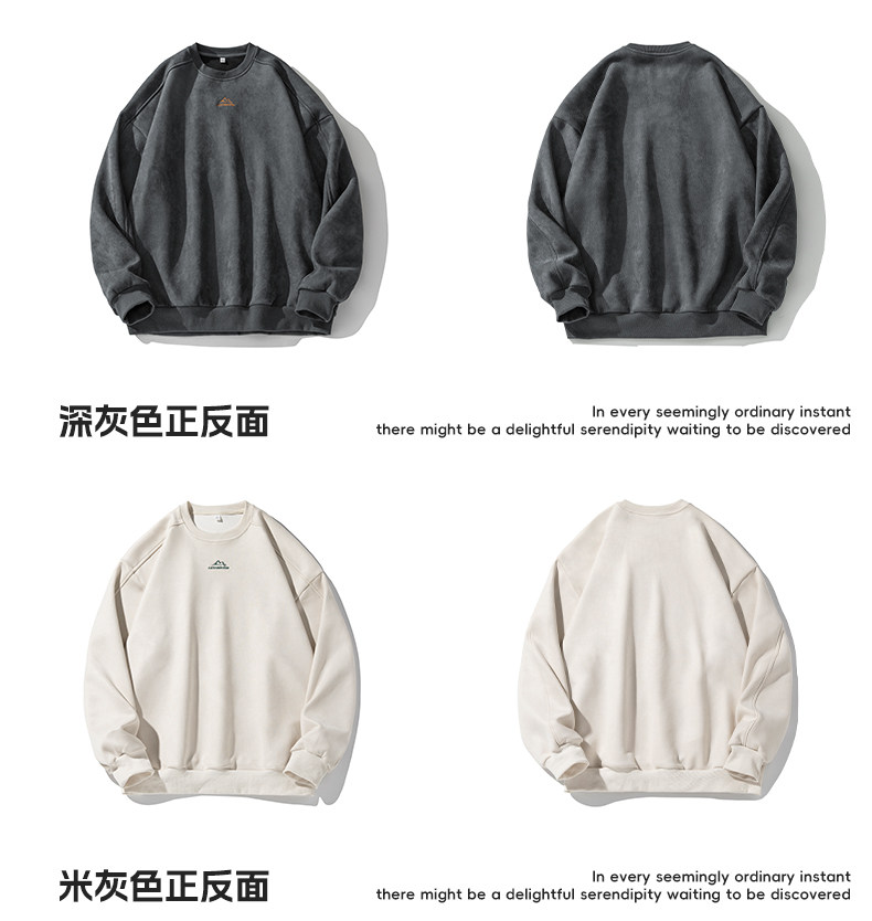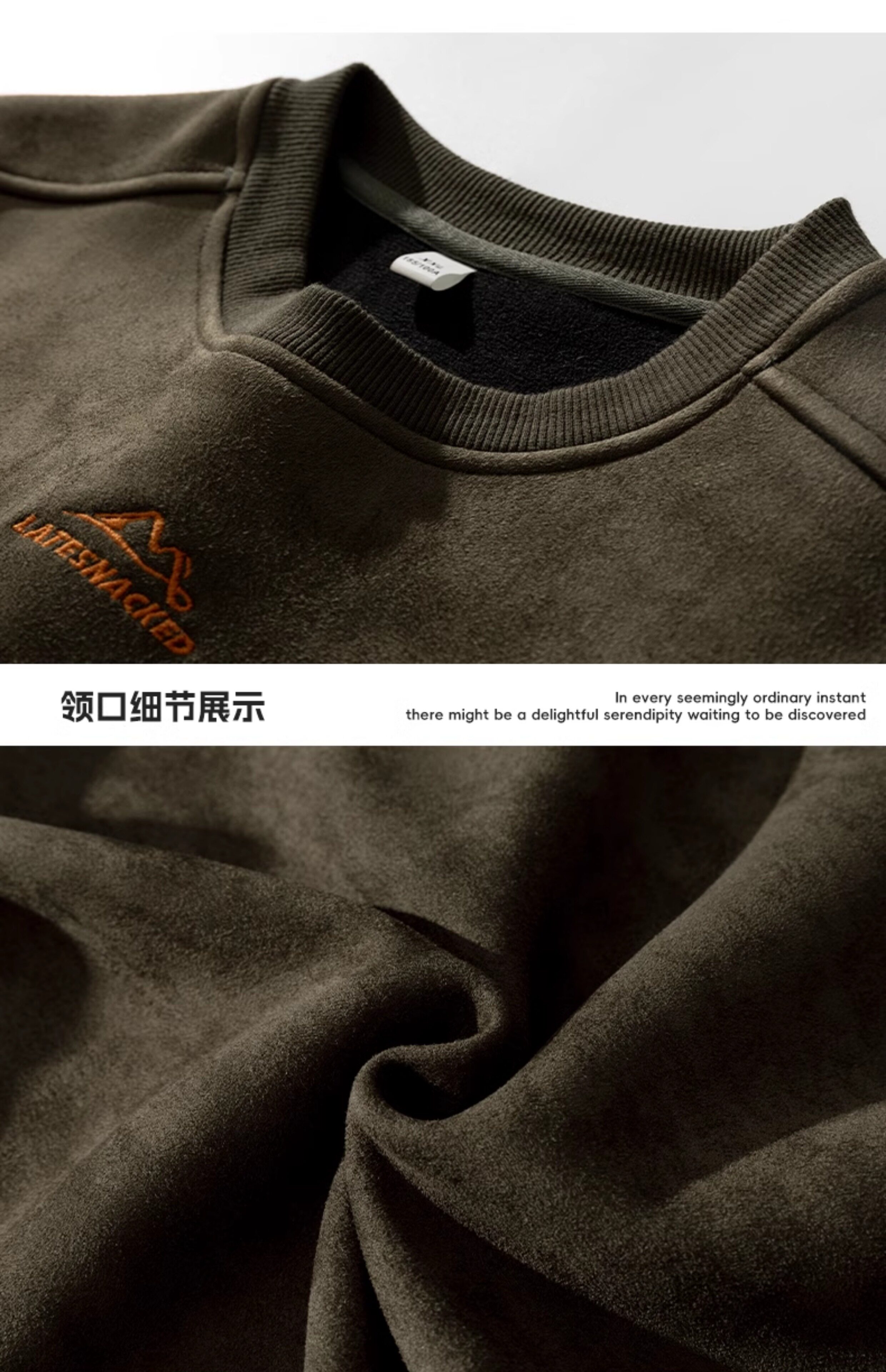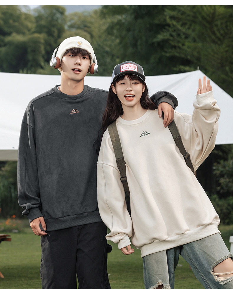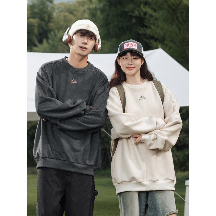 美式350g重磅麂皮絨衛衣冬季復古情侶加絨保暖休閒寬松長袖上衣男