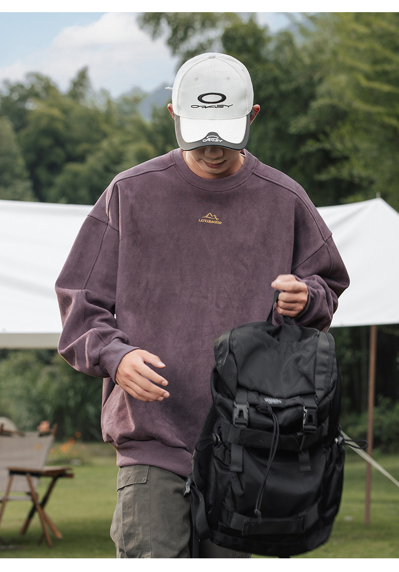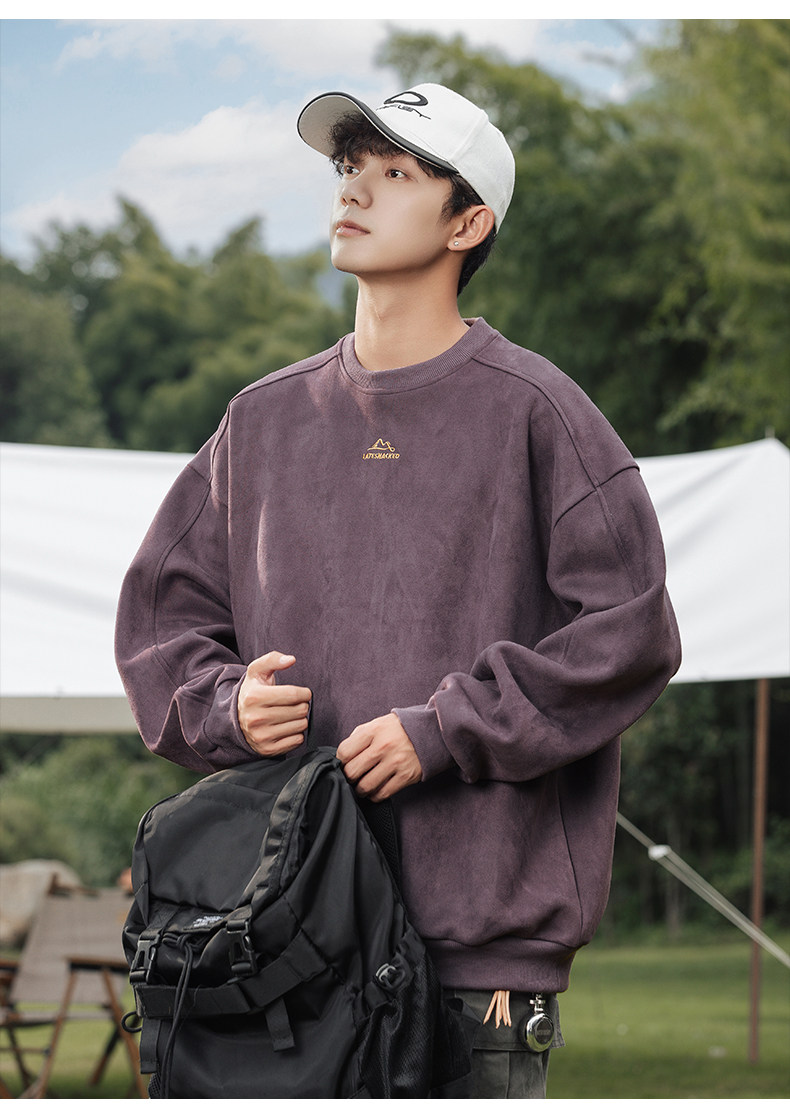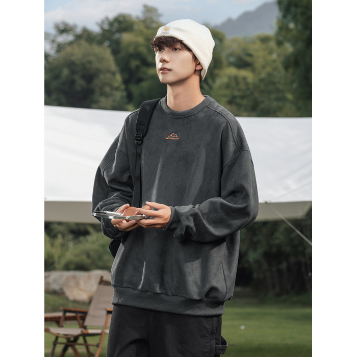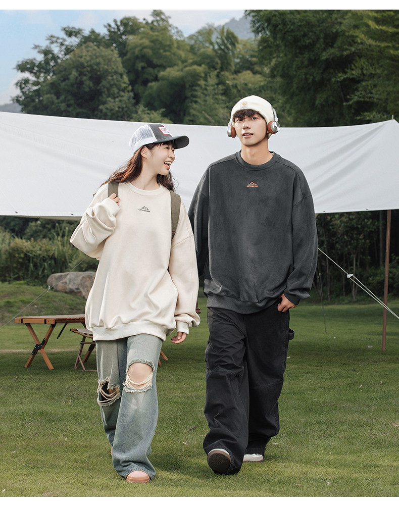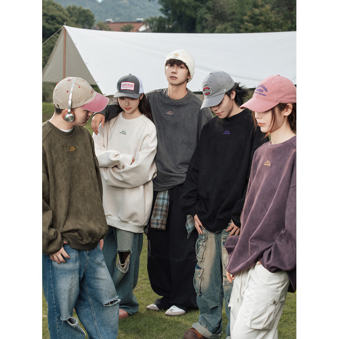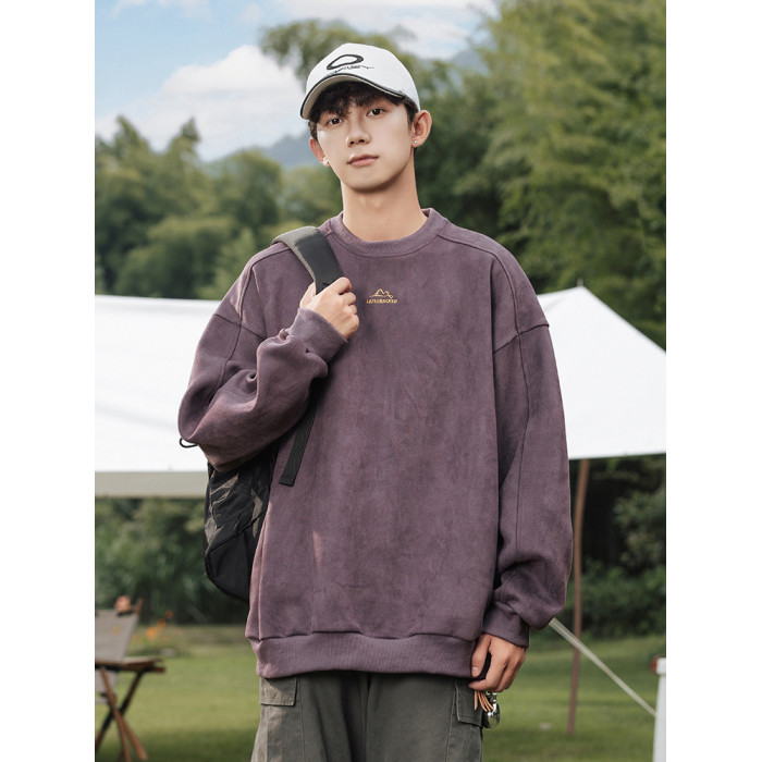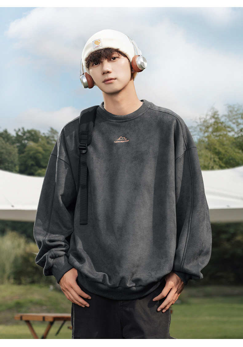 美式350g重磅麂皮絨衛衣冬季復古情侶加絨保暖休閒寬松長袖上衣男