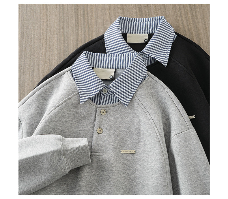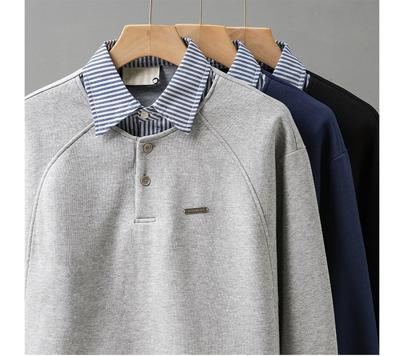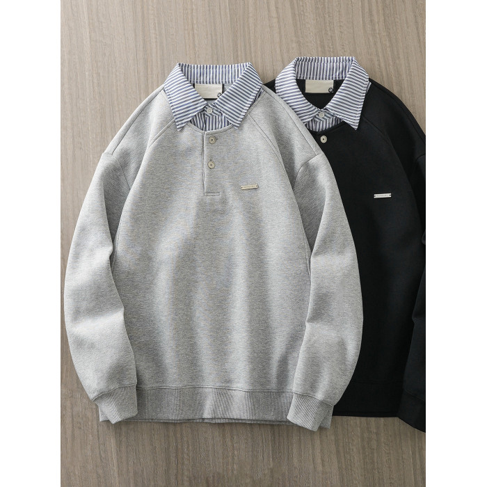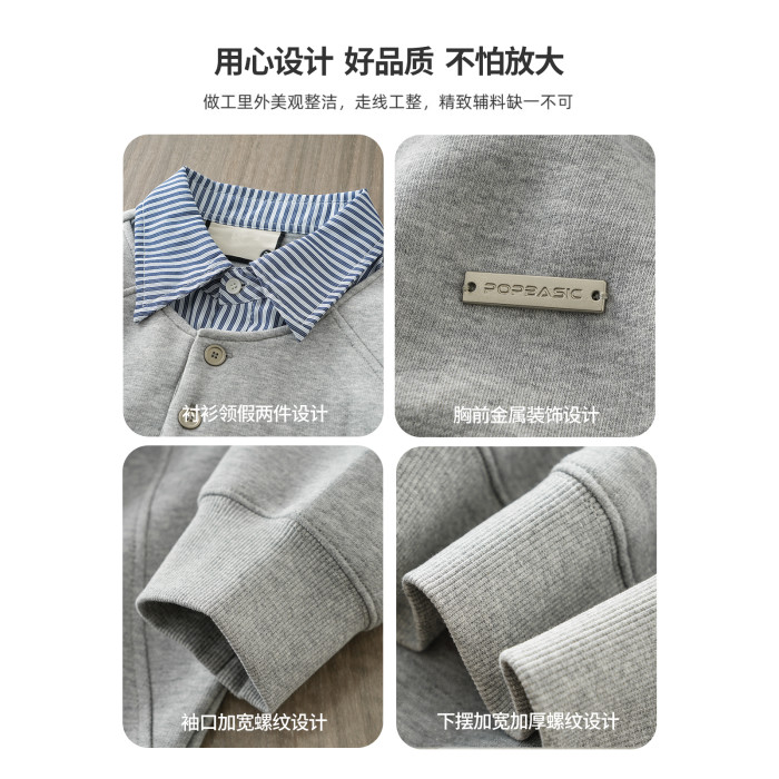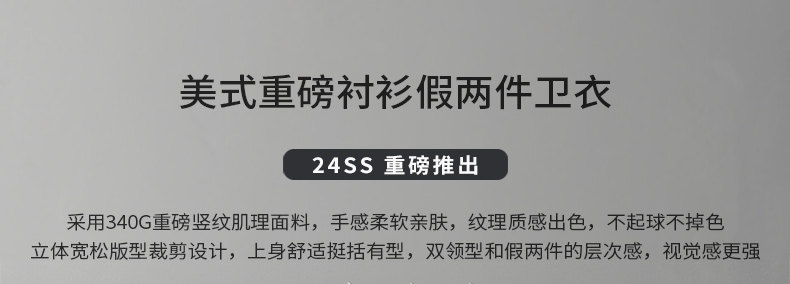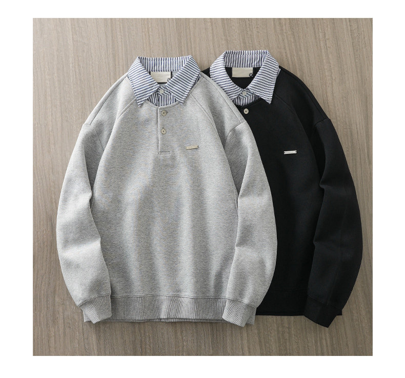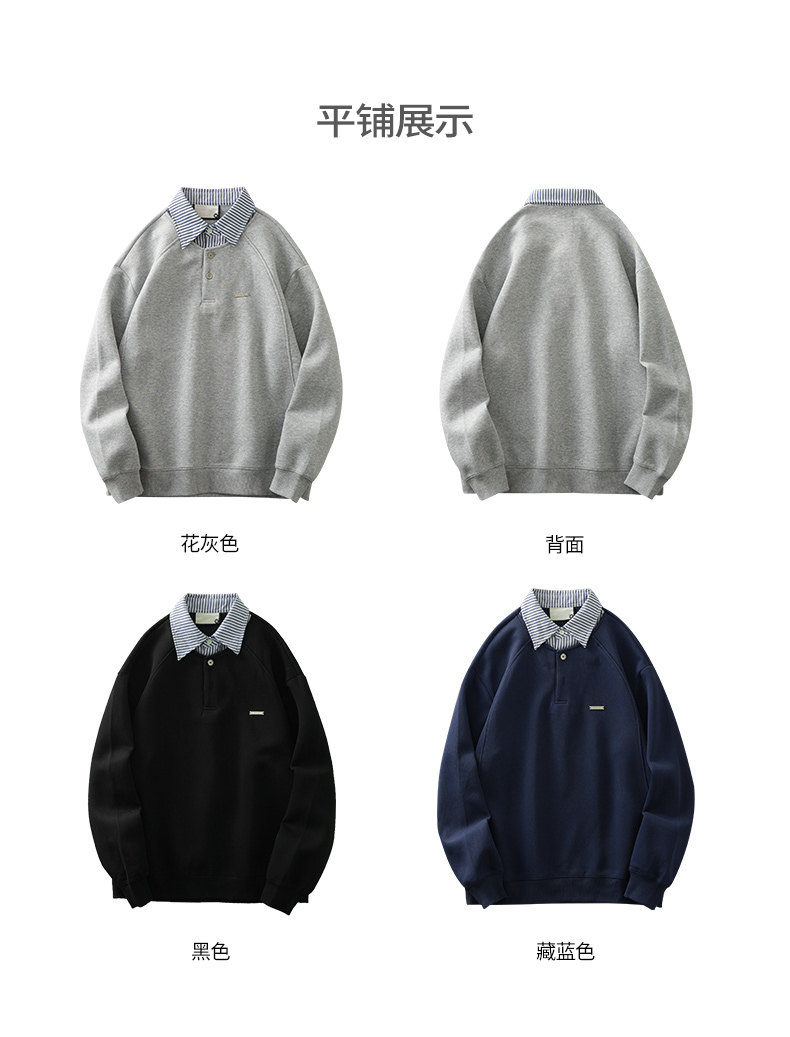 日系重磅襯衫假兩件衛衣男美式小衆設計感拼接寬松翻領外套長袖