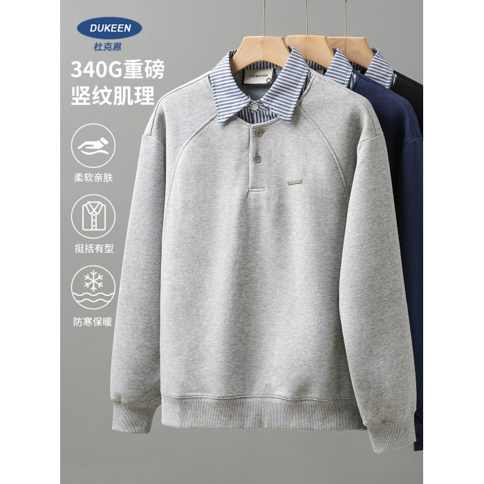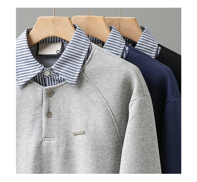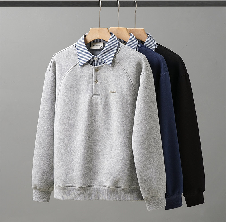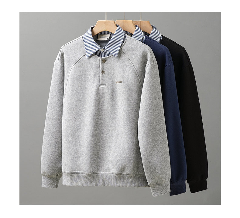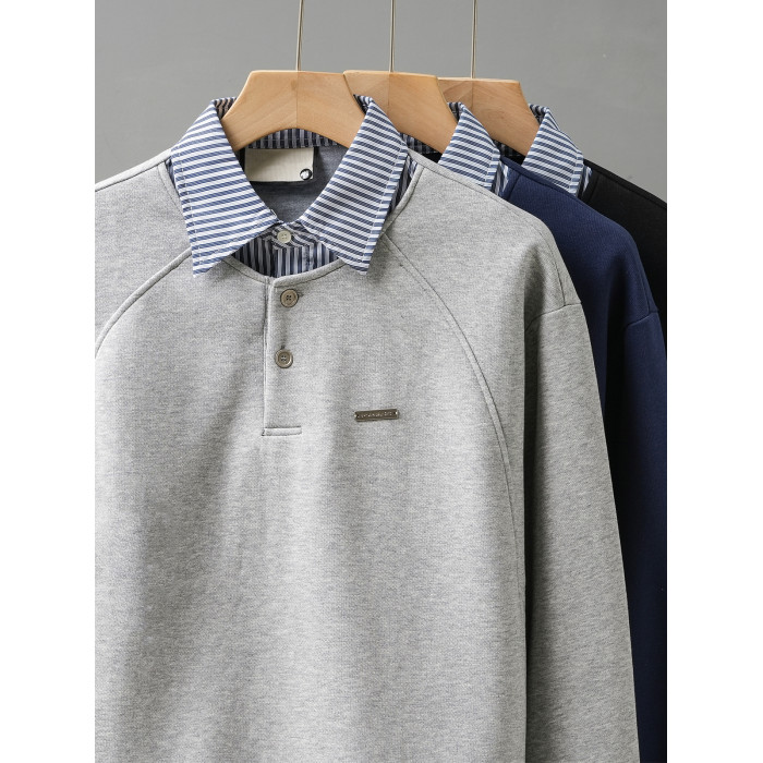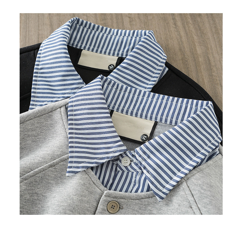 日系重磅襯衫假兩件衛衣男美式小衆設計感拼接寬松翻領外套長袖