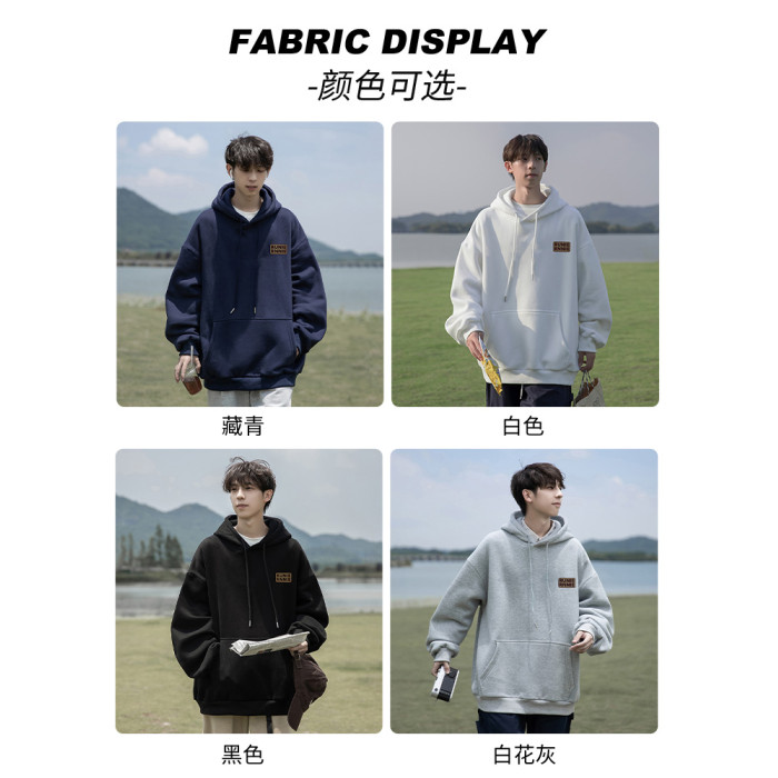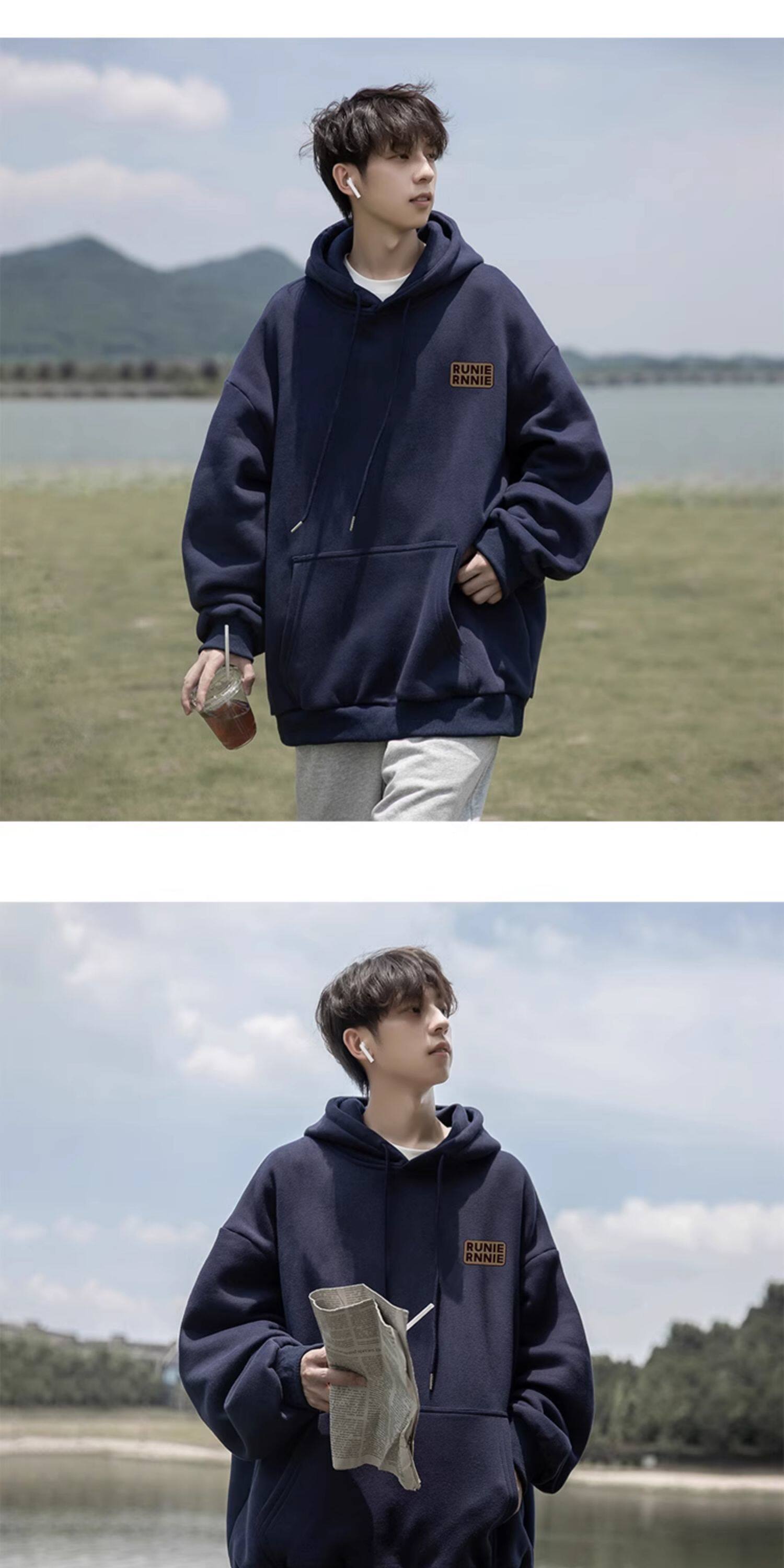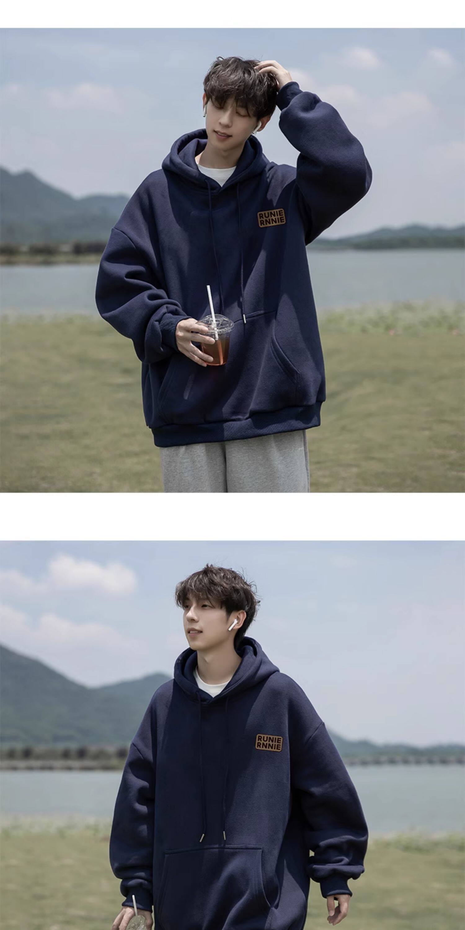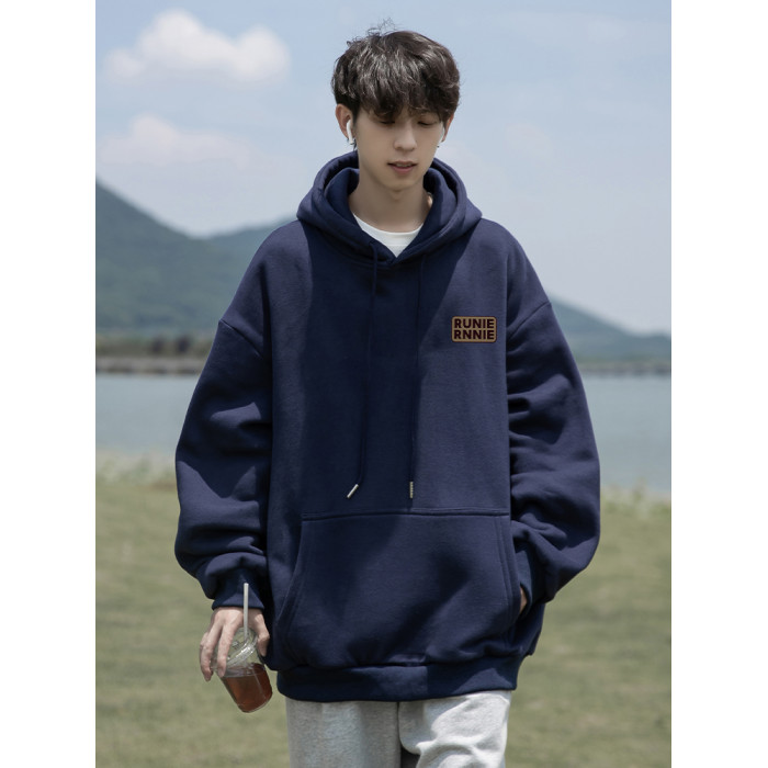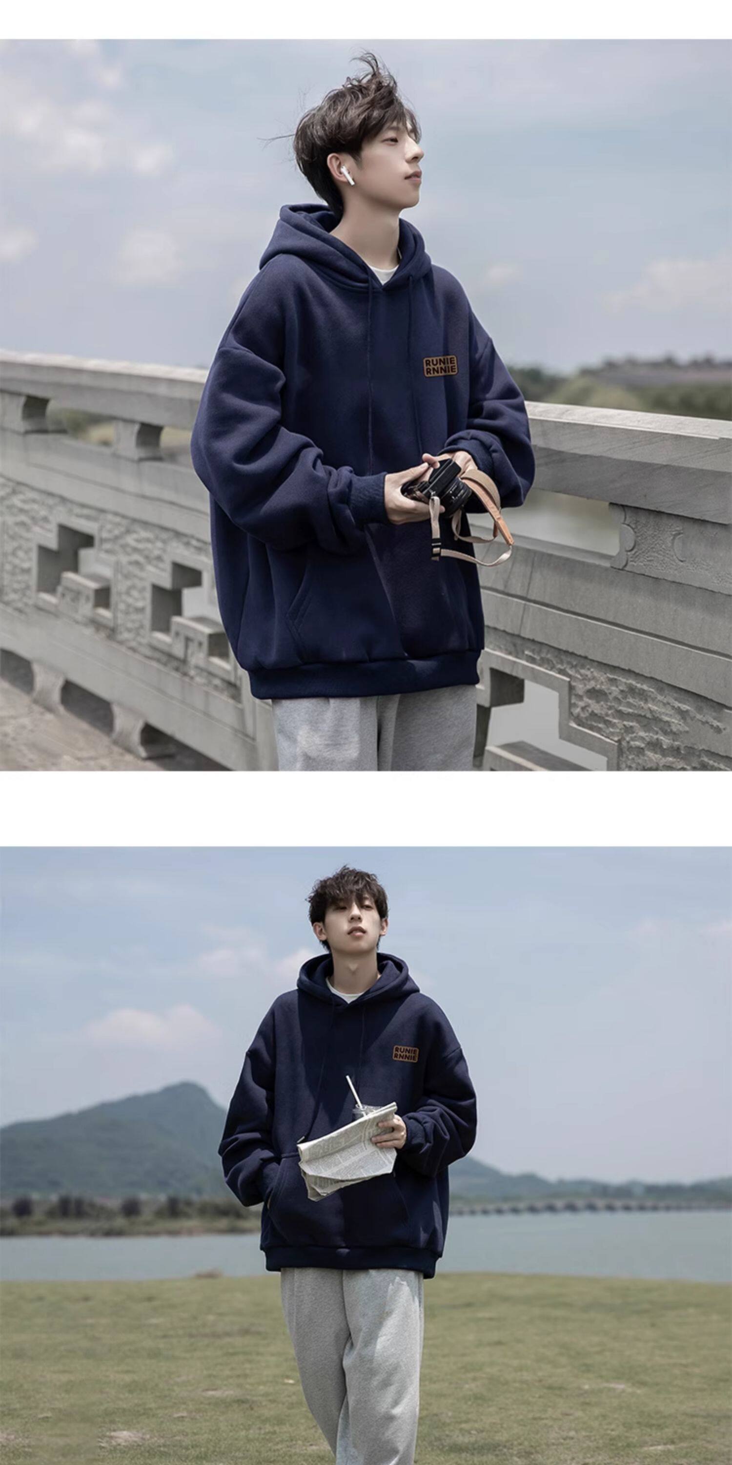 藏青色連帽衛衣男款春秋季2025新款潮牌重磅冬款加絨加厚寬松外套