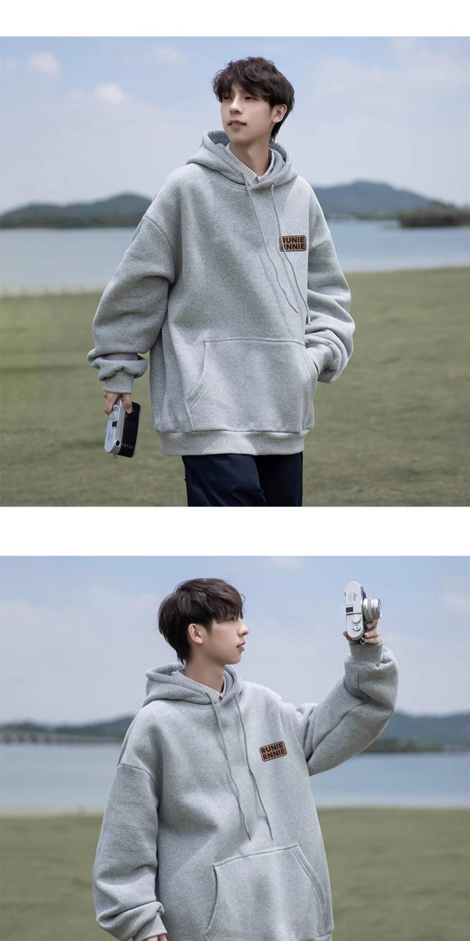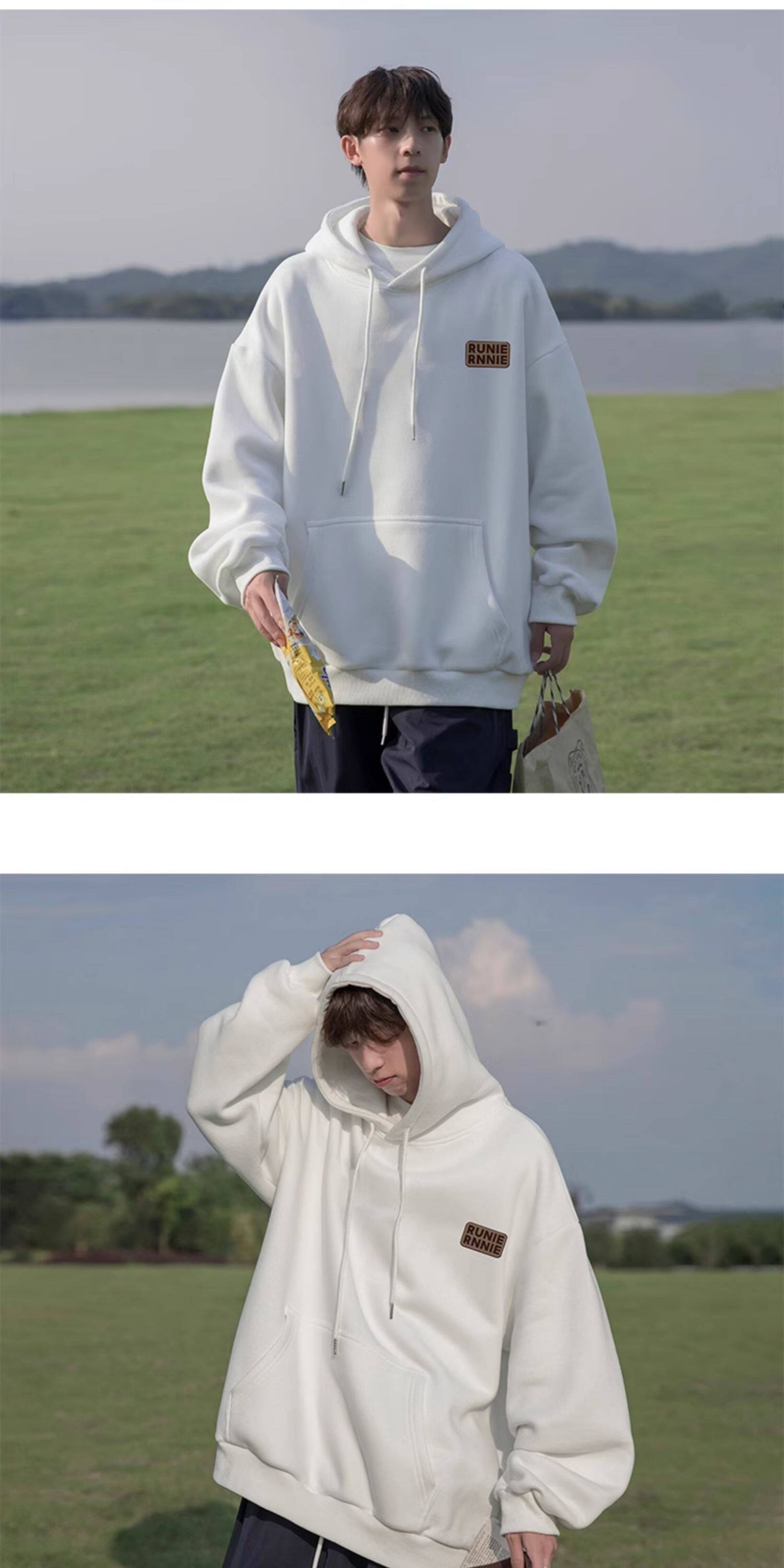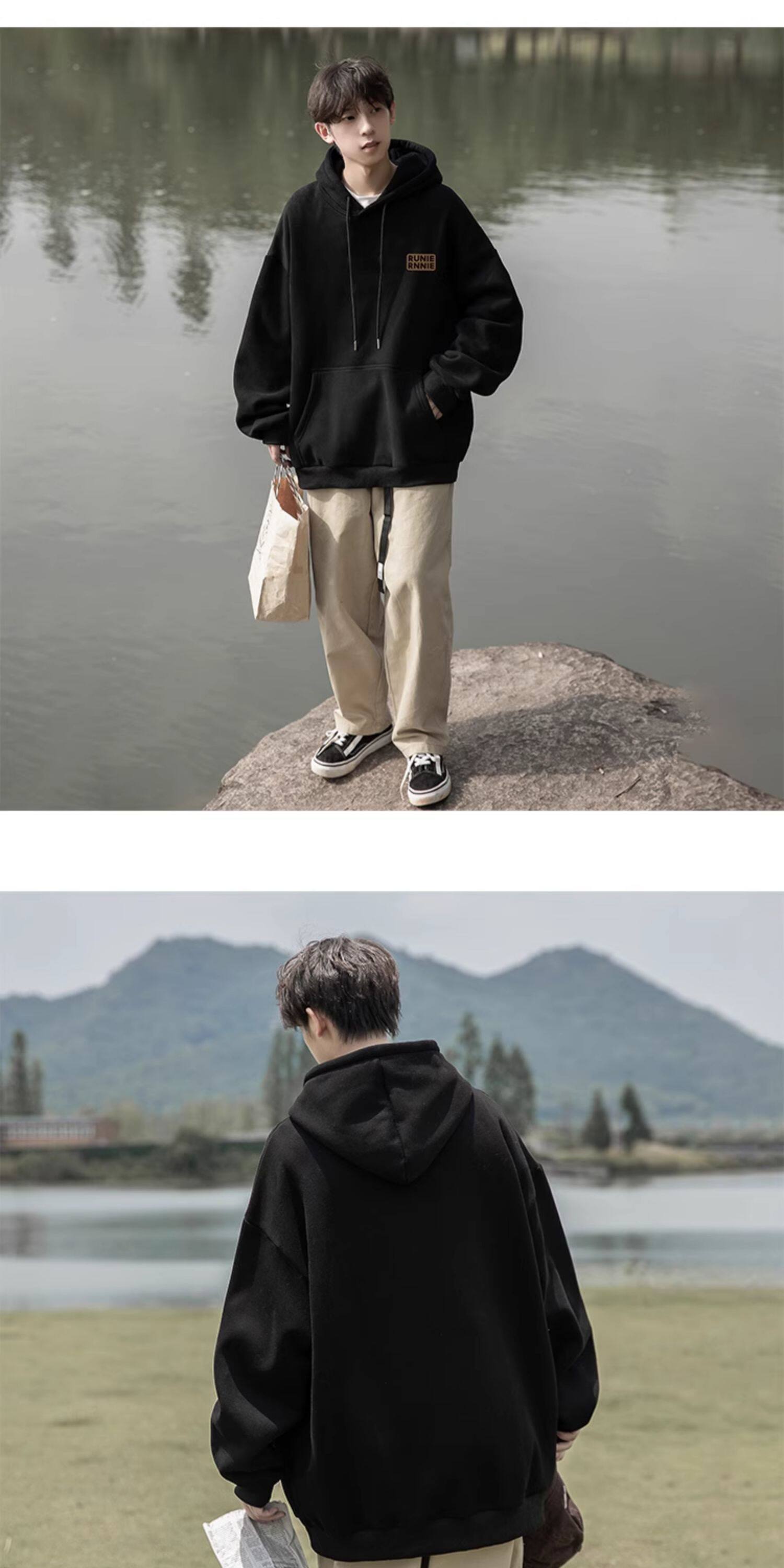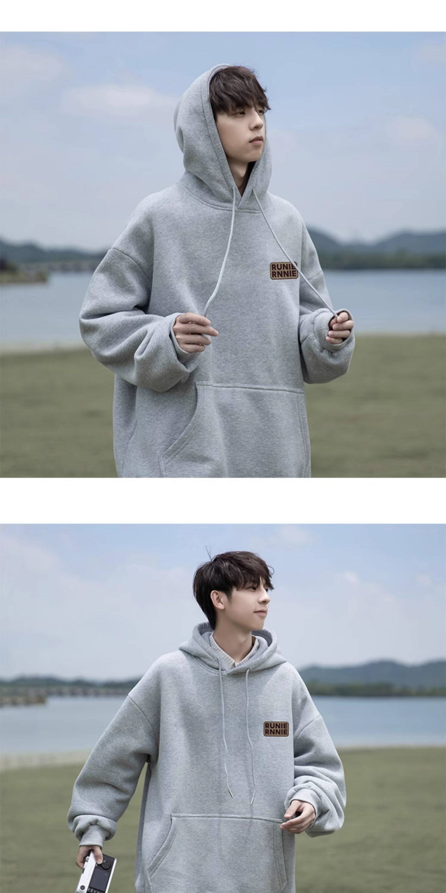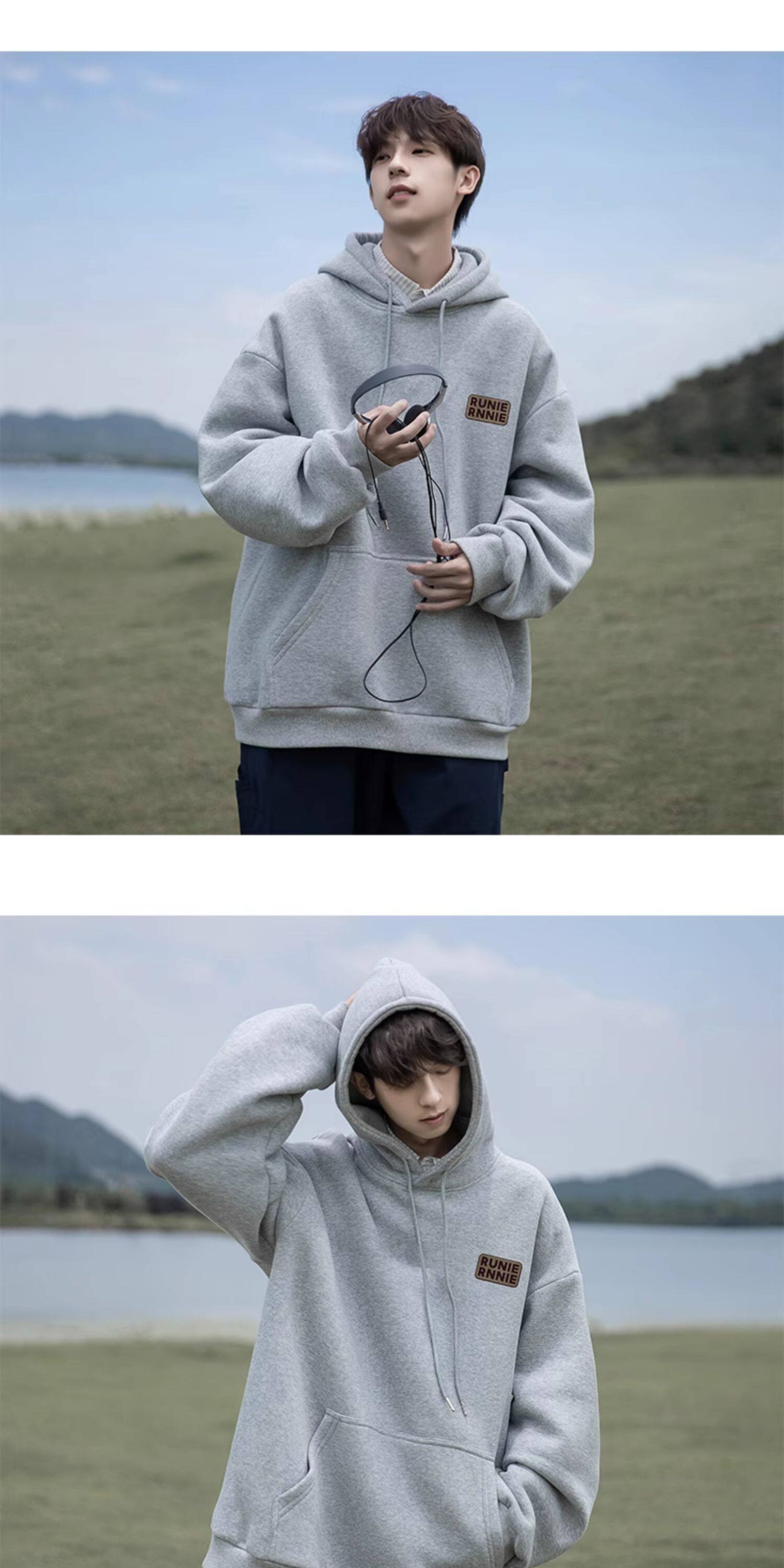 藏青色連帽衛衣男款春秋季2025新款潮牌重磅冬款加絨加厚寬松外套