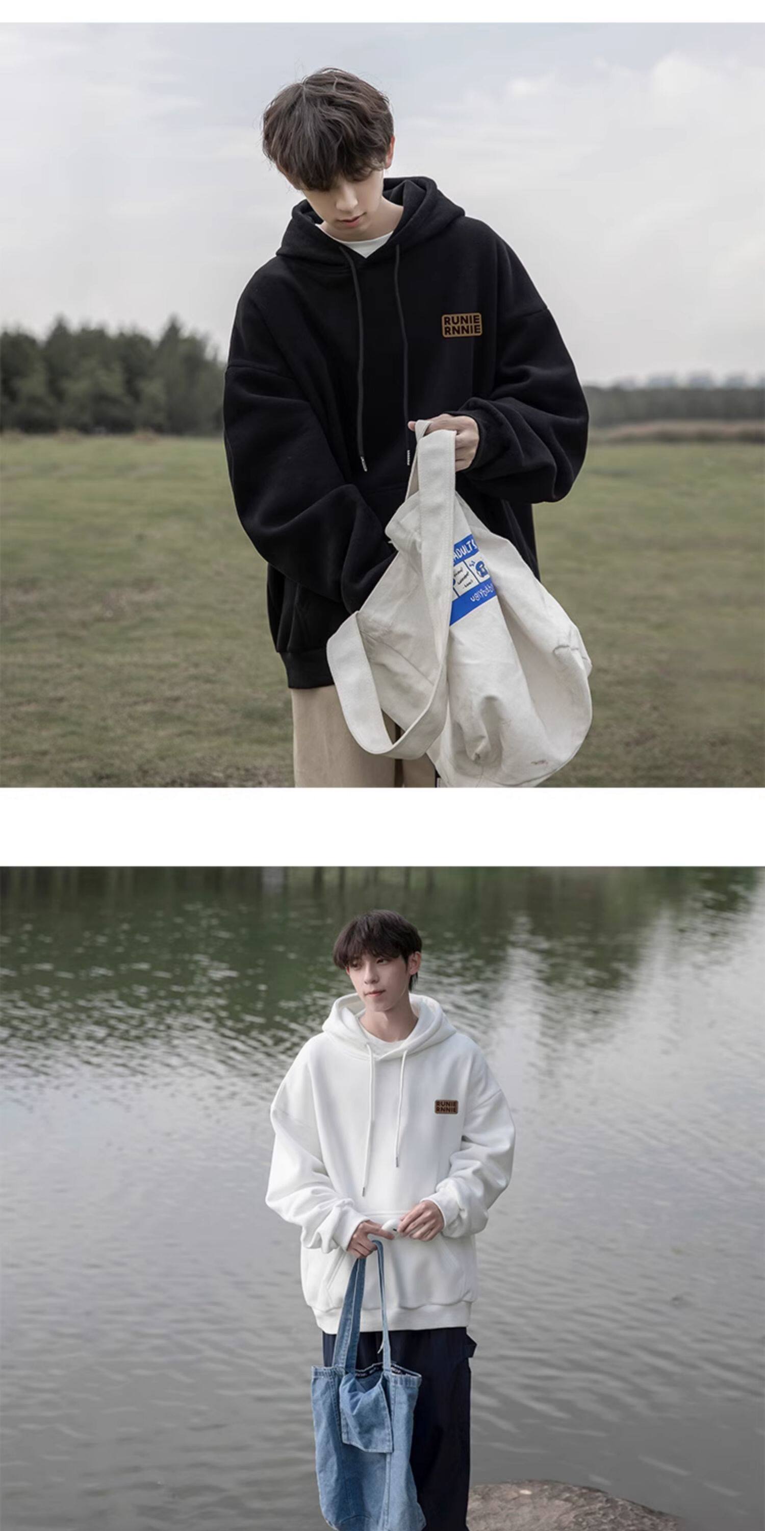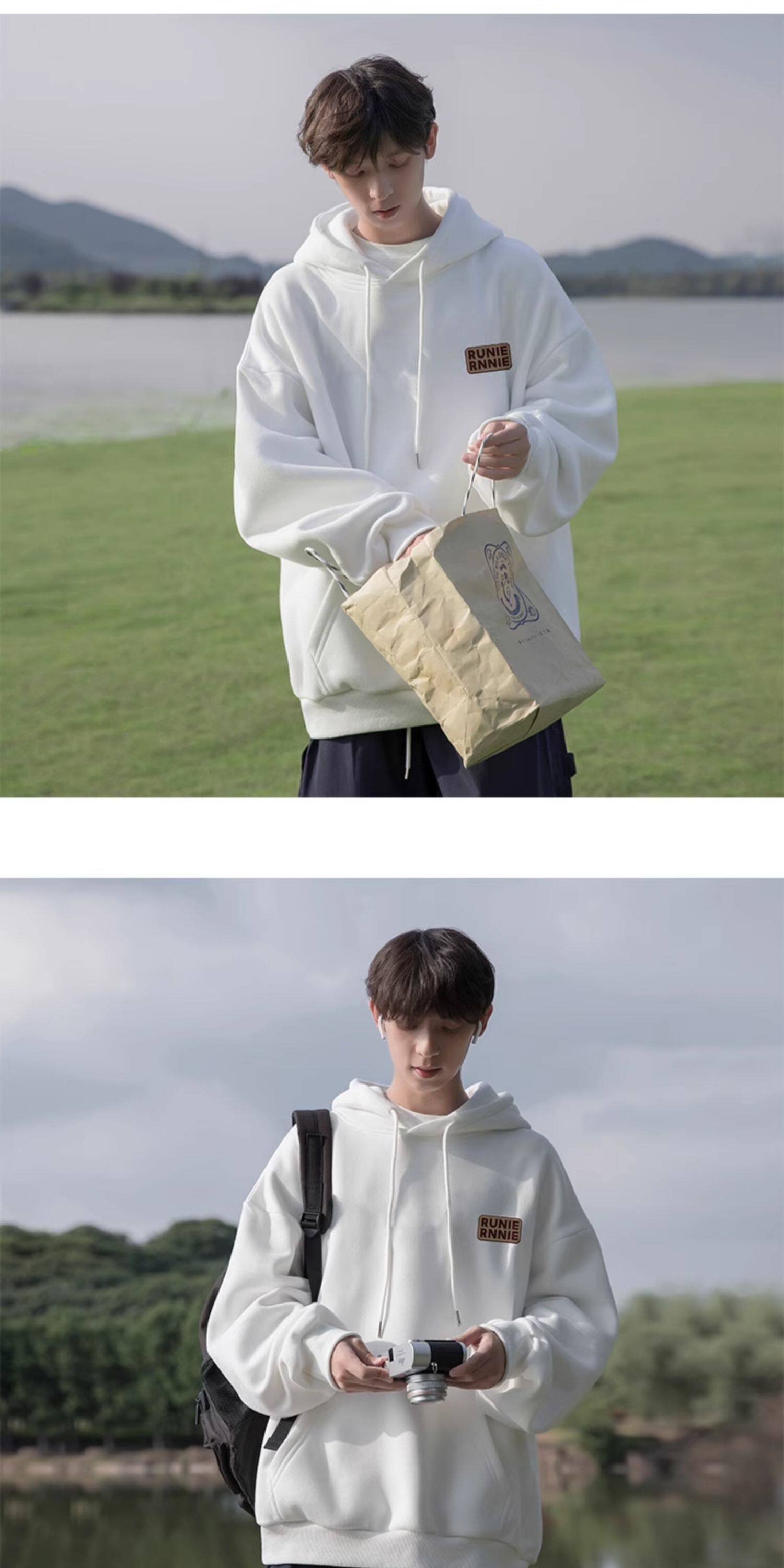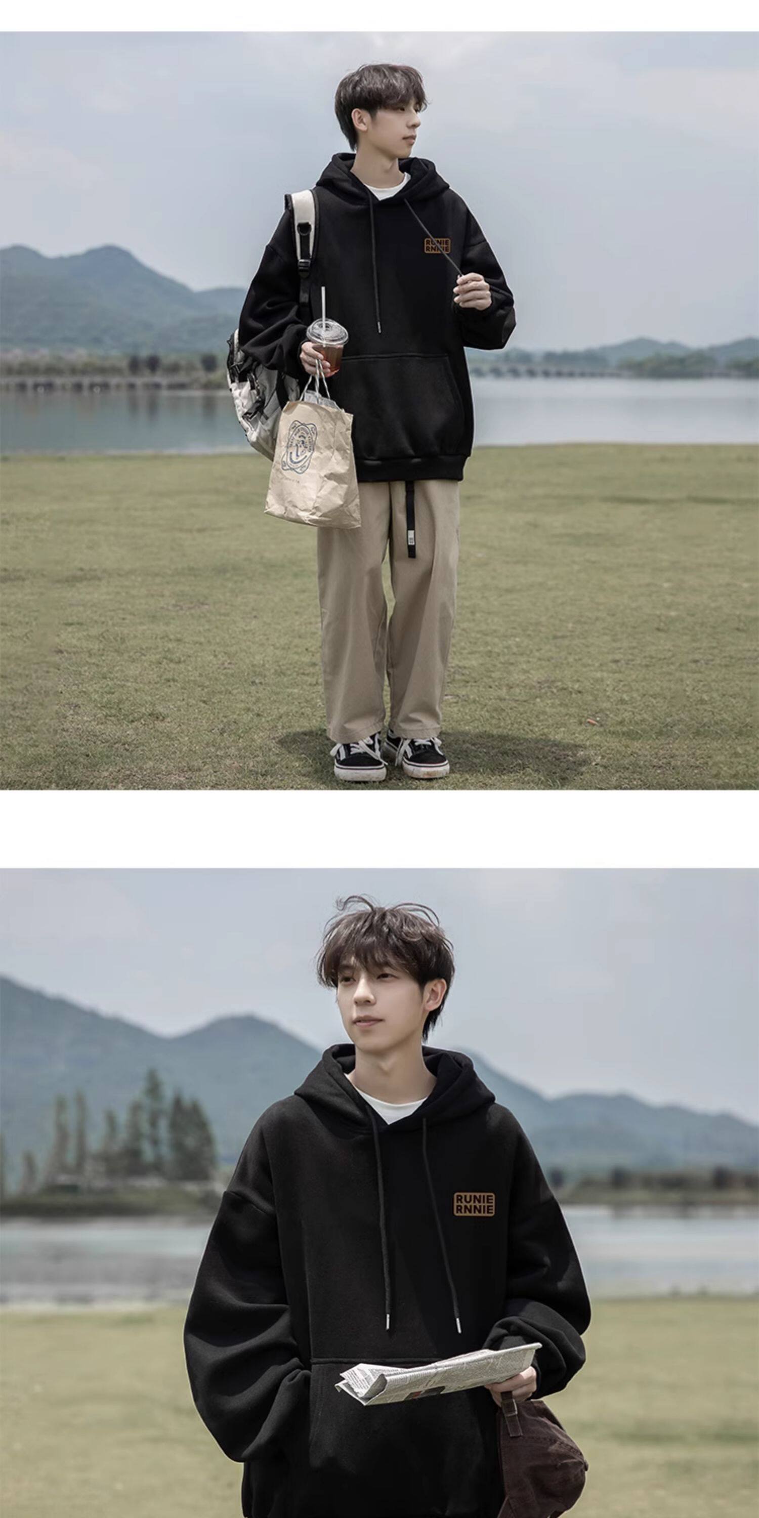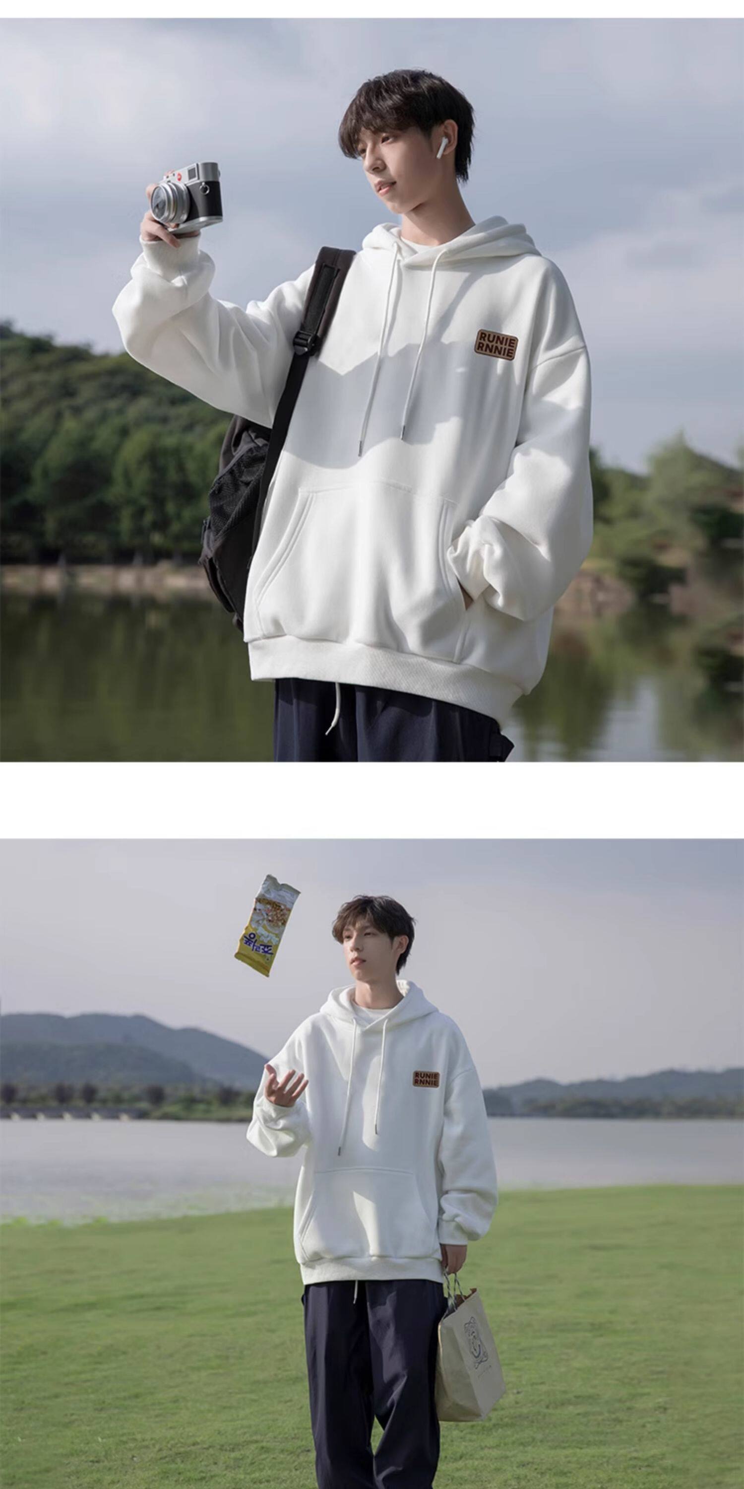 藏青色連帽衛衣男款春秋季2025新款潮牌重磅冬款加絨加厚寬松外套