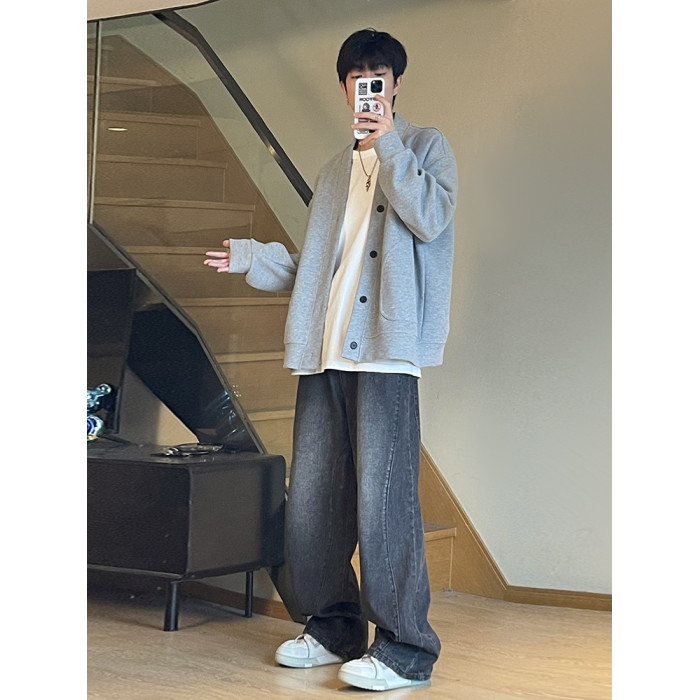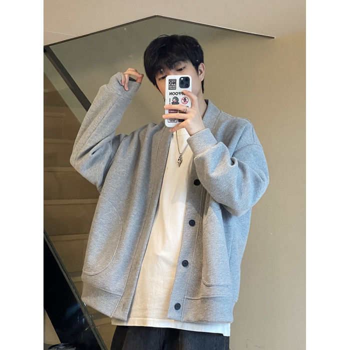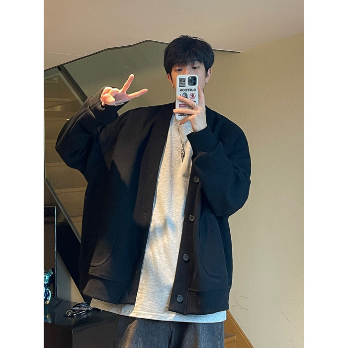 開衫外套男春秋寬松長袖衛衣美式潮牌百搭帥氣情侶裝穿搭慵懶外衣