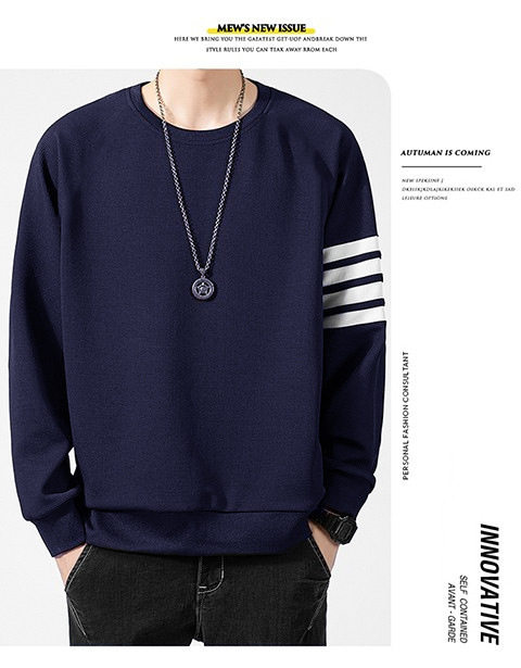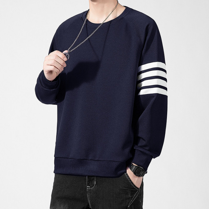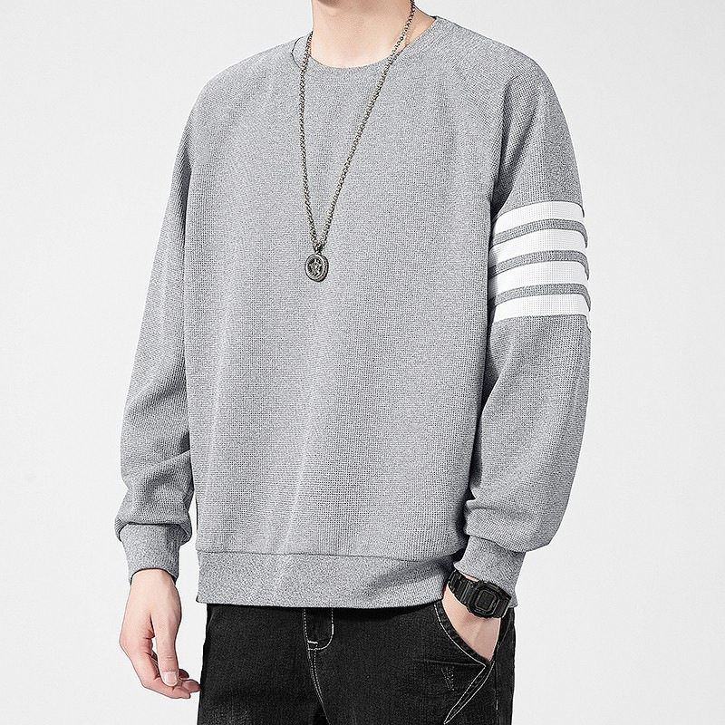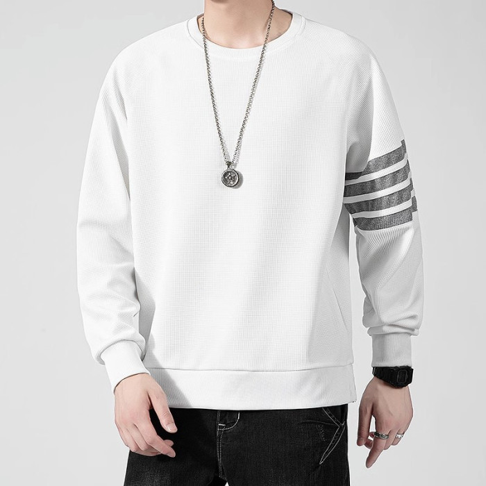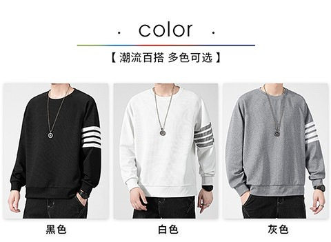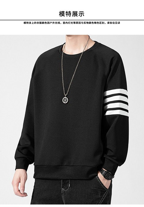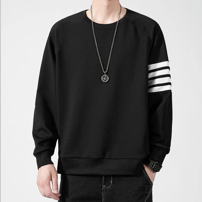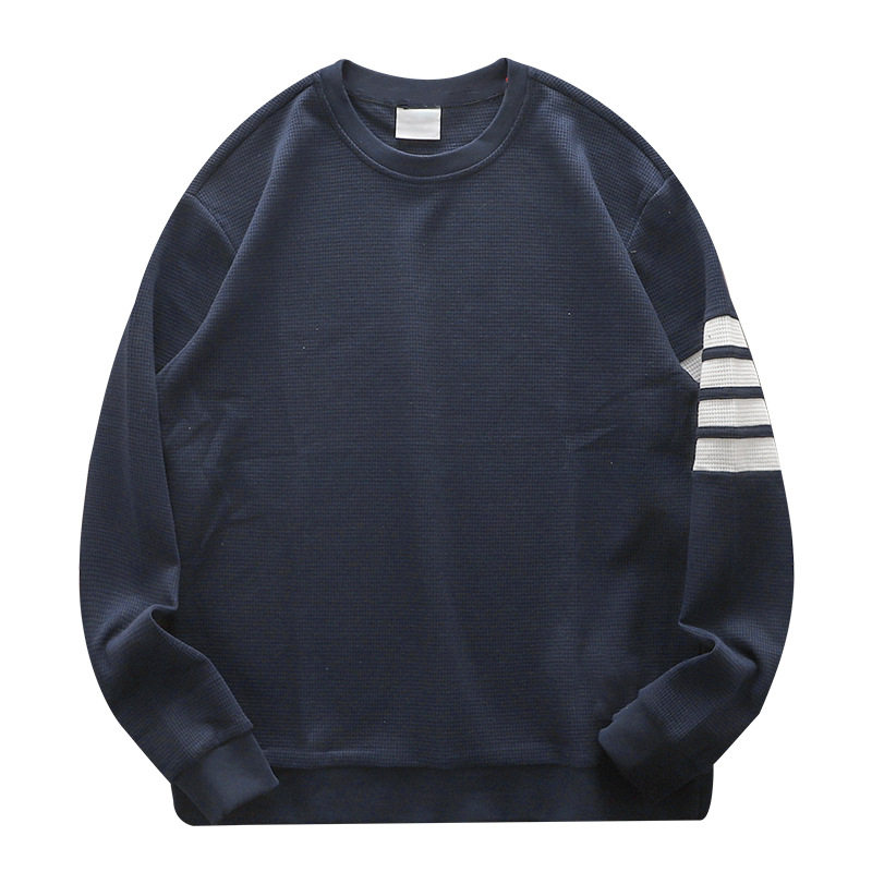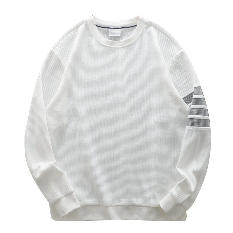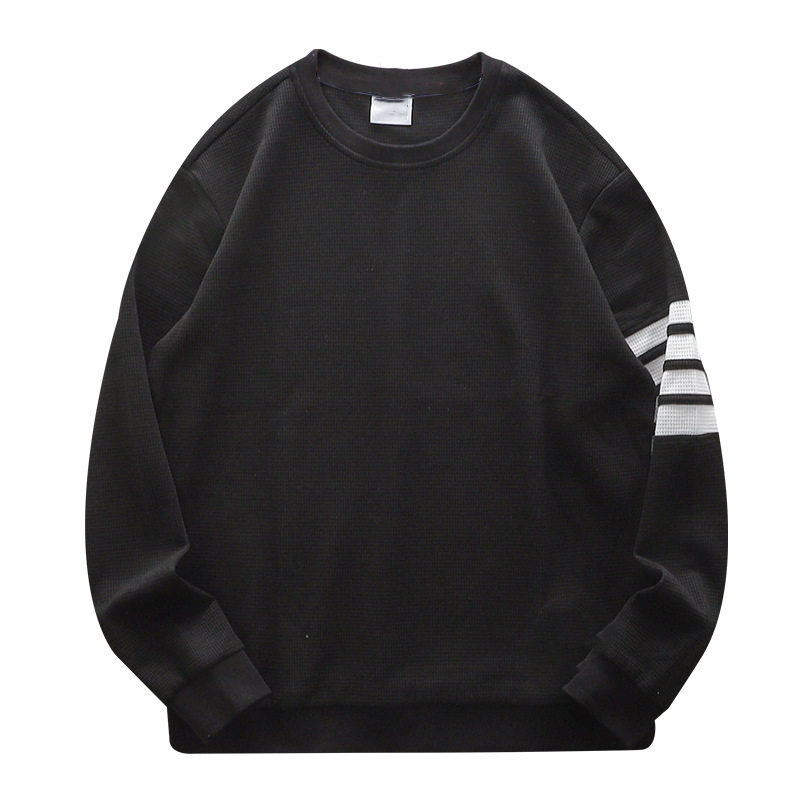 華夫格秋季新款男士圓領港風長袖衛衣潮牌青少年學生運動套頭打底