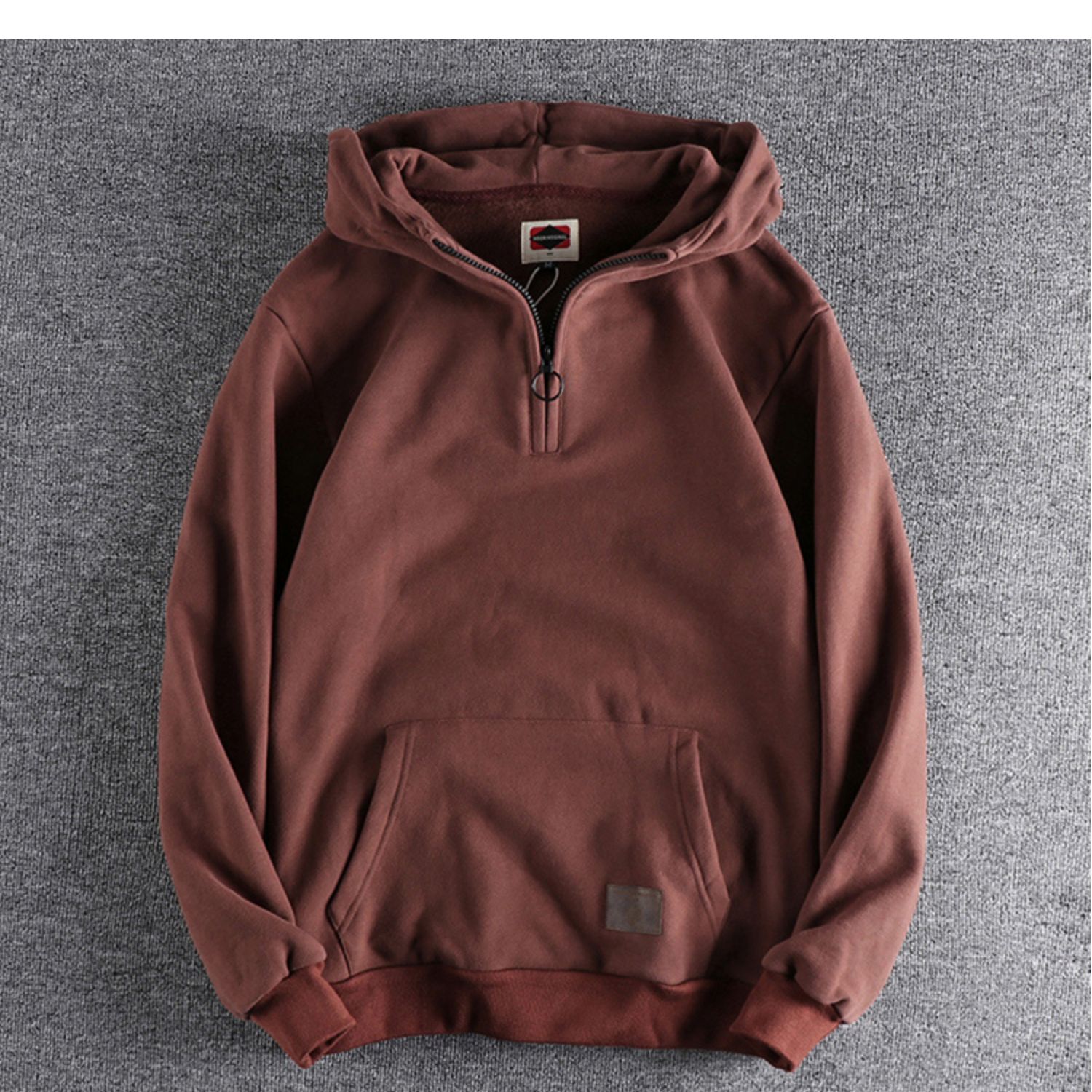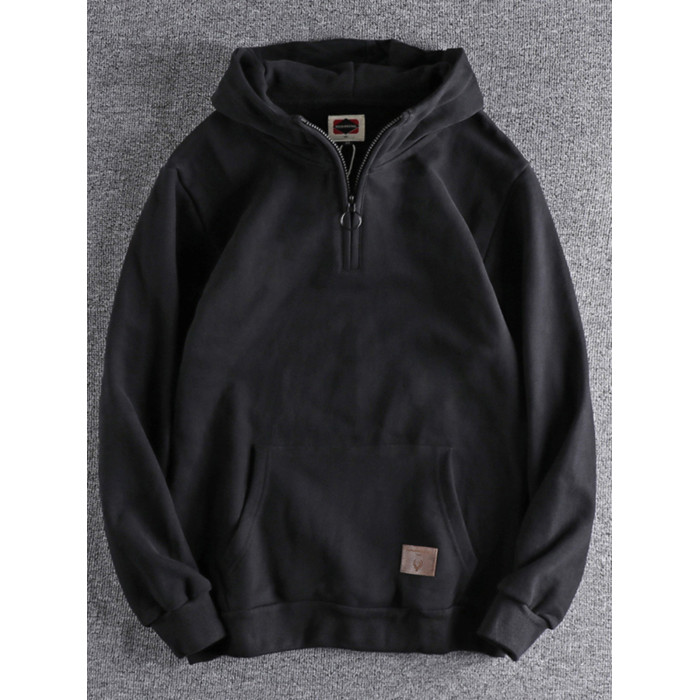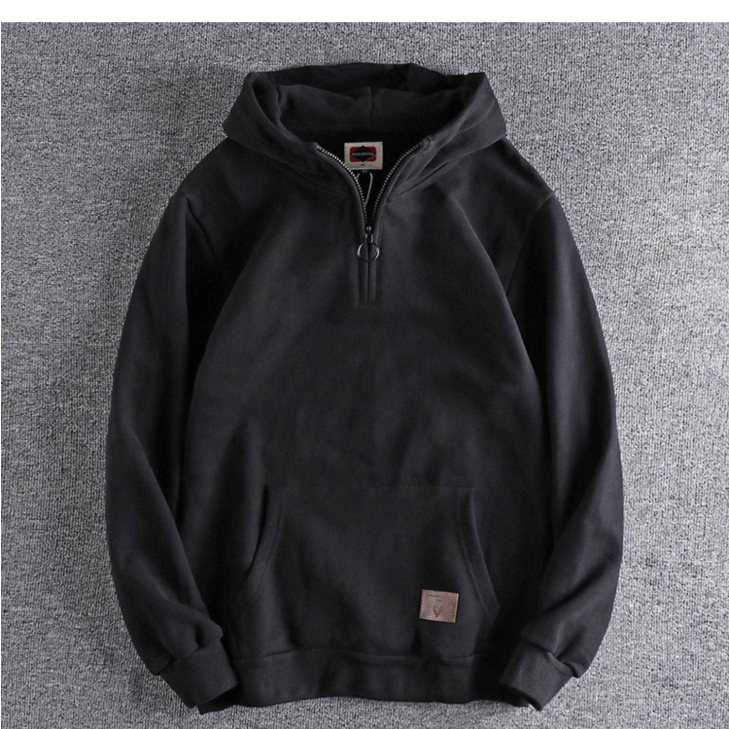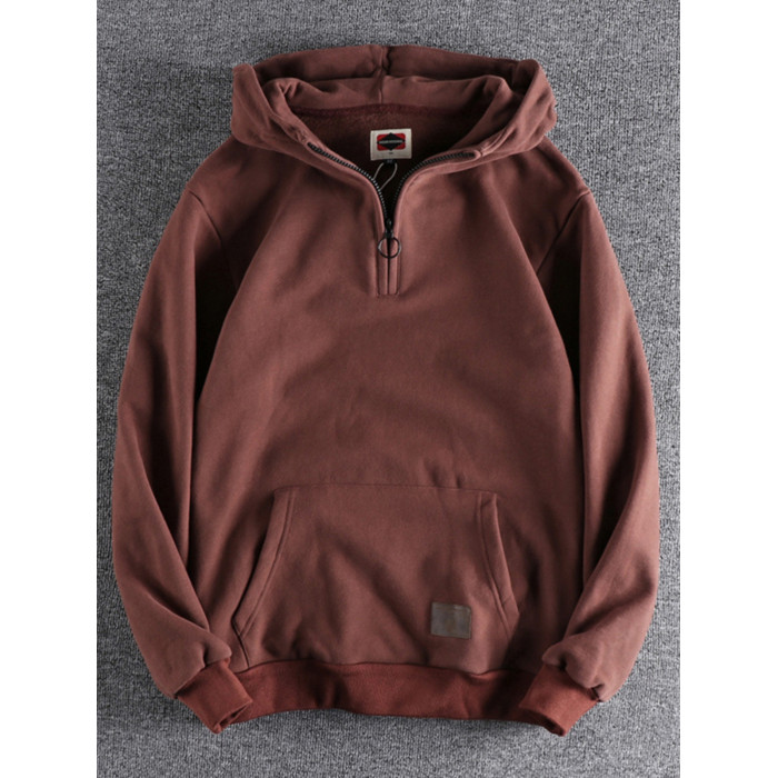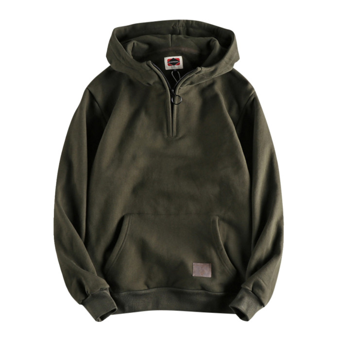 美式復古半開領連帽男士衛衣春秋季做舊潮流加絨加厚青年上衣外套