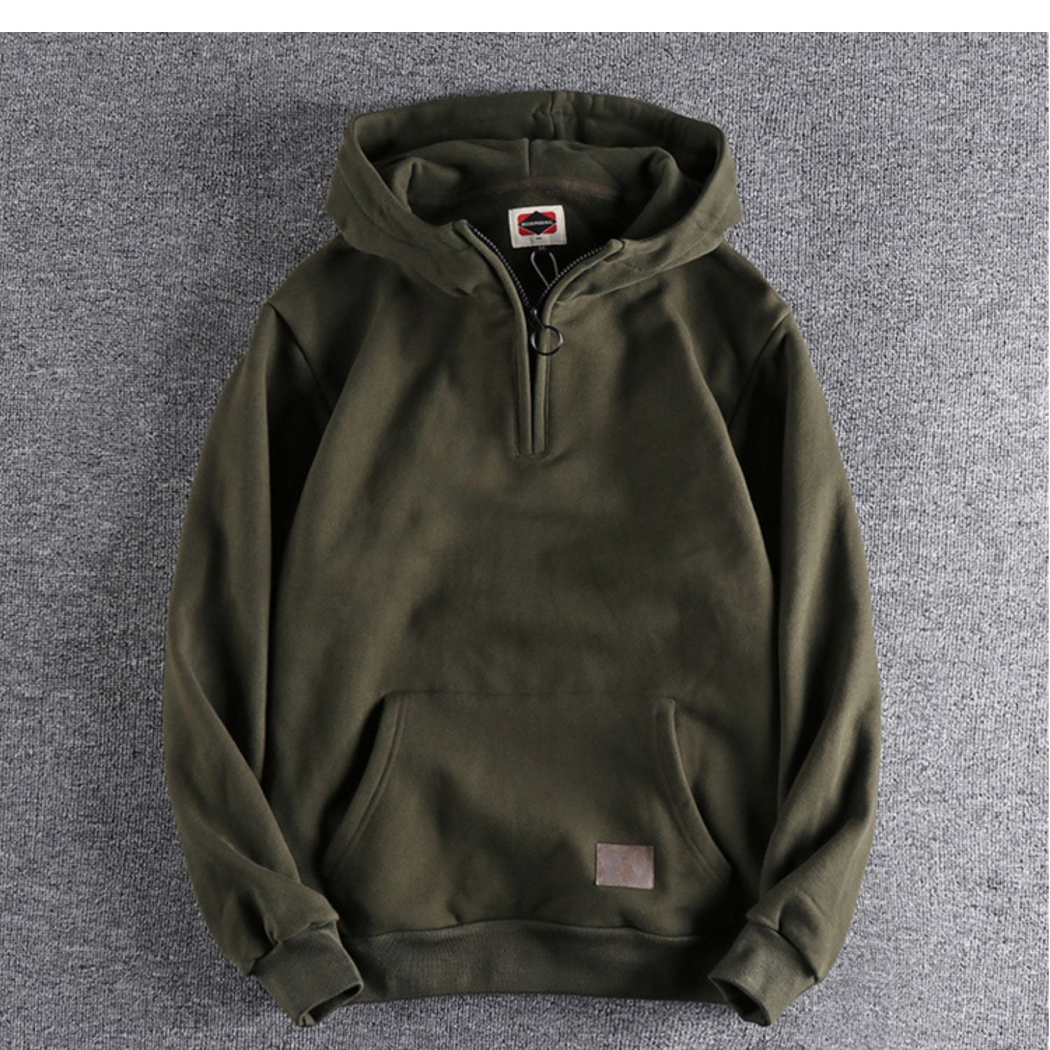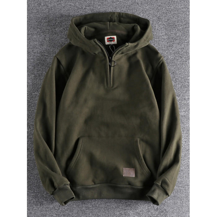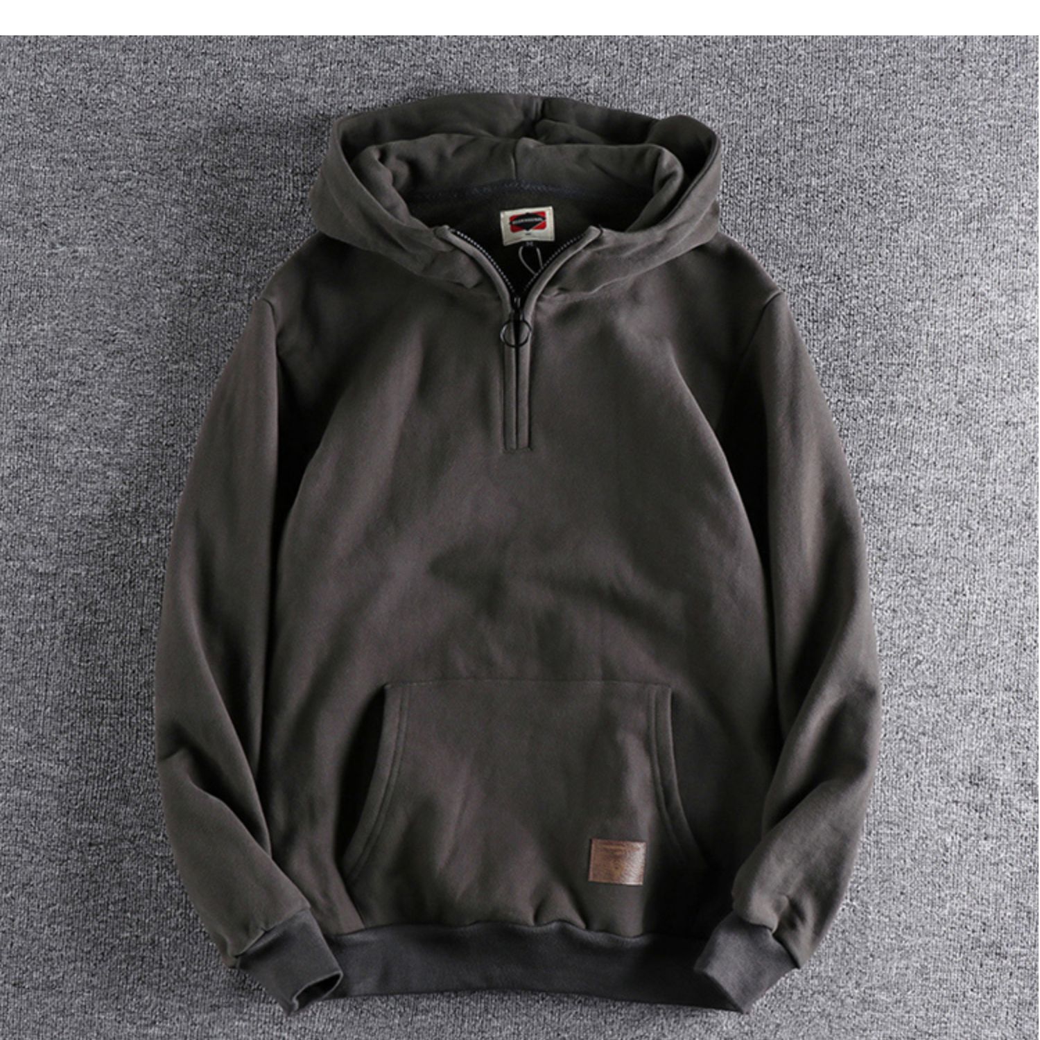 美式復古半開領連帽男士衛衣春秋季做舊潮流加絨加厚青年上衣外套