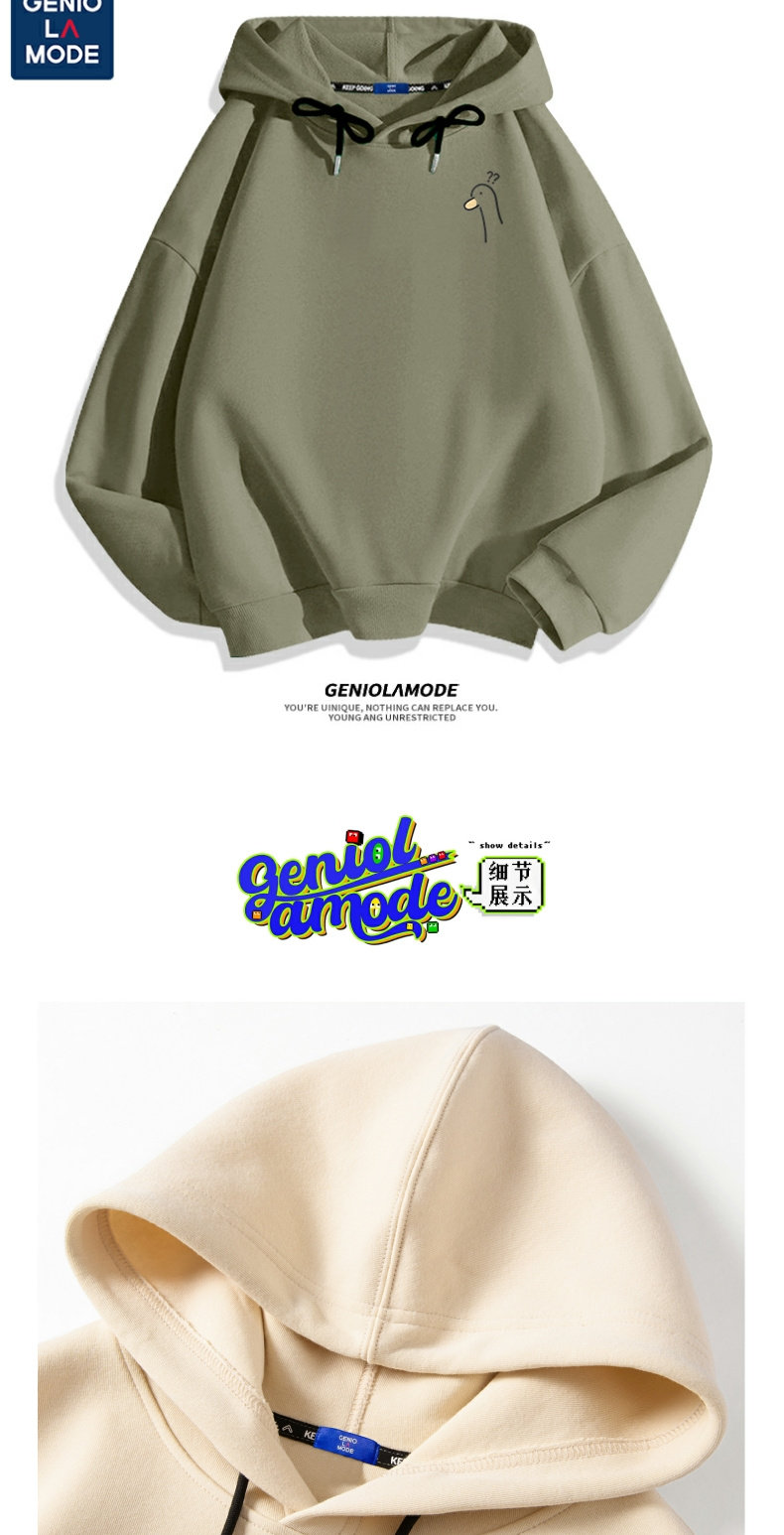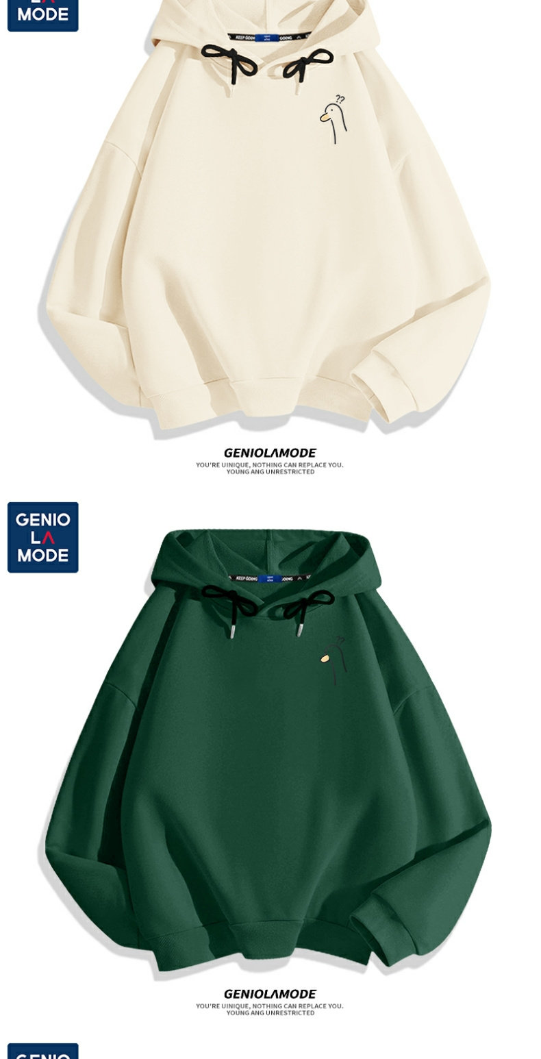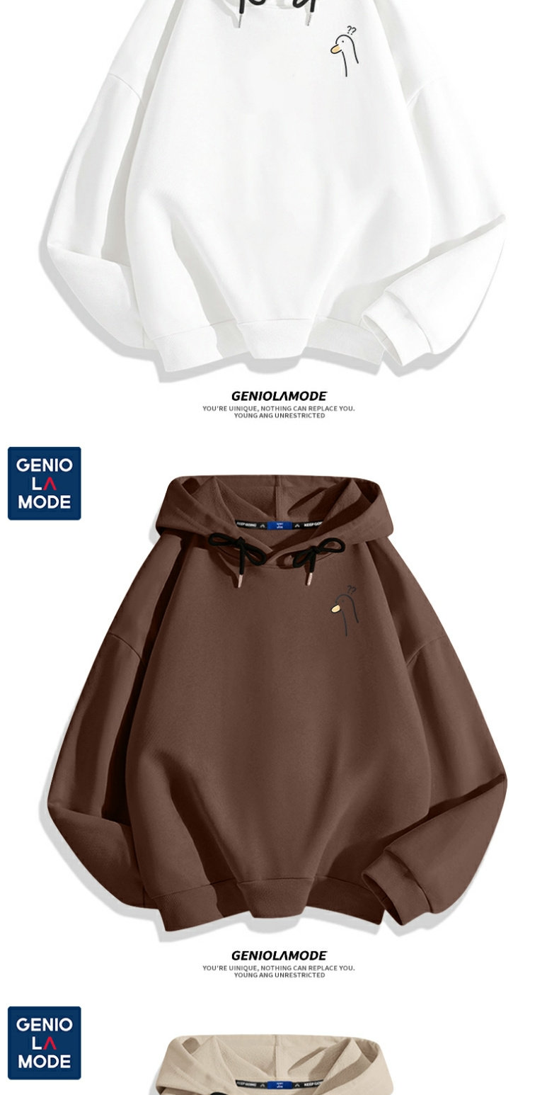 Genio Lamode帶帽衛衣男冬季加絨加厚趣味鴨子外套男士連帽衣服潮