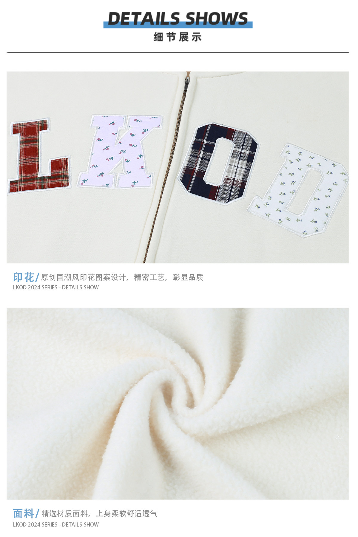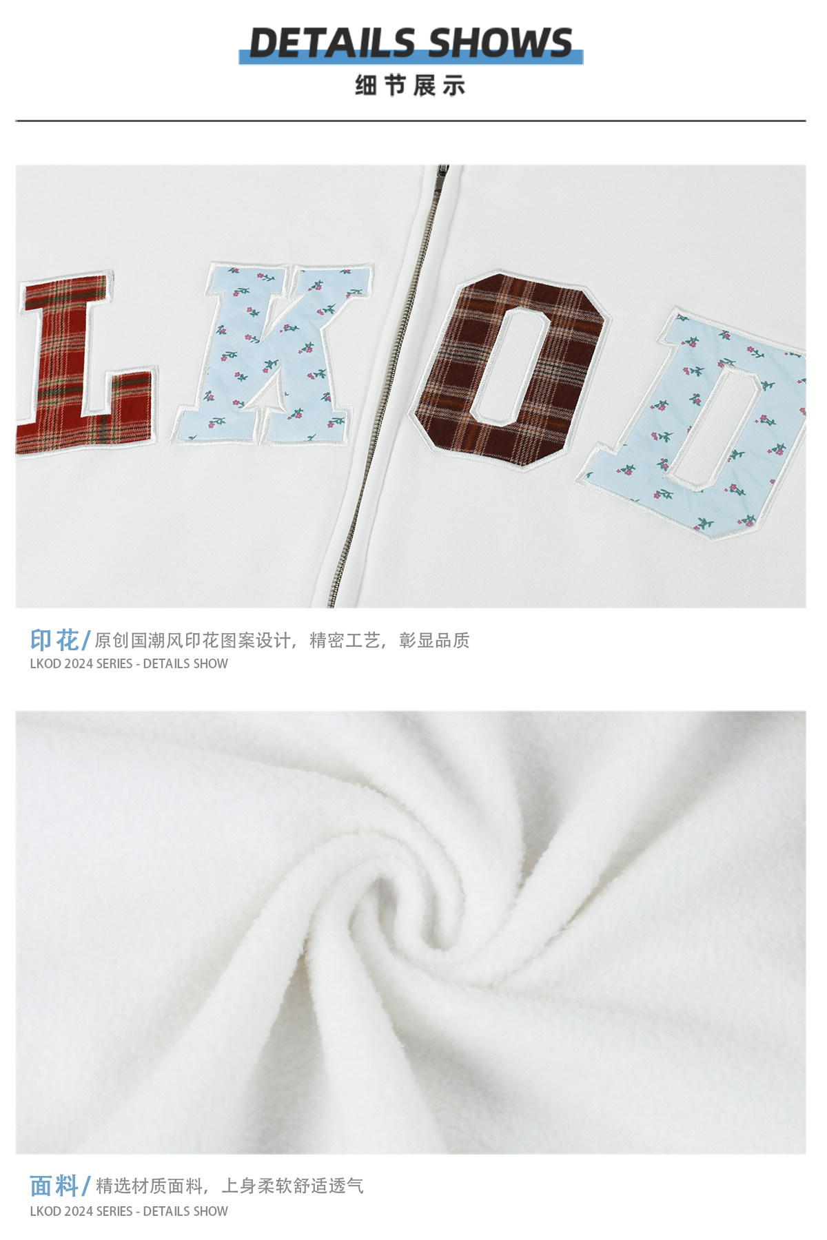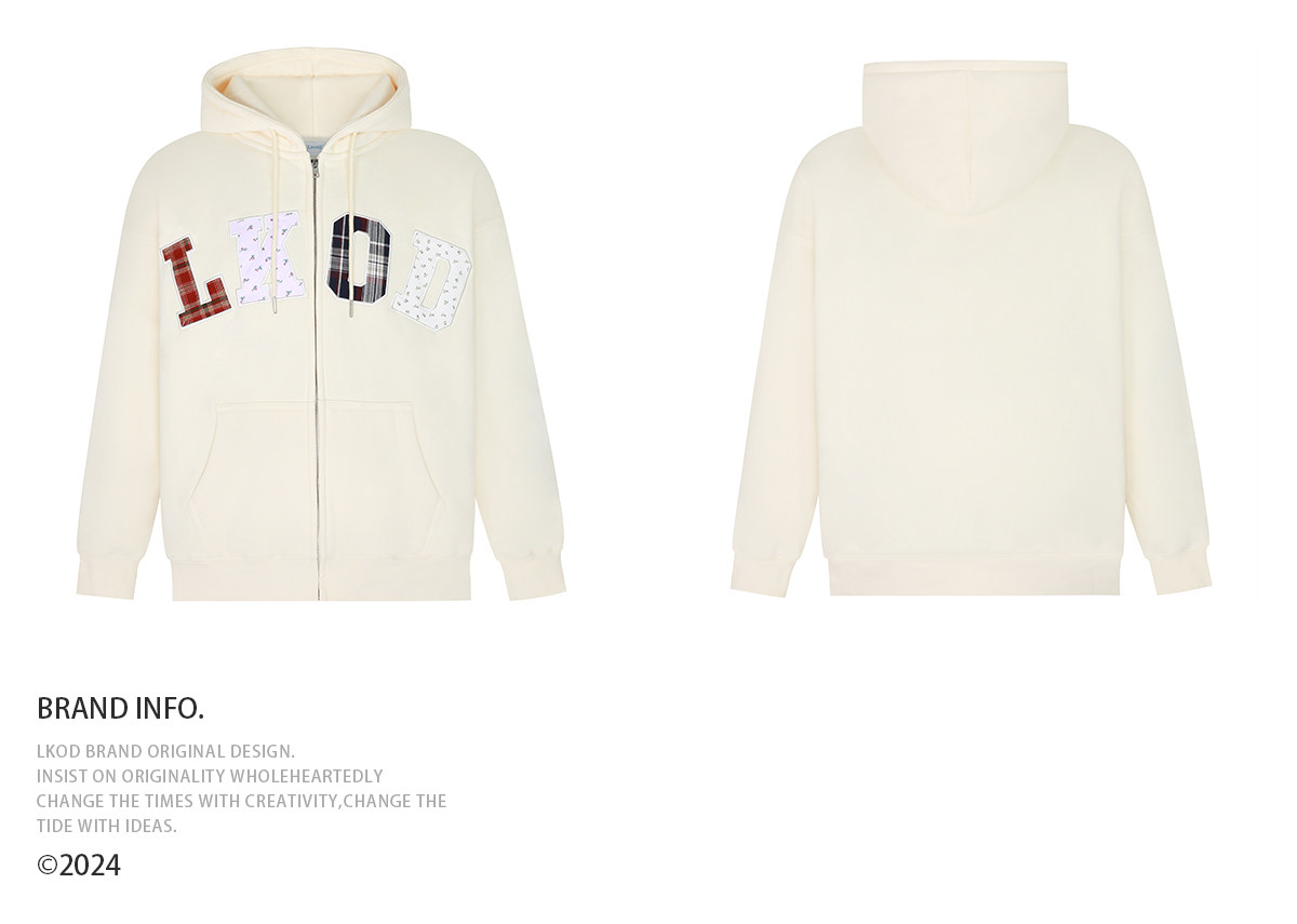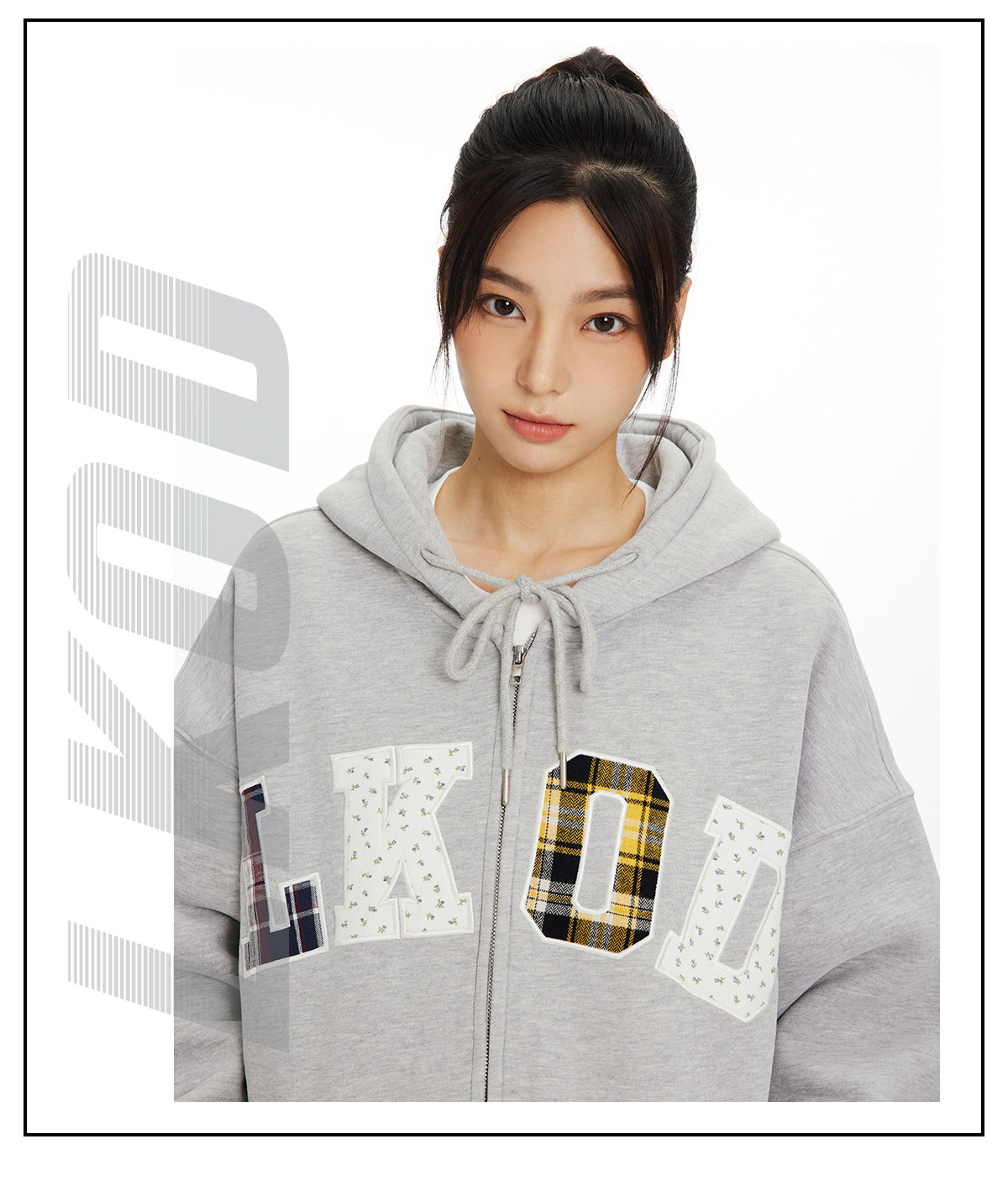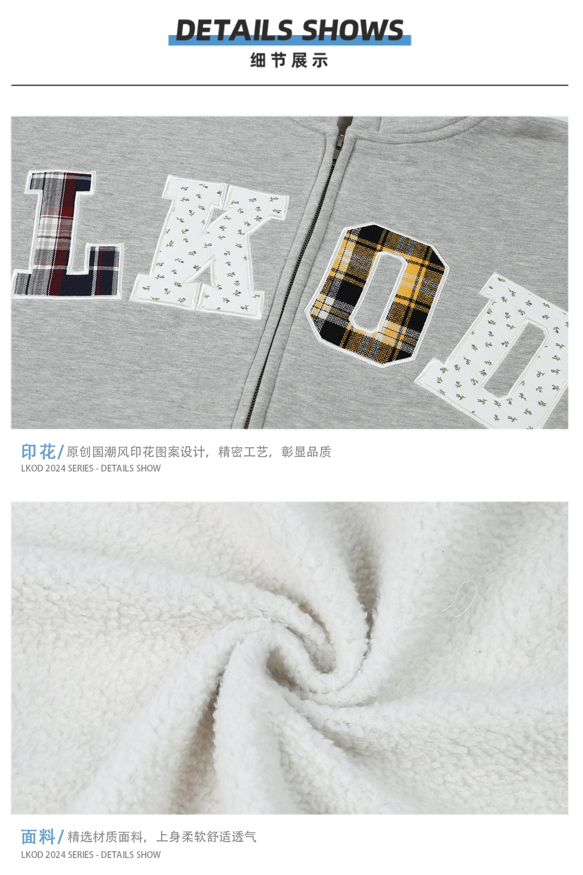LKSTORE LKOD2024秋季新款潮牌格子碎花貼布外套男女同款帽衫長袖