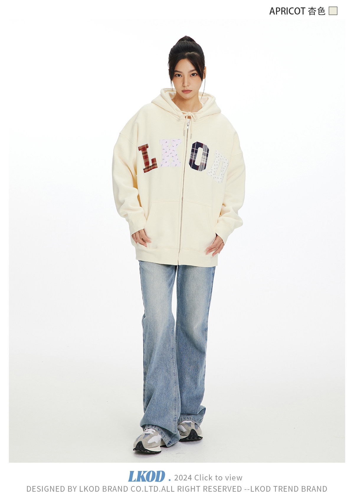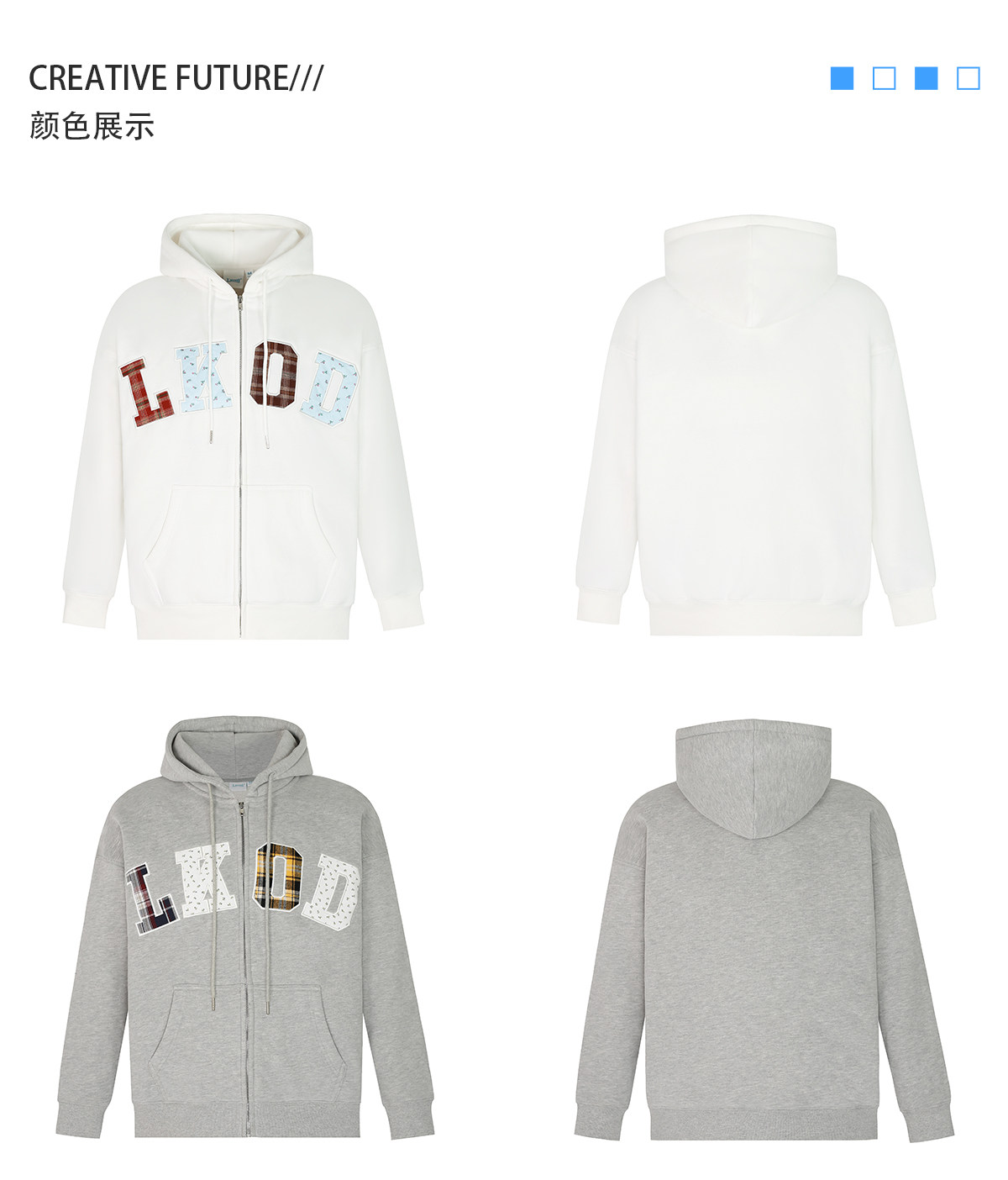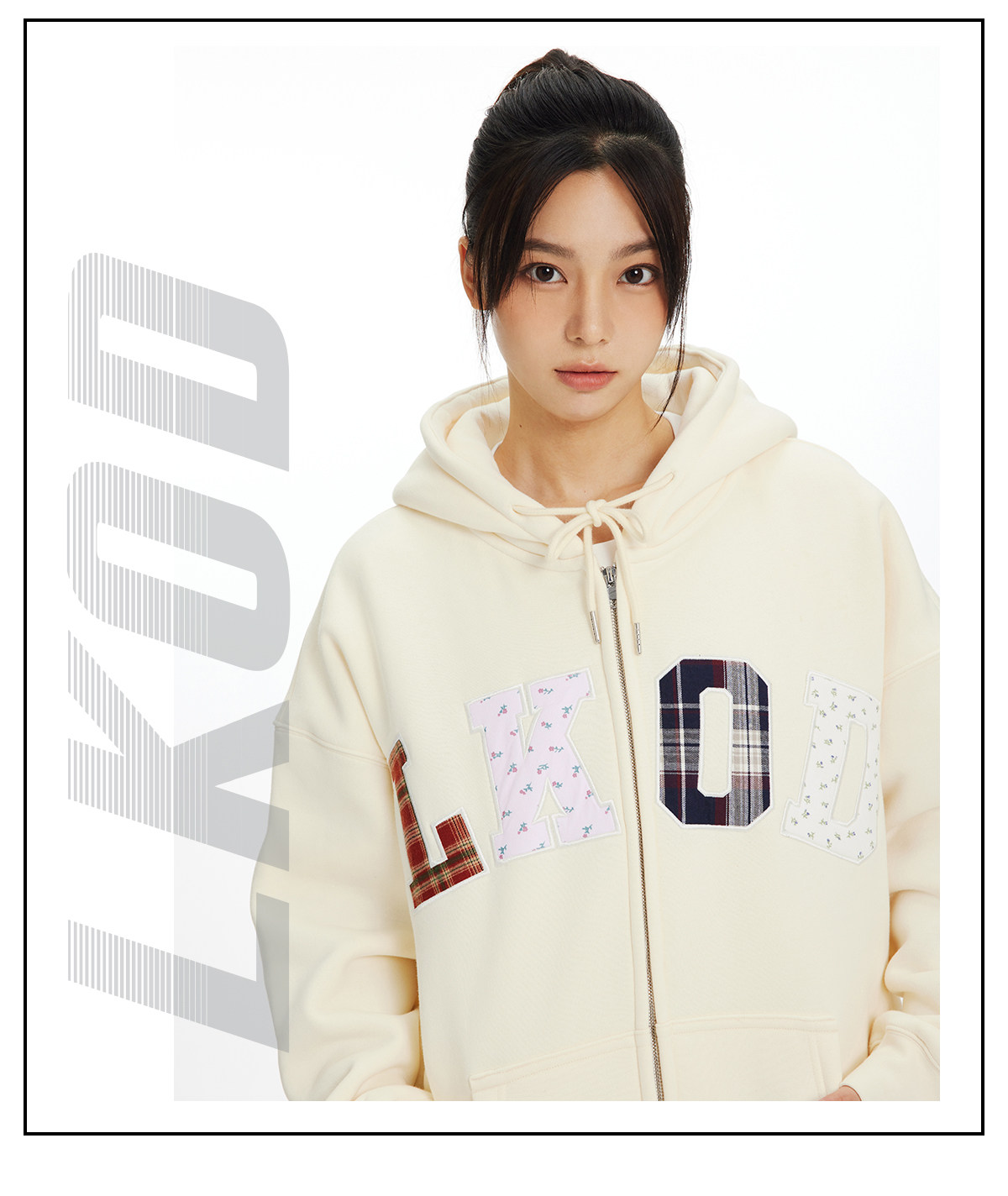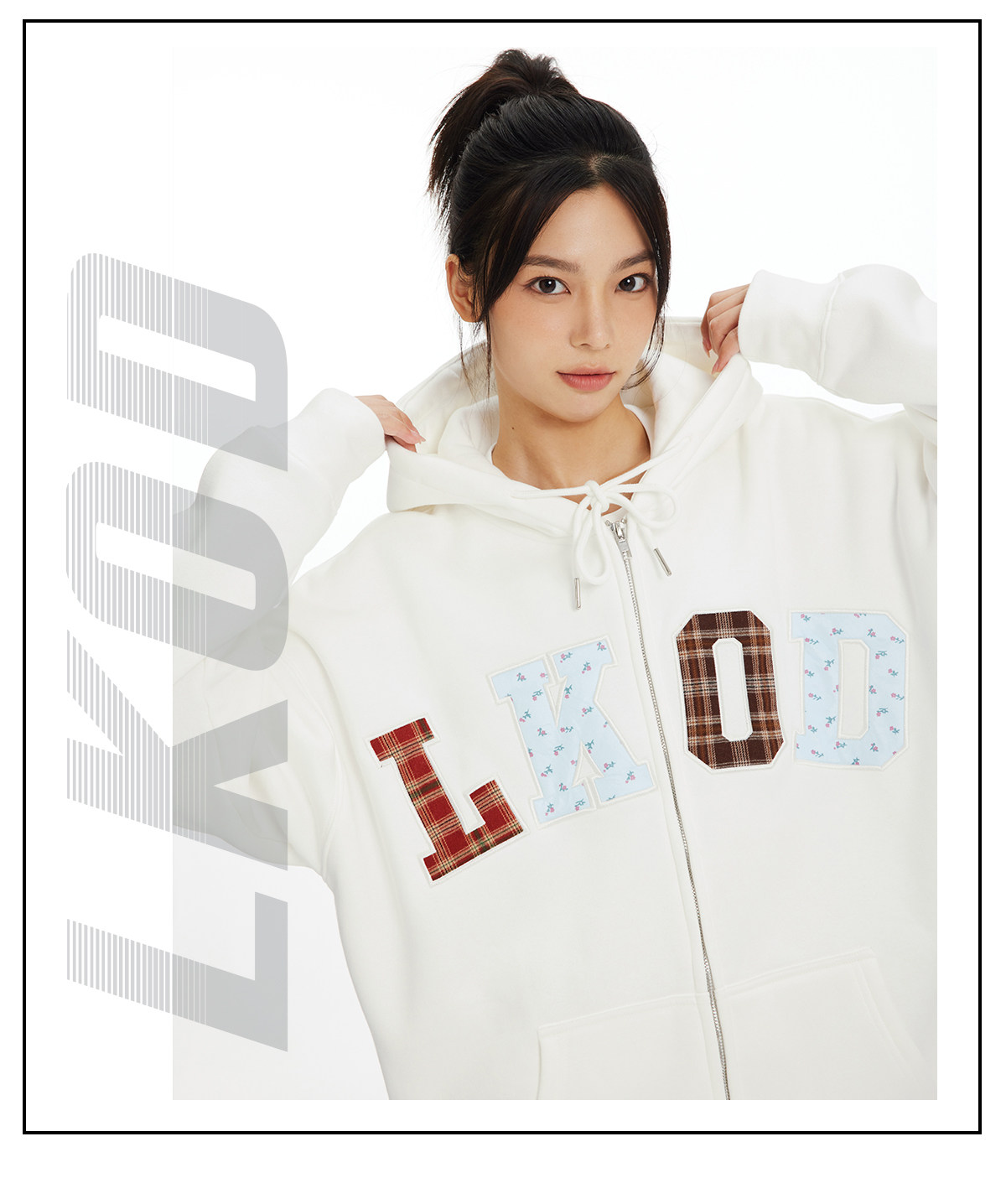 LKSTORE LKOD2024秋季新款潮牌格子碎花貼布外套男女同款帽衫長袖