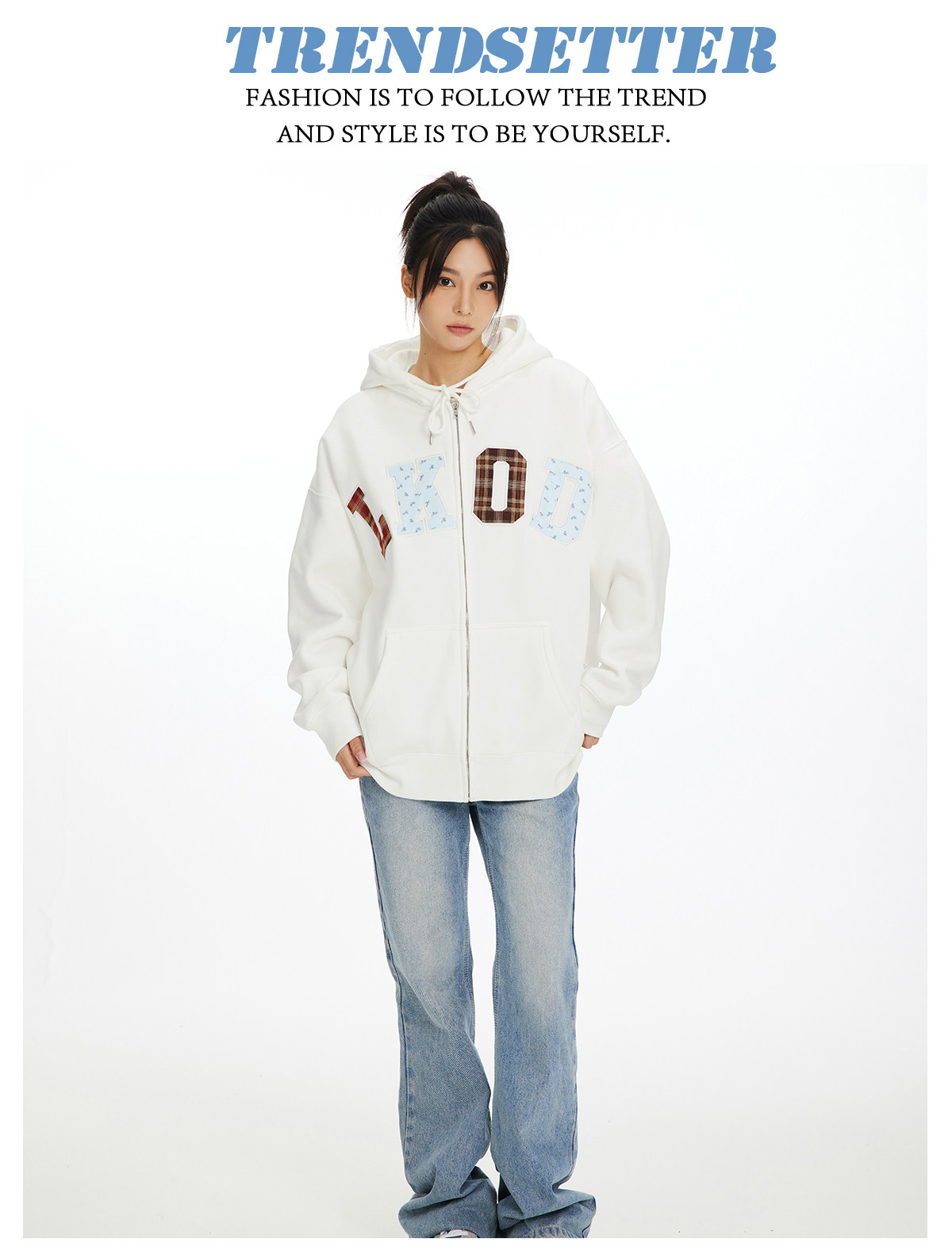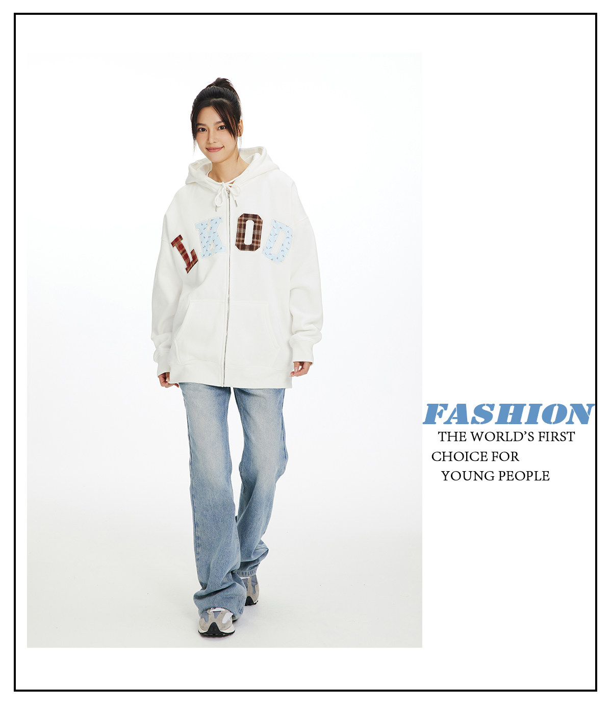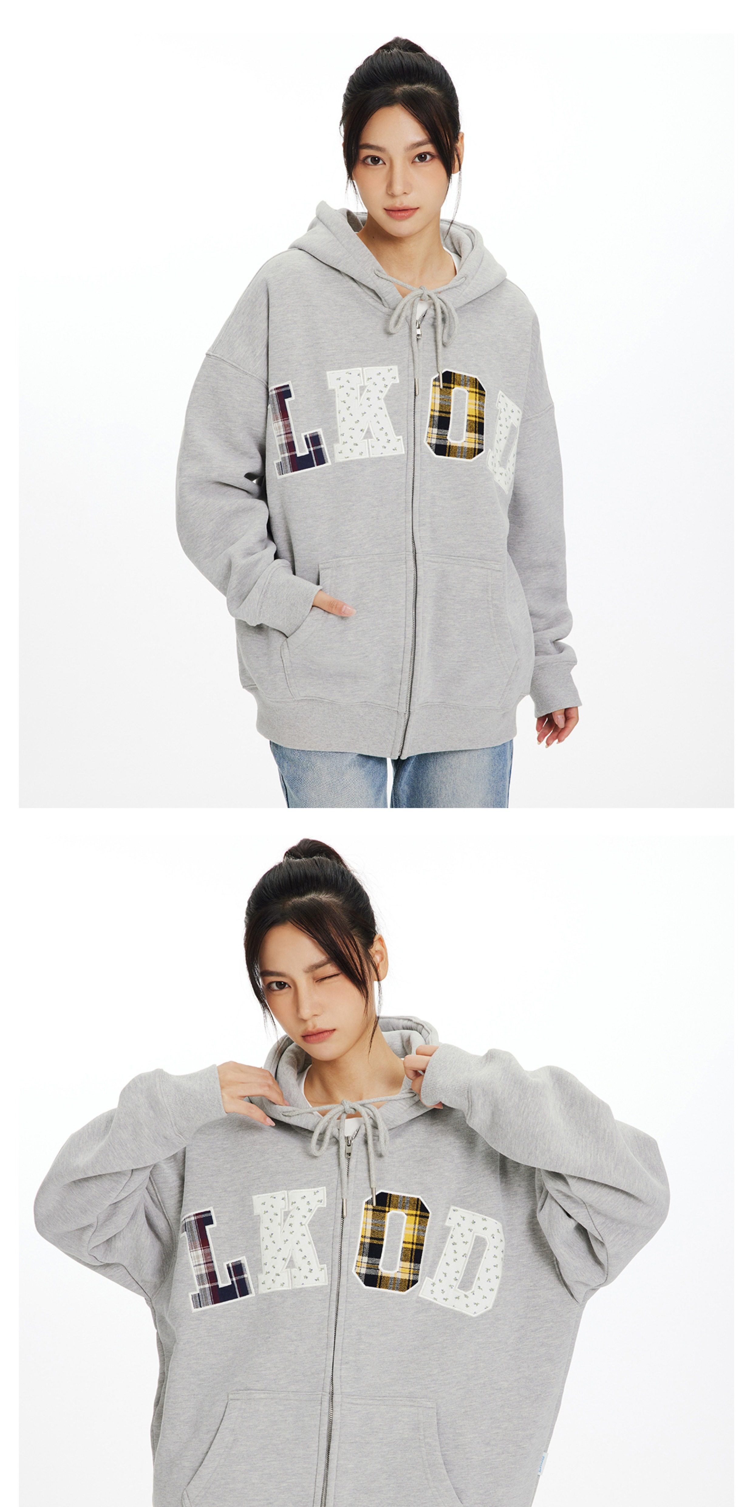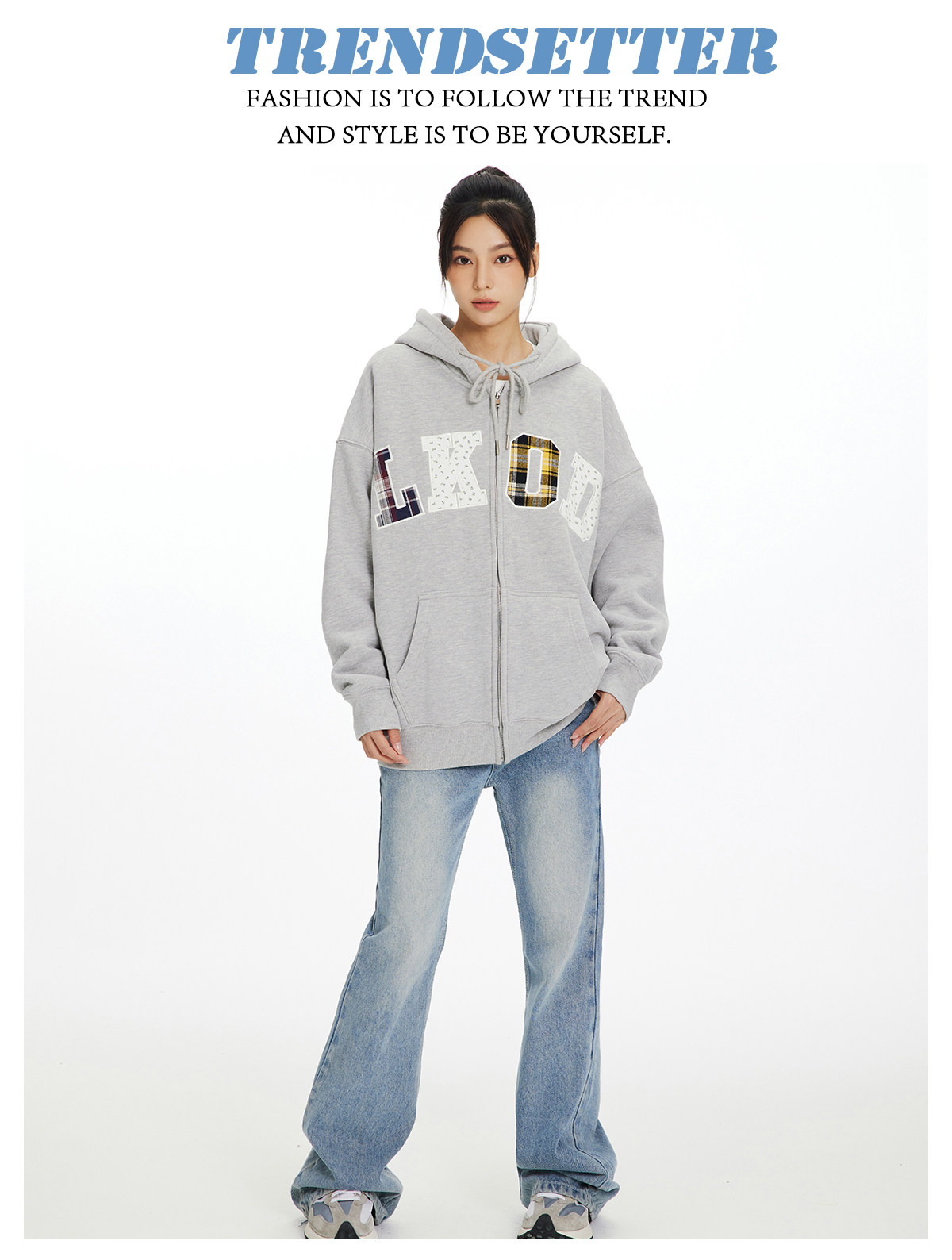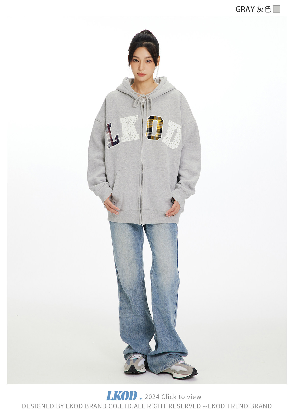 LKSTORE LKOD2024秋季新款潮牌格子碎花貼布外套男女同款帽衫長袖