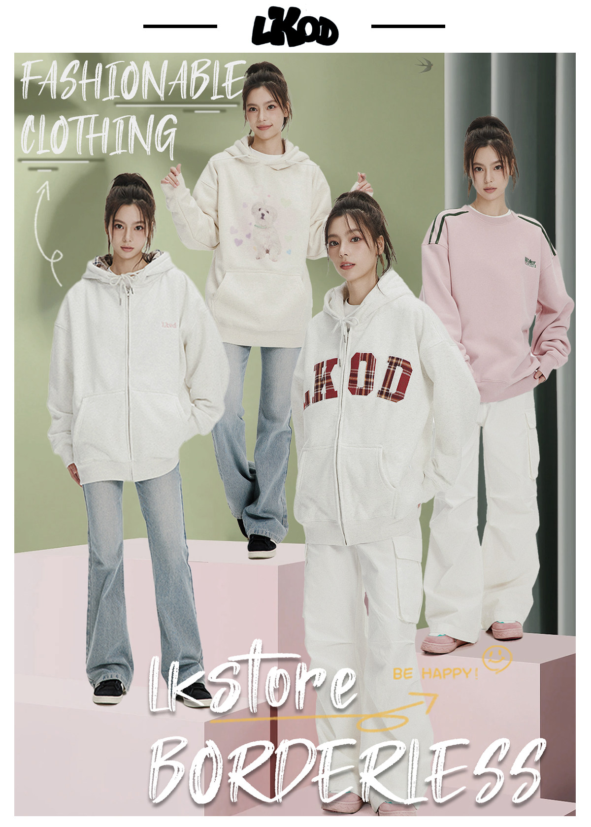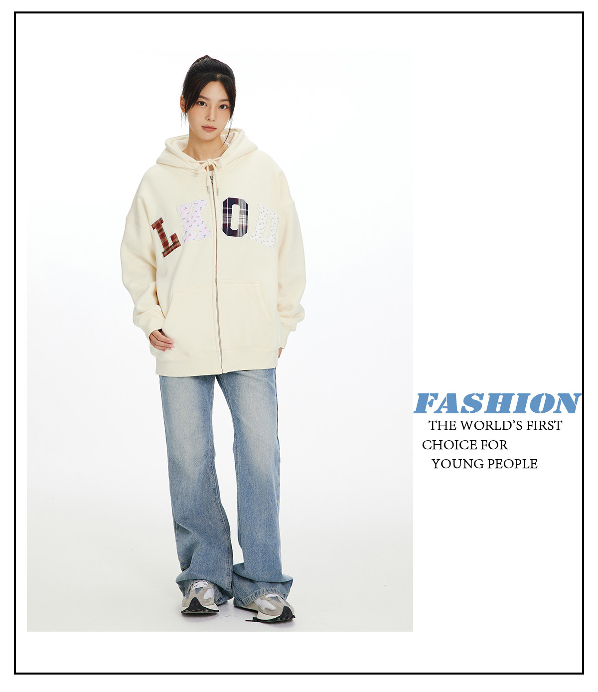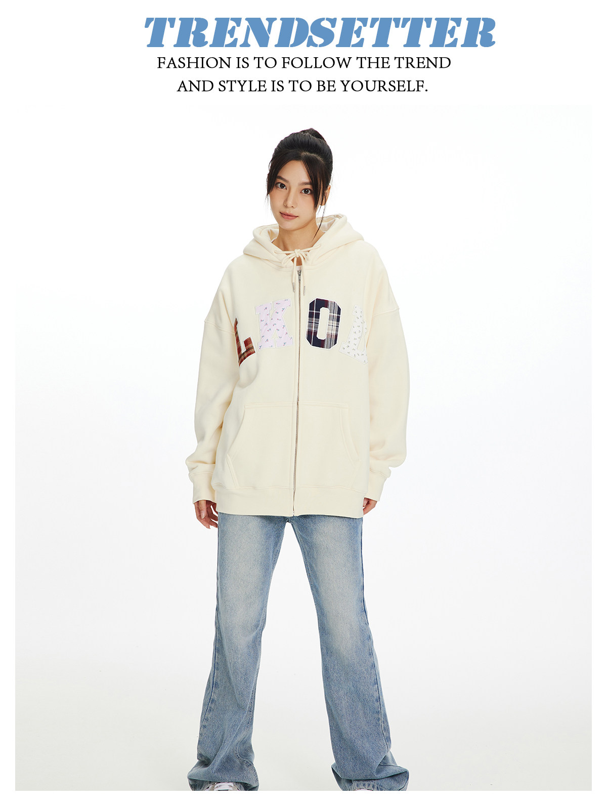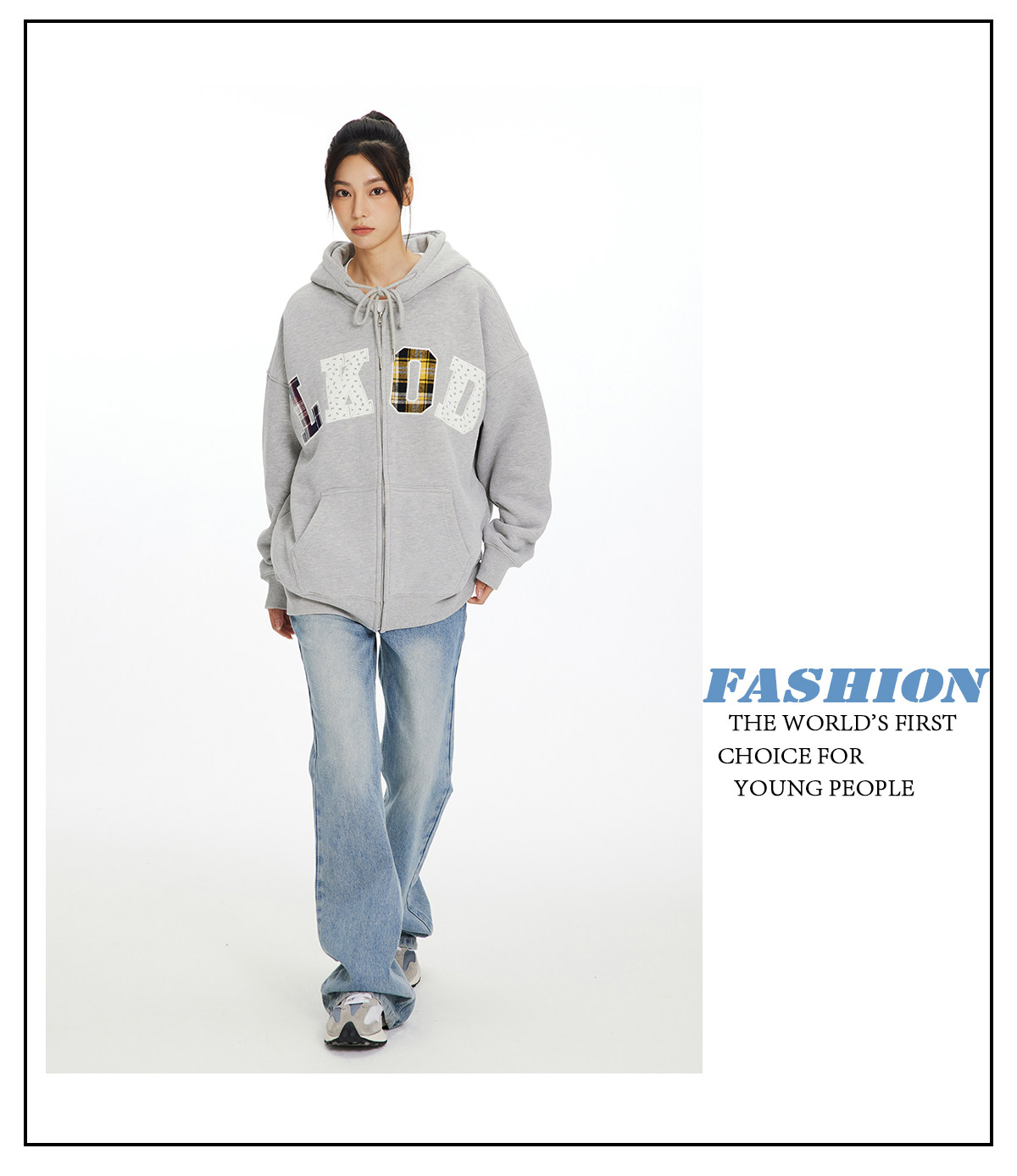 LKSTORE LKOD2024秋季新款潮牌格子碎花貼布外套男女同款帽衫長袖