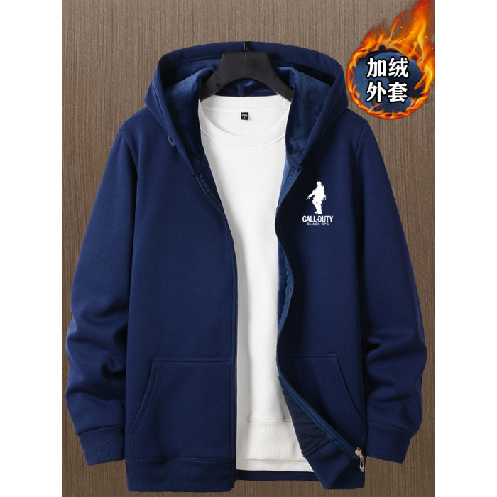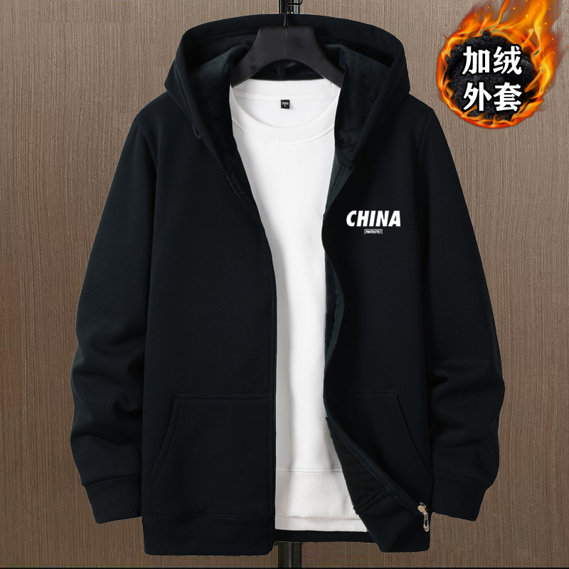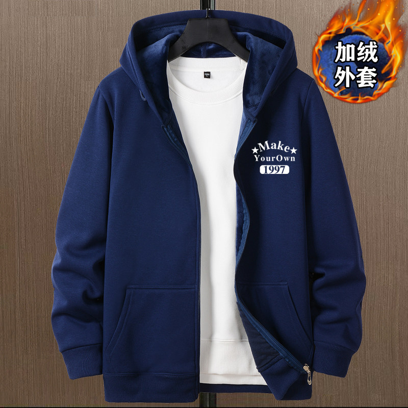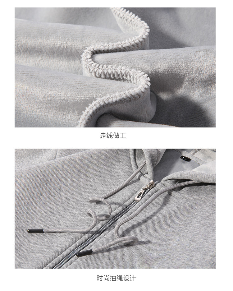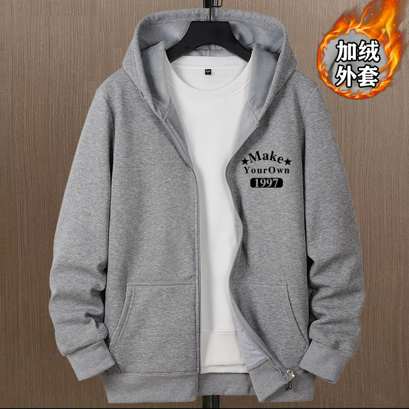 開衫衛衣男秋冬款加絨加厚銀狐絨重磅男生衣服連帽上衣秋冬裝外套