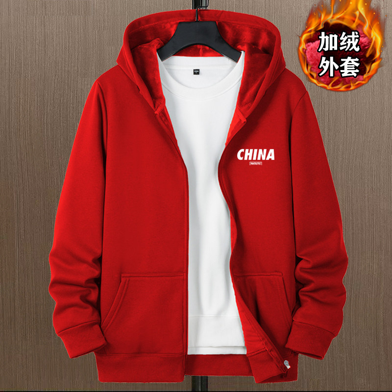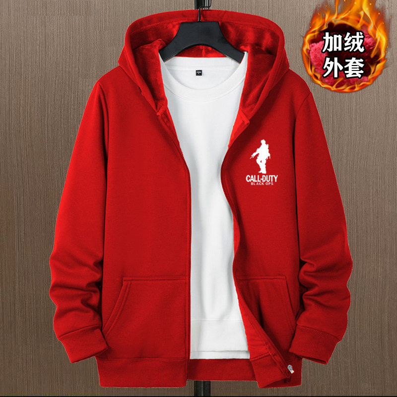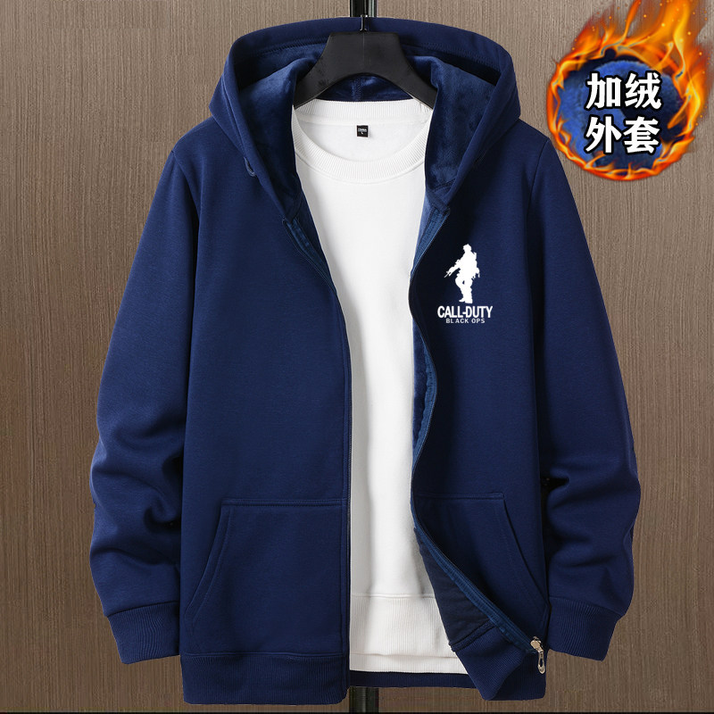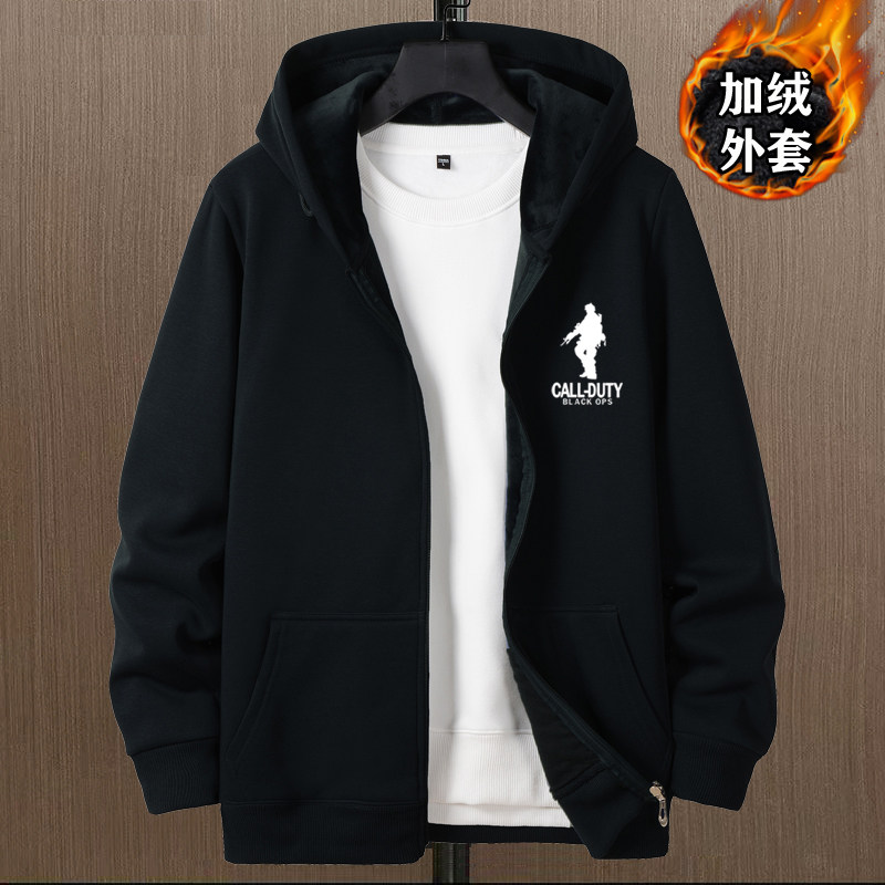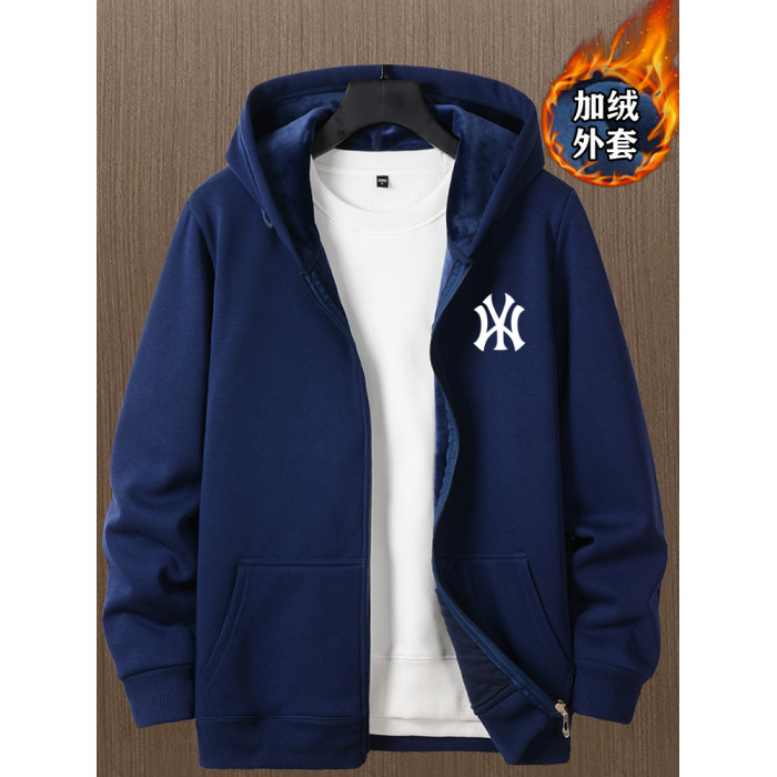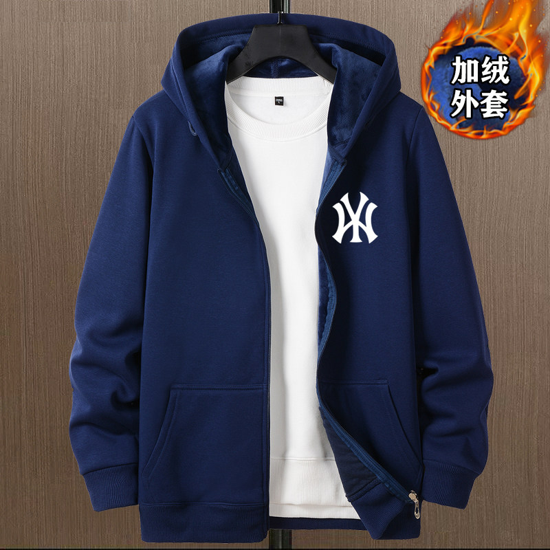 開衫衛衣男秋冬款加絨加厚銀狐絨重磅男生衣服連帽上衣秋冬裝外套