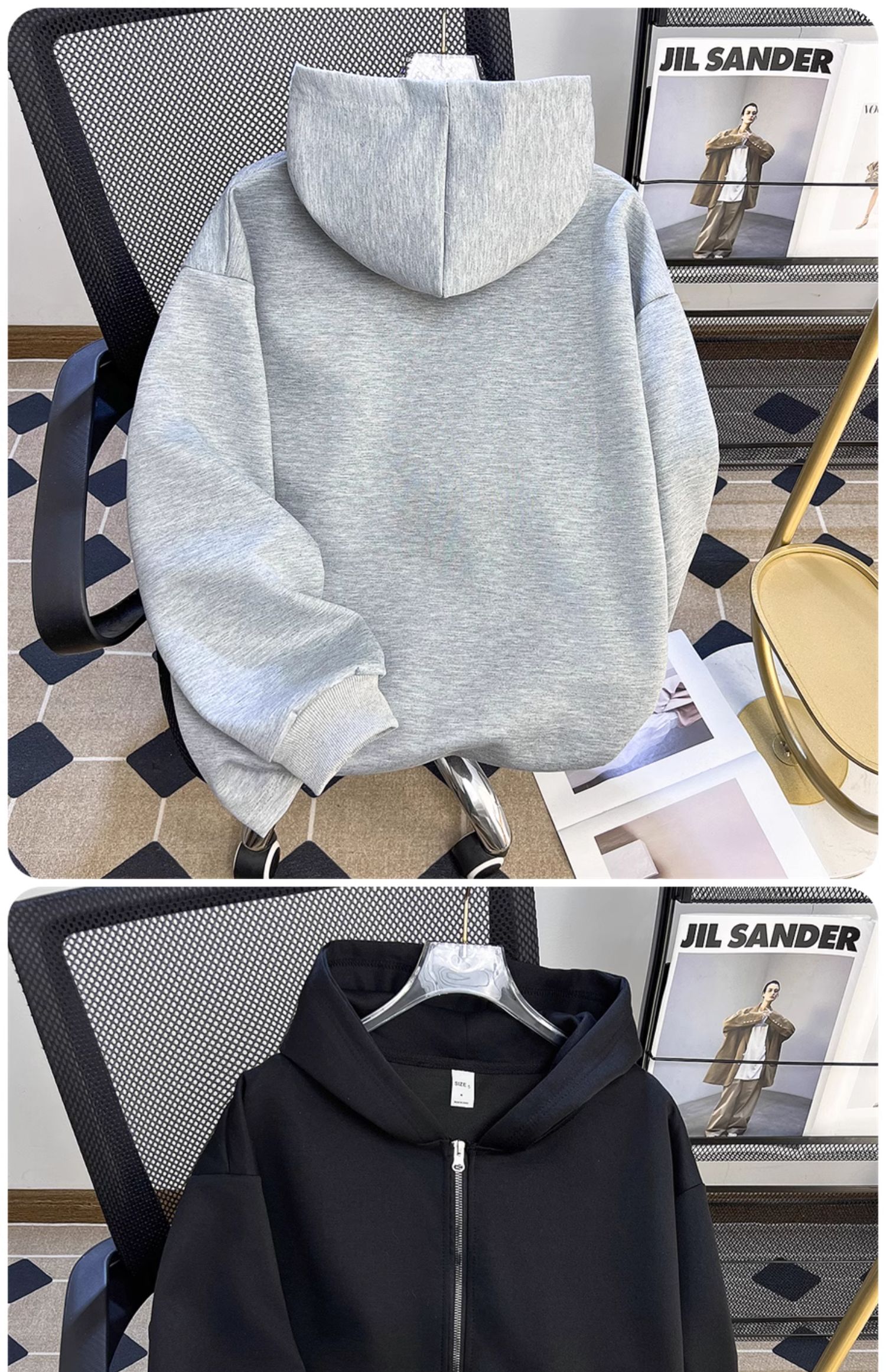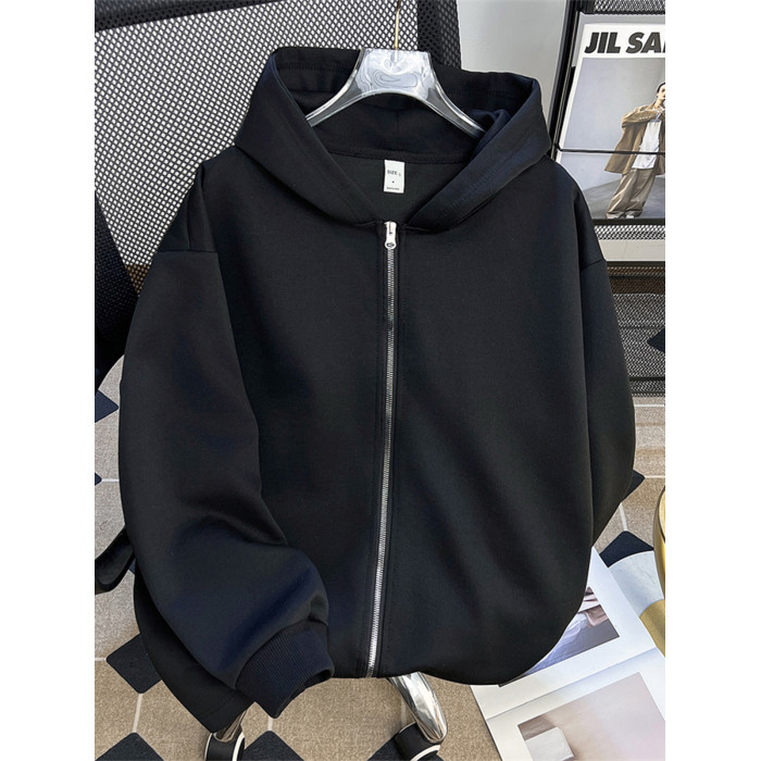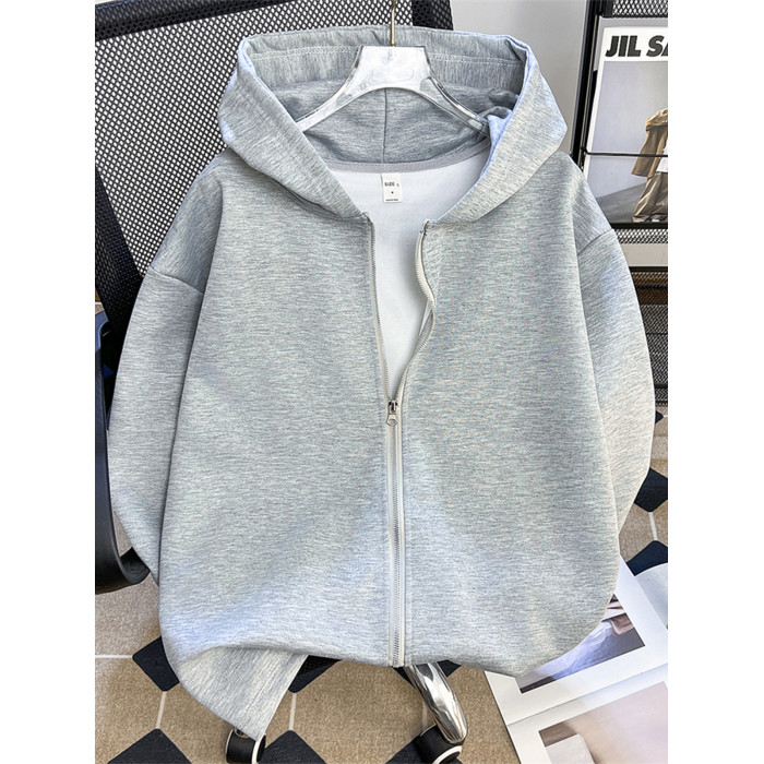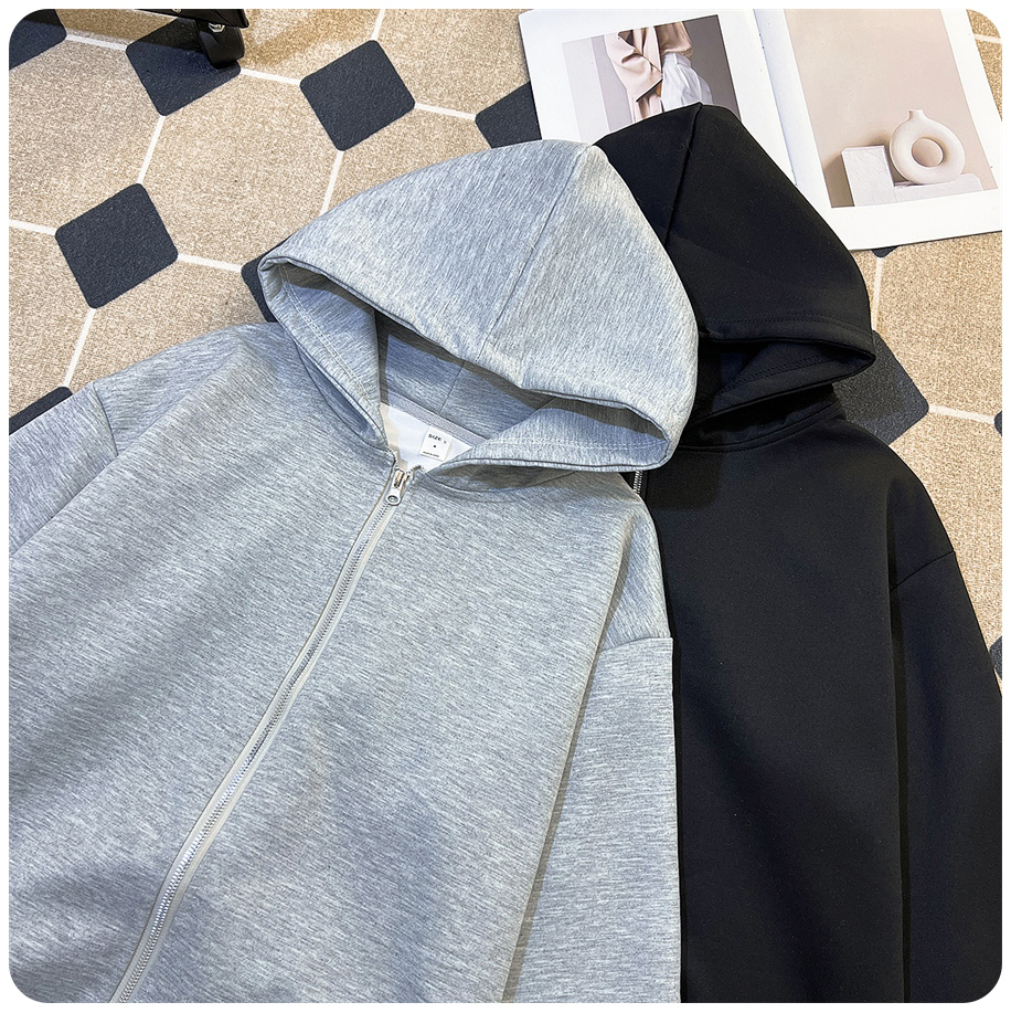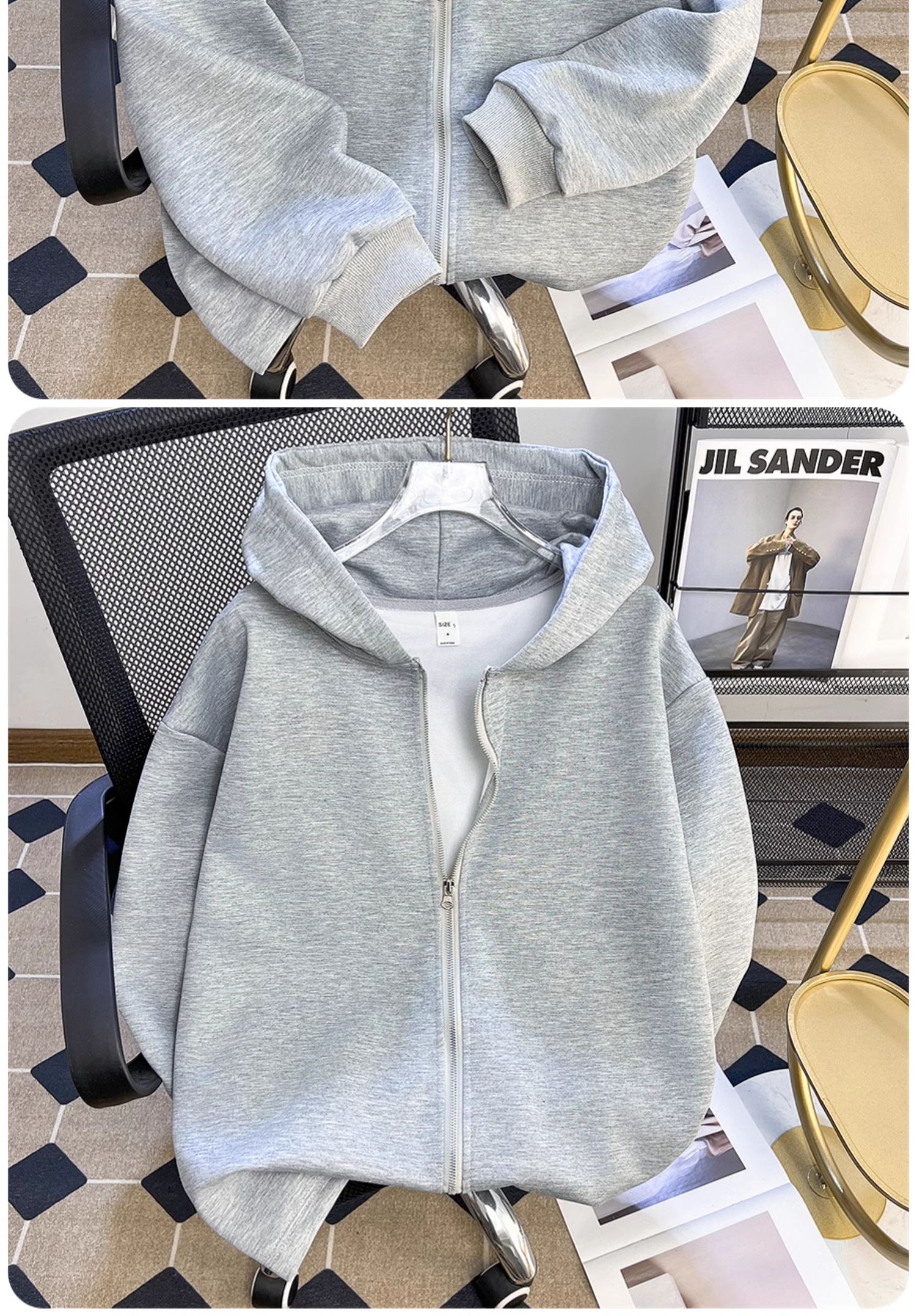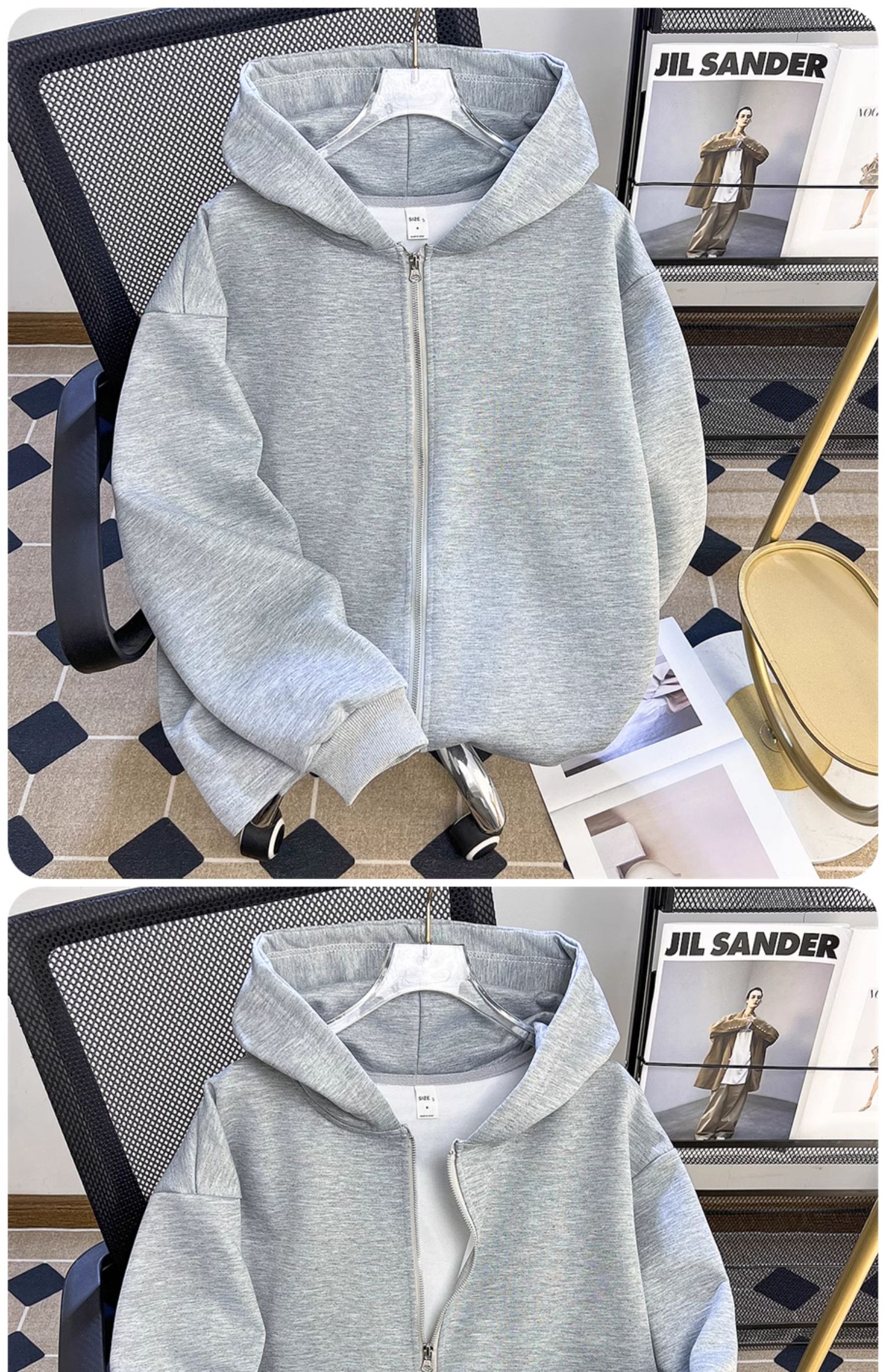 灰色雙拉鍊開衫衛衣男士春秋季高級感cleanfit外套重磅潮牌連帽衫
