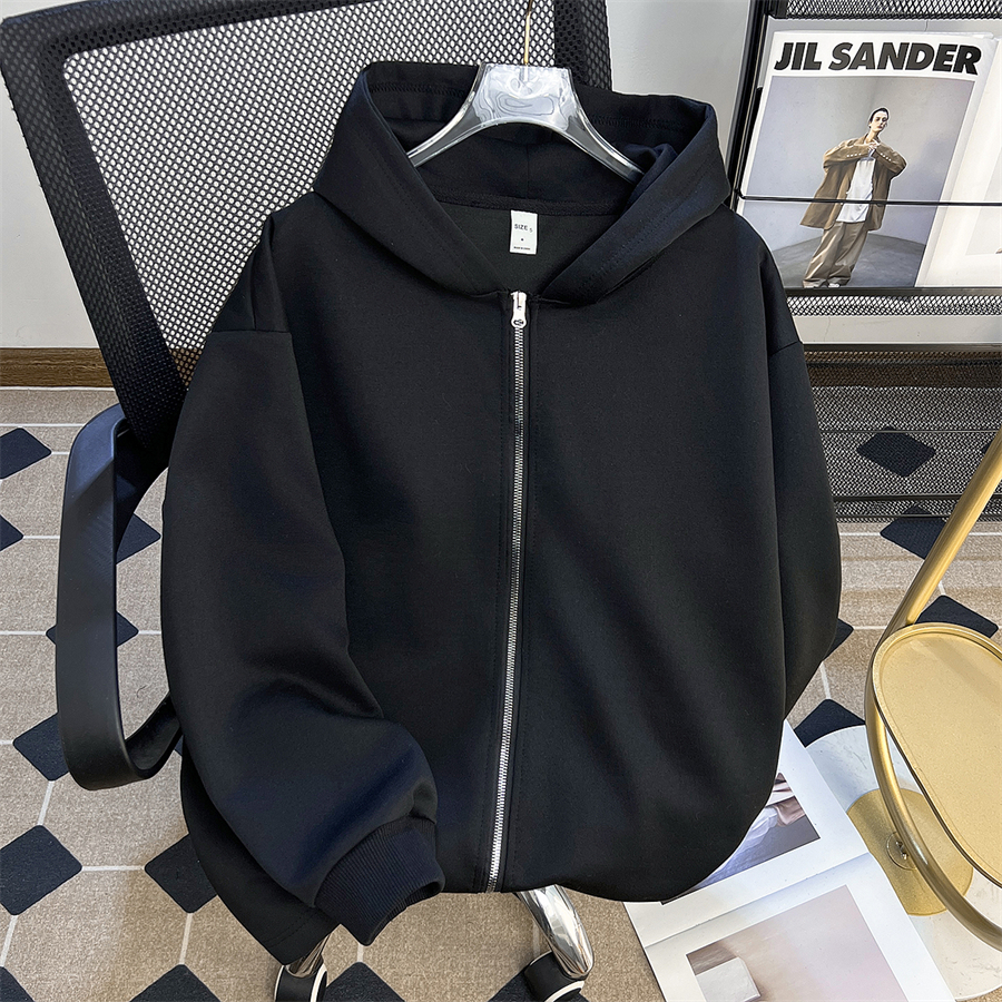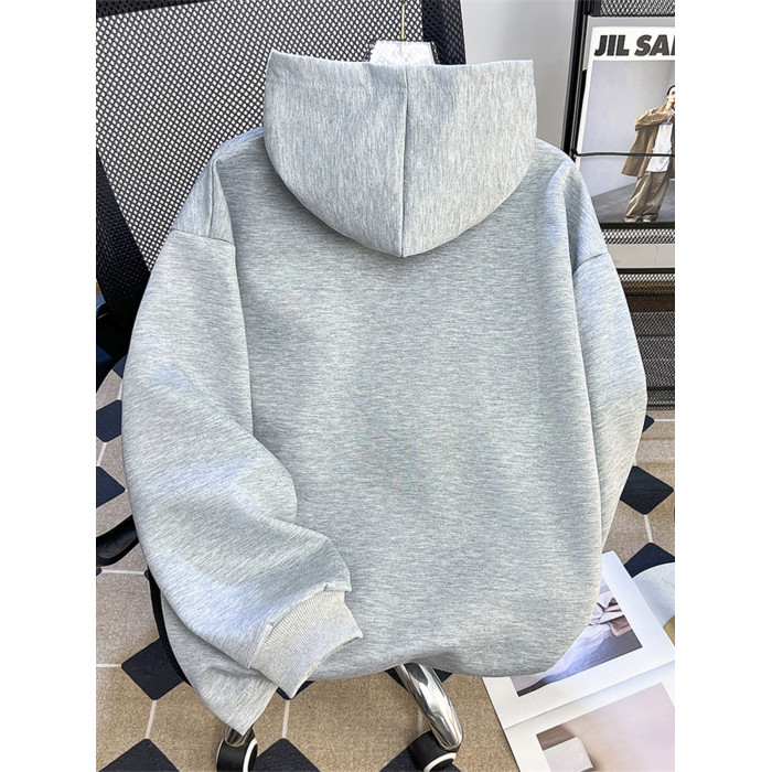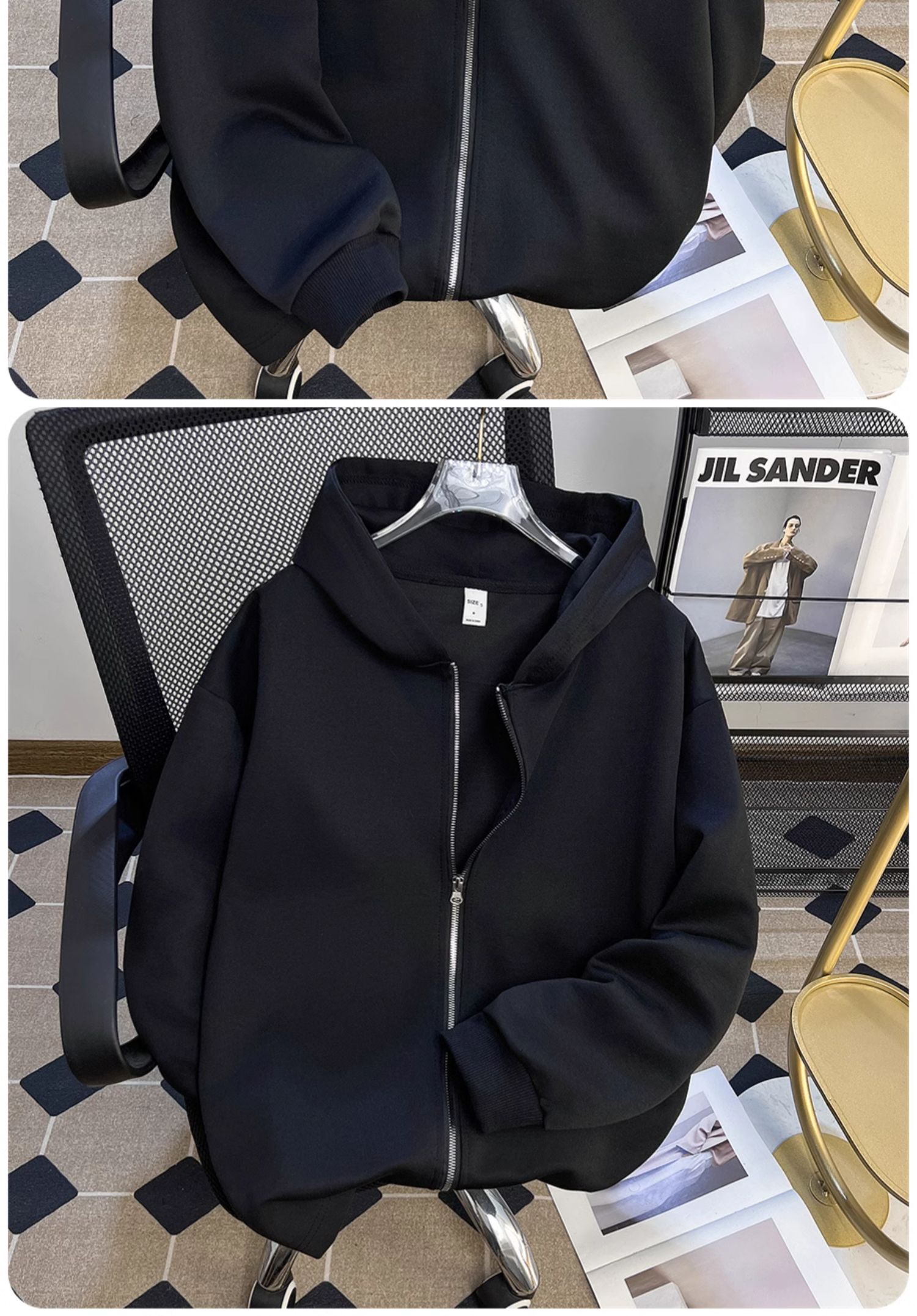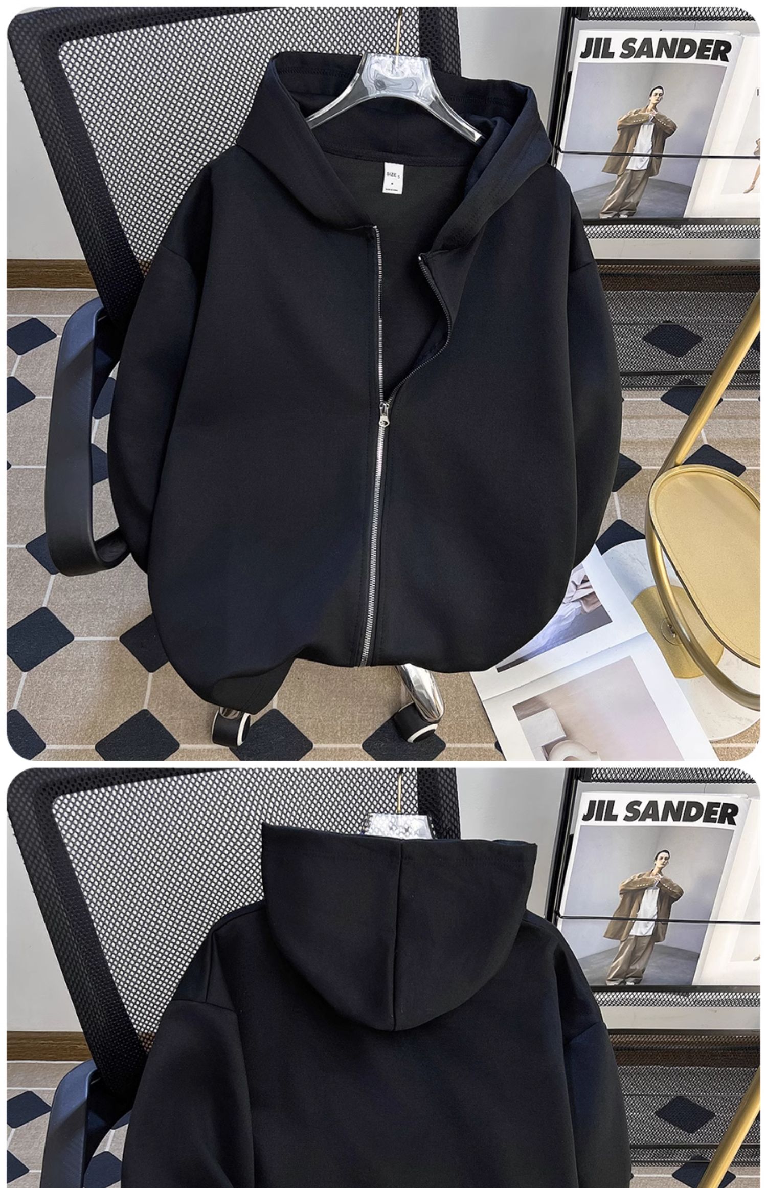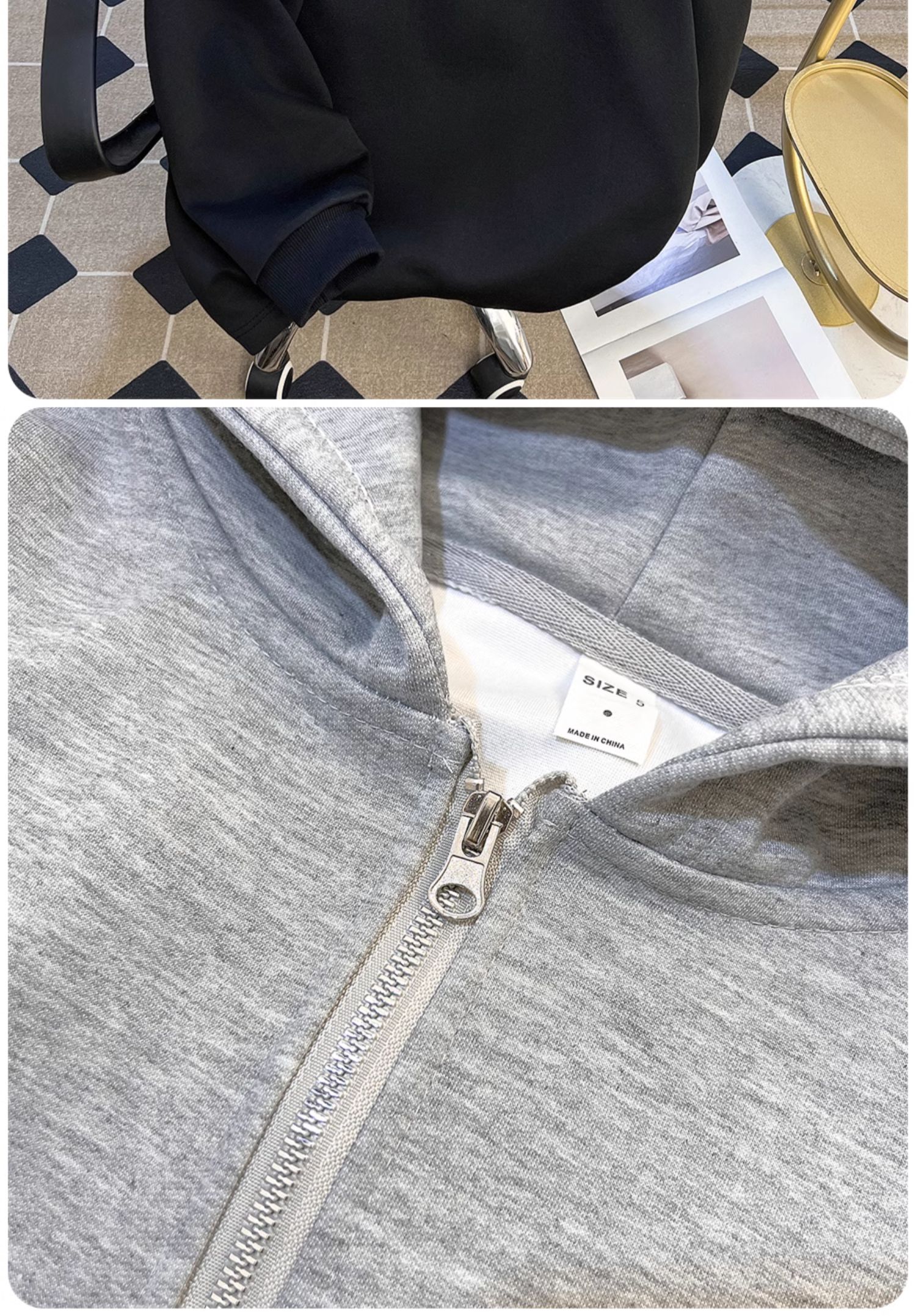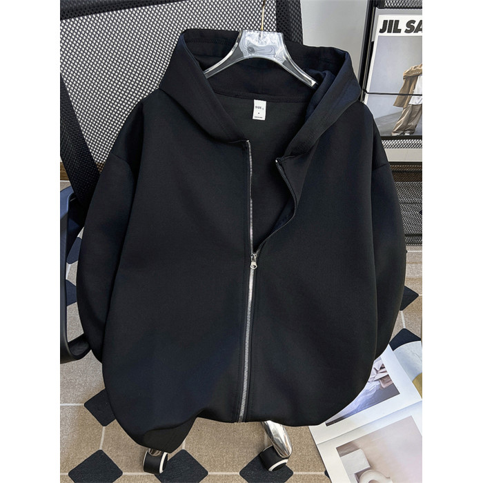 灰色雙拉鍊開衫衛衣男士春秋季高級感cleanfit外套重磅潮牌連帽衫