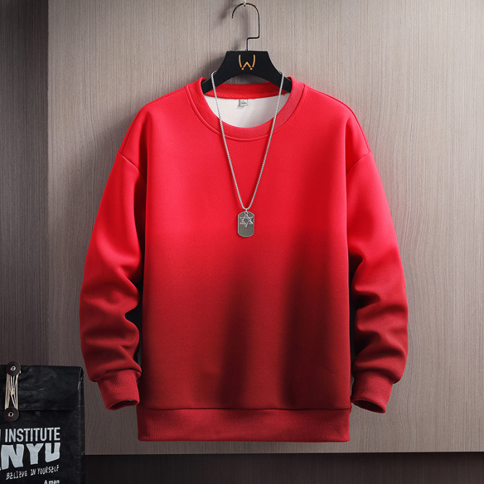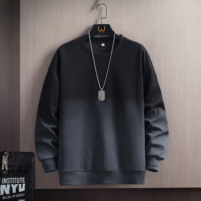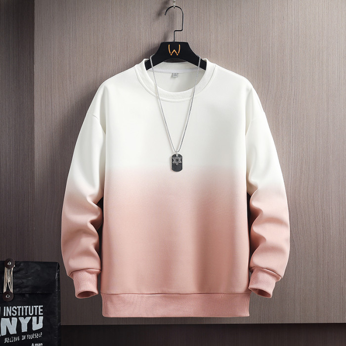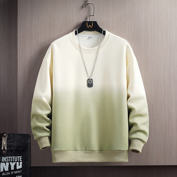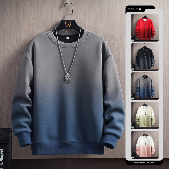 漸變色重磅衛衣男生春秋款圓領長袖t恤青少年休閒寬松秋衣打底衫