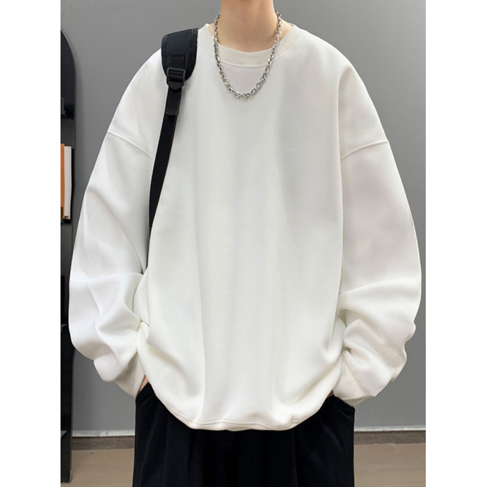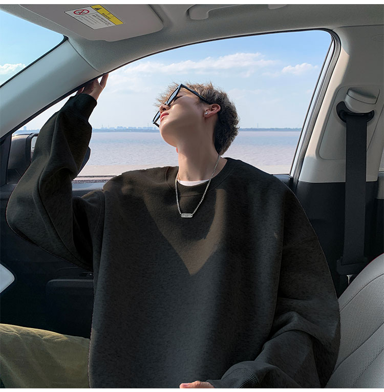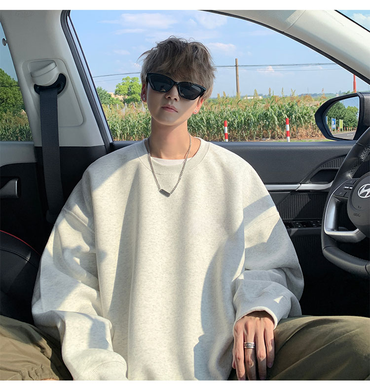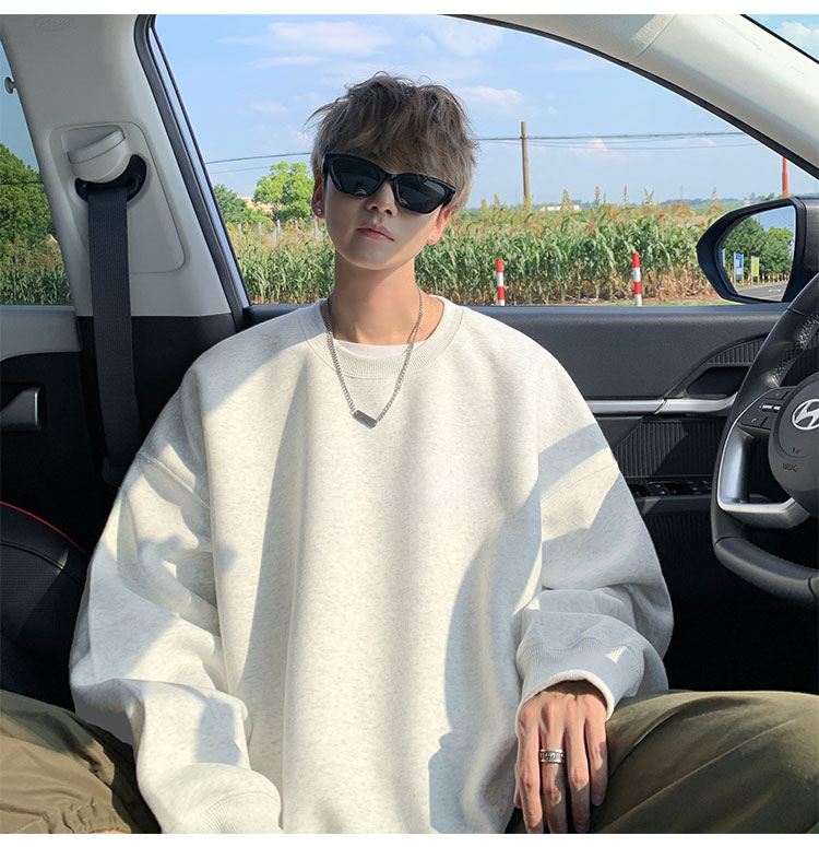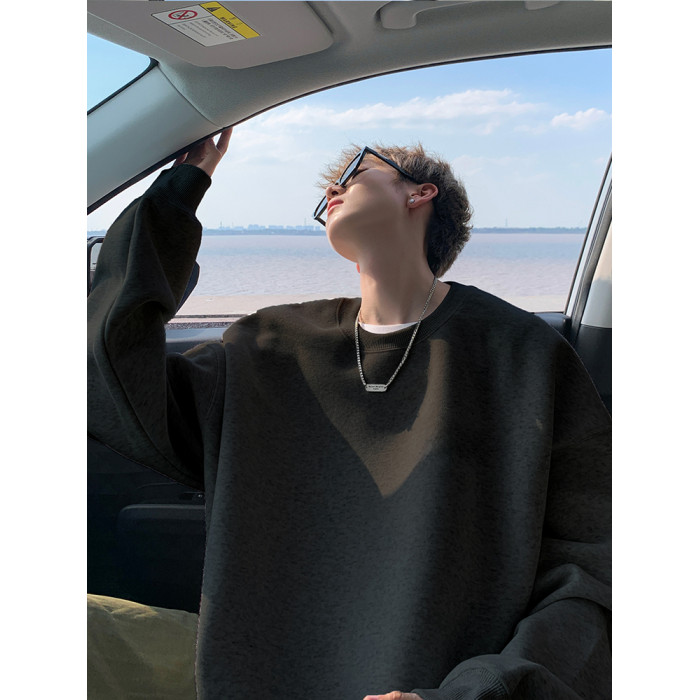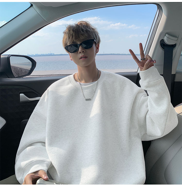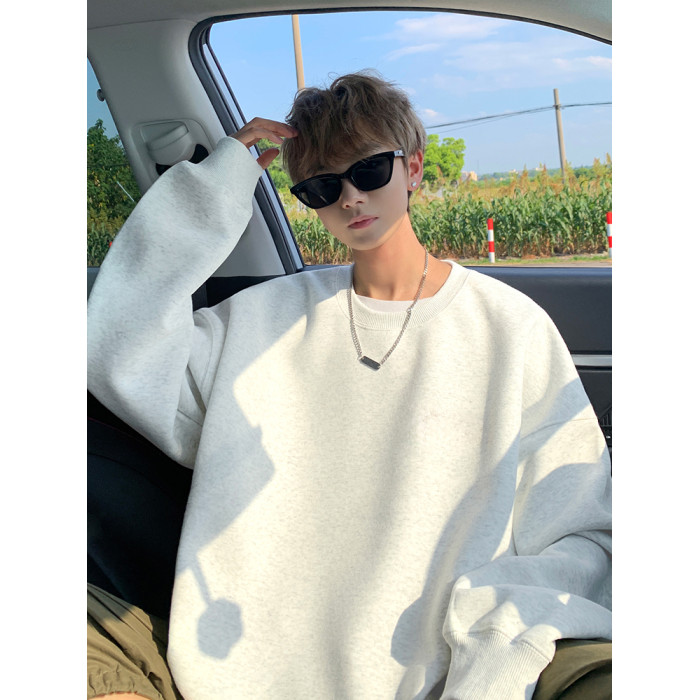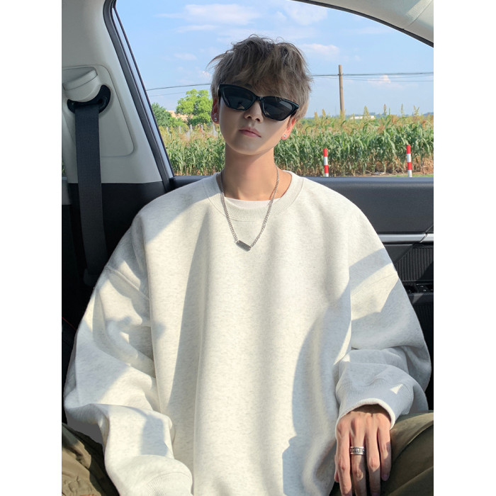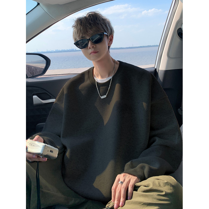 純色圓領衛衣男士春秋款2025新款重磅潮牌美式青少年寬松外套潮牌