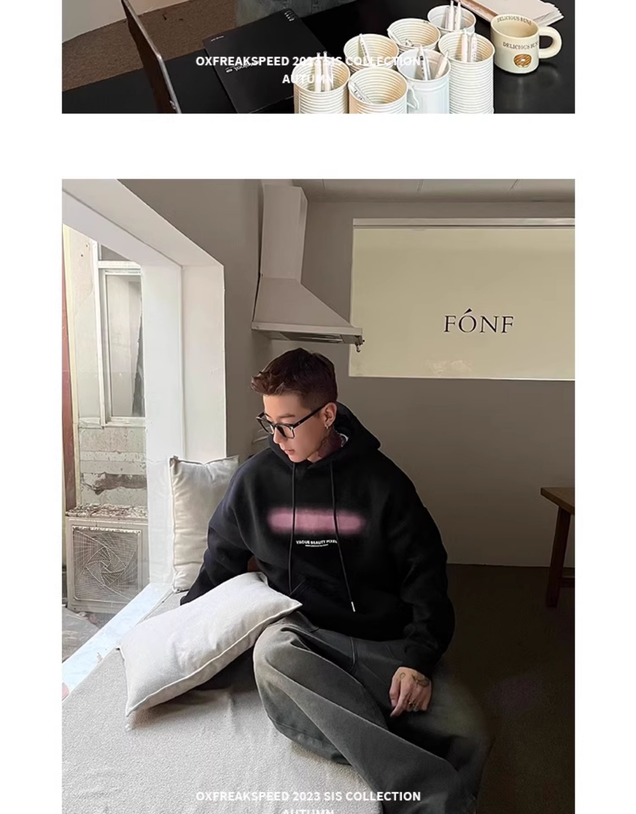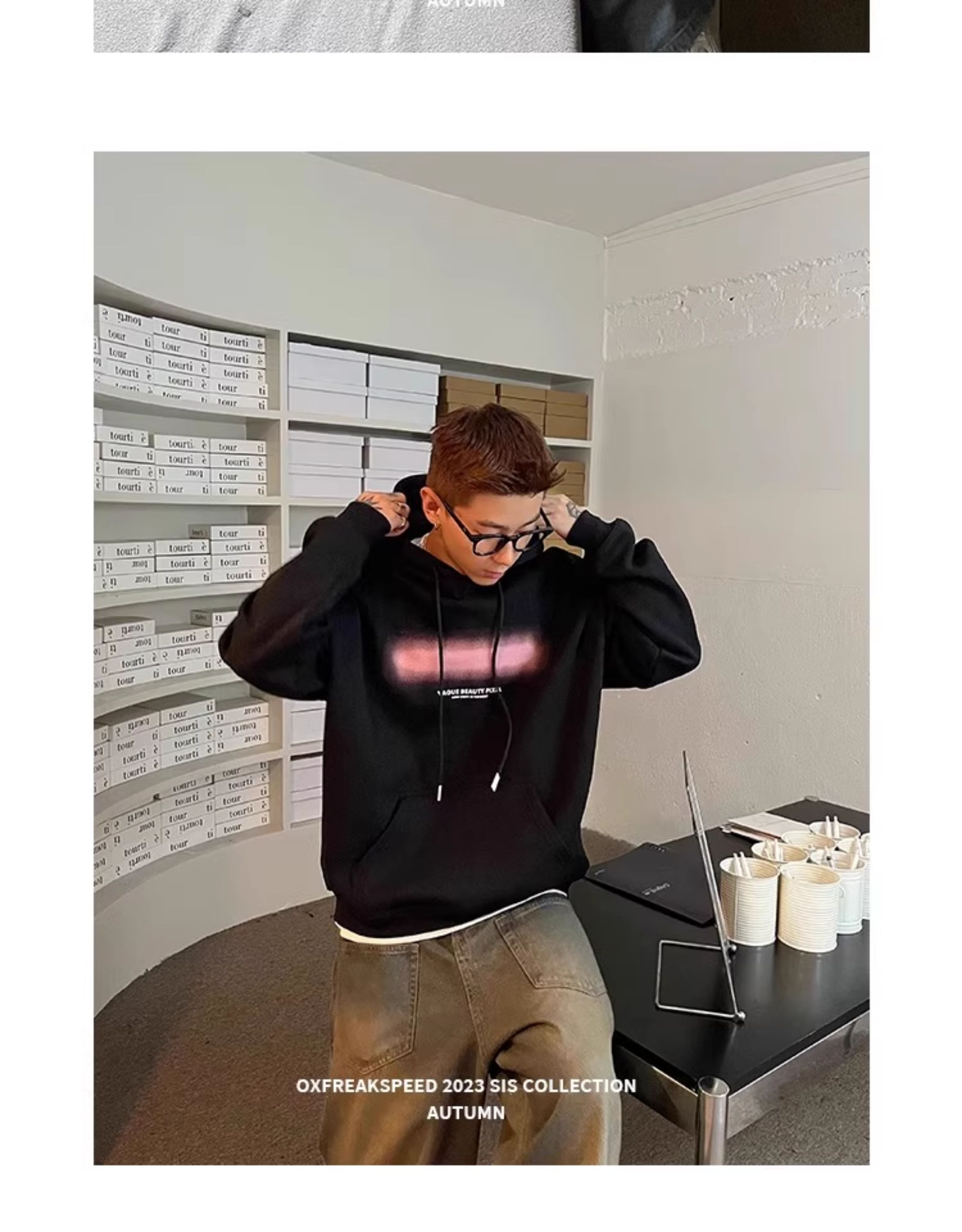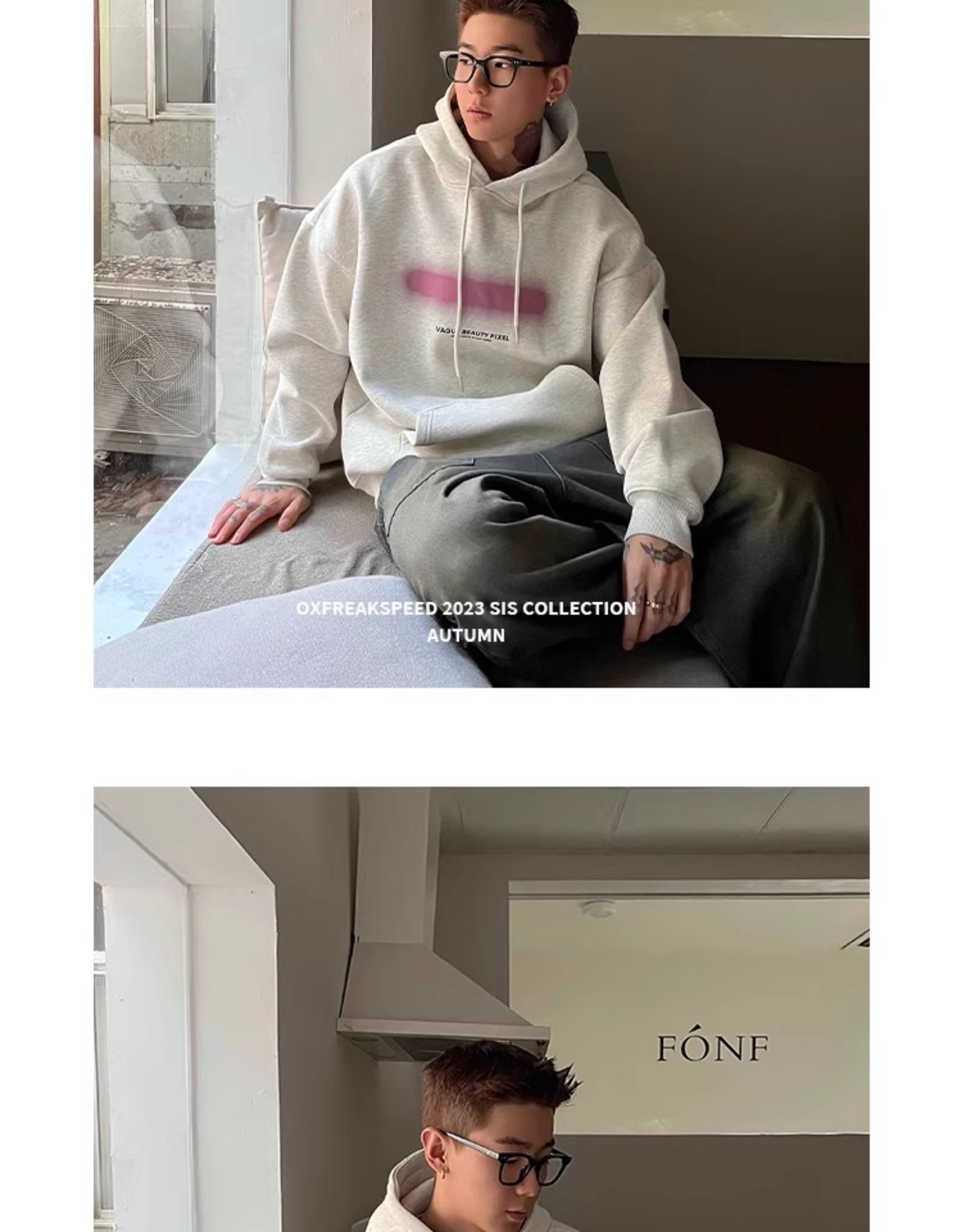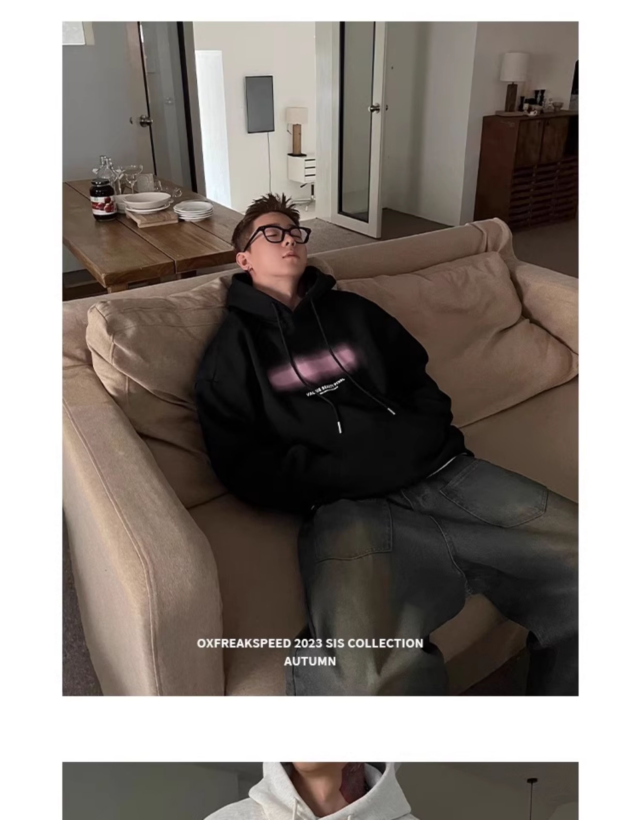 OXFREAK「霓虹噴色漸變」550G全棉重磅連帽衛衣男加絨加厚秋冬款