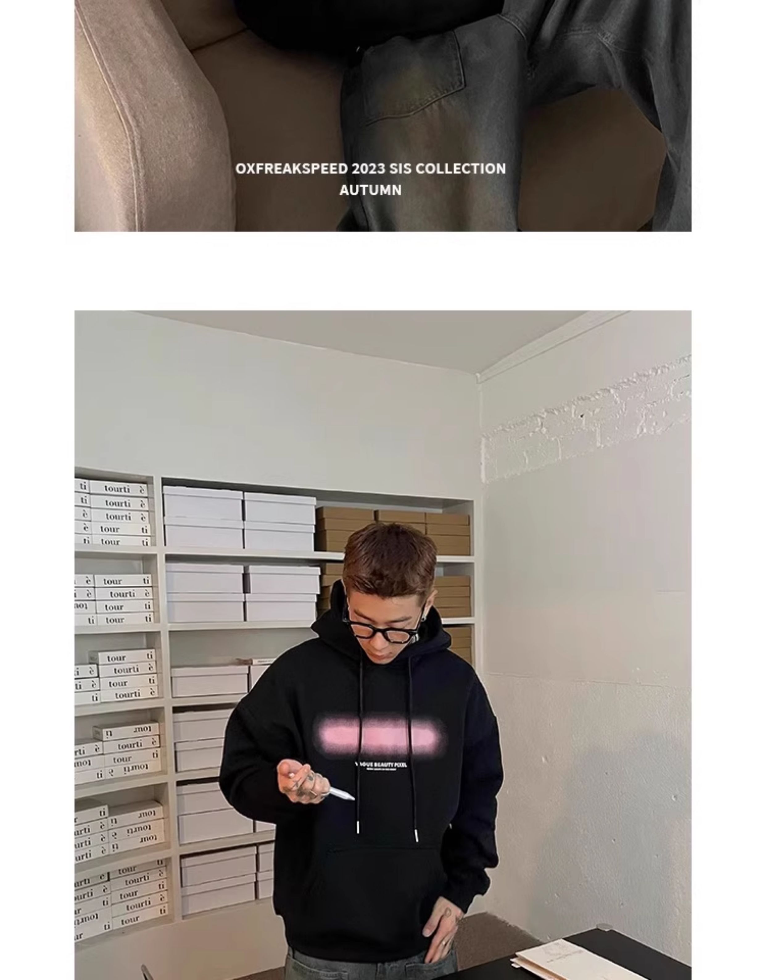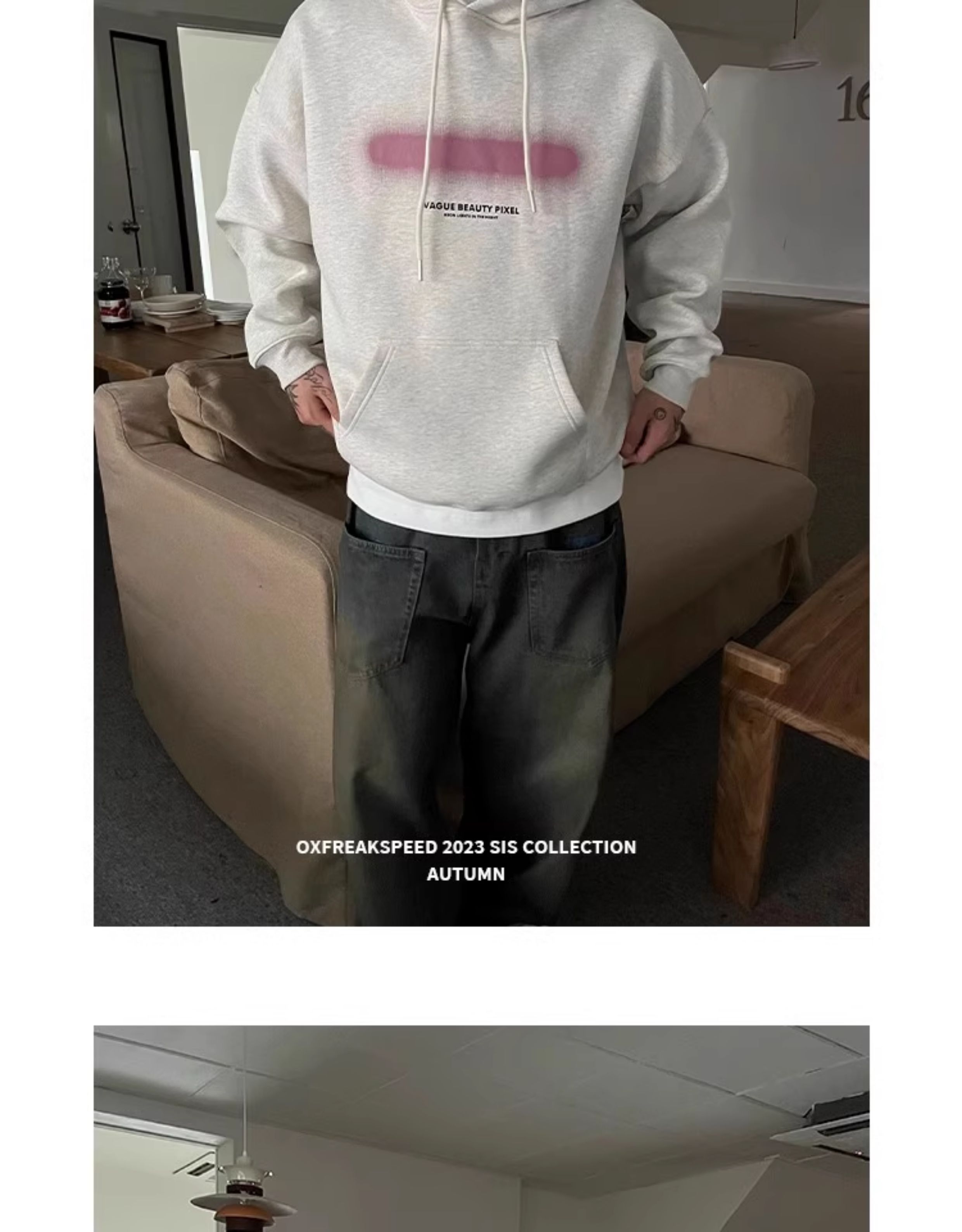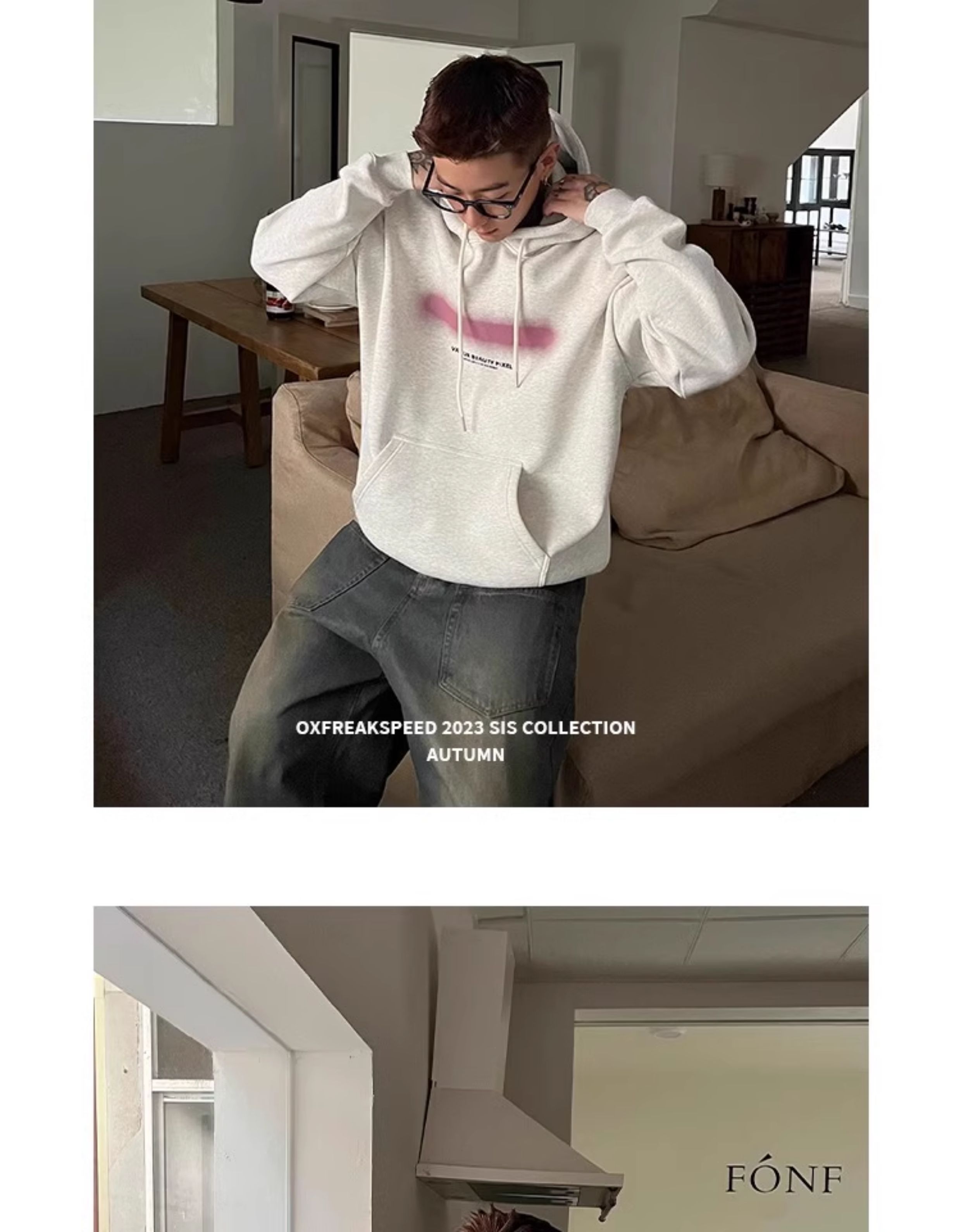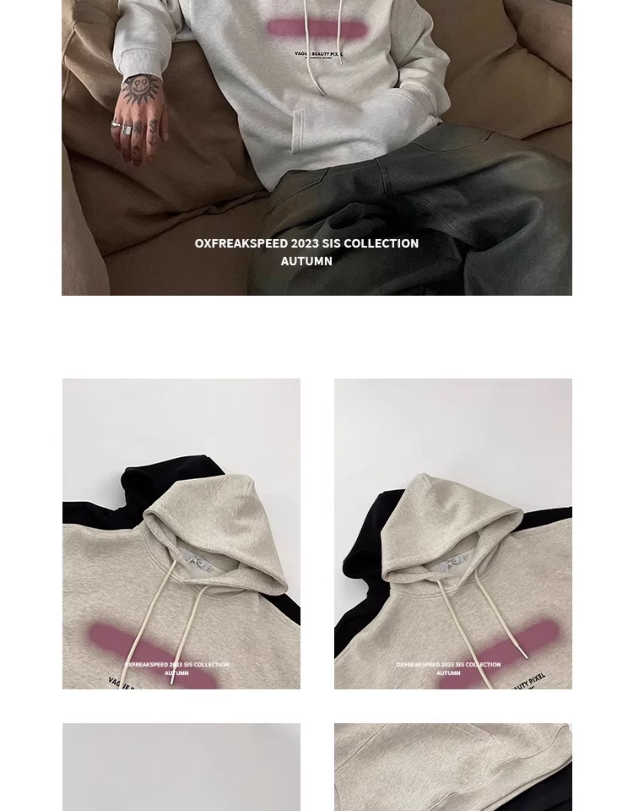 OXFREAK「霓虹噴色漸變」550G全棉重磅連帽衛衣男加絨加厚秋冬款