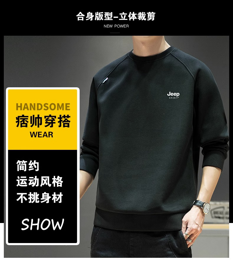 JEEP衛衣男款春秋季2025新款圓領男生潮牌上衣服寬松運動男士外套