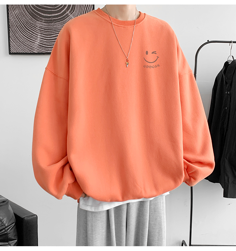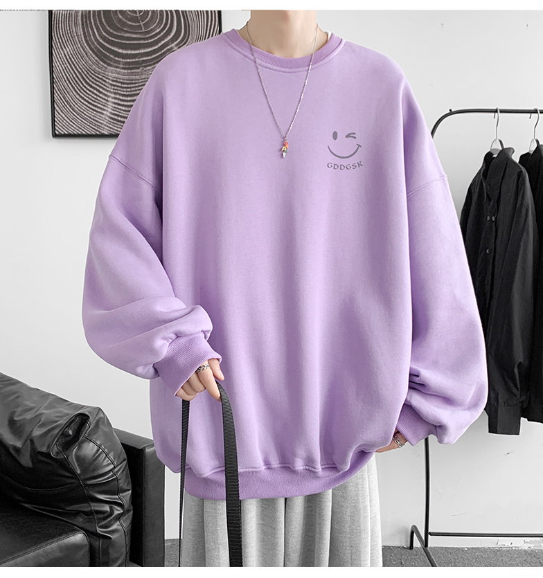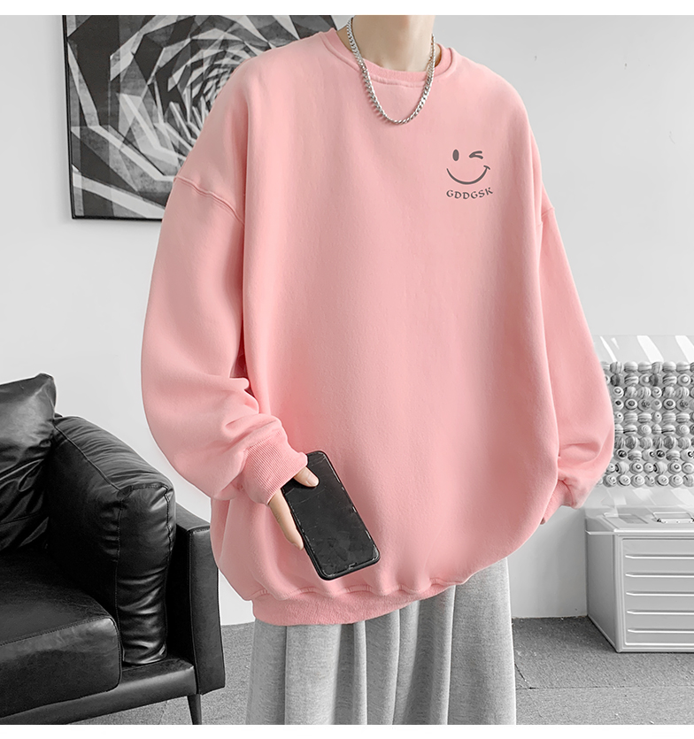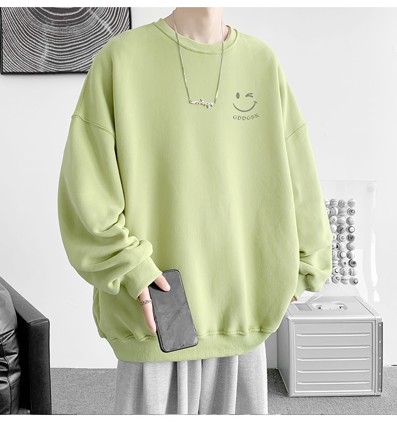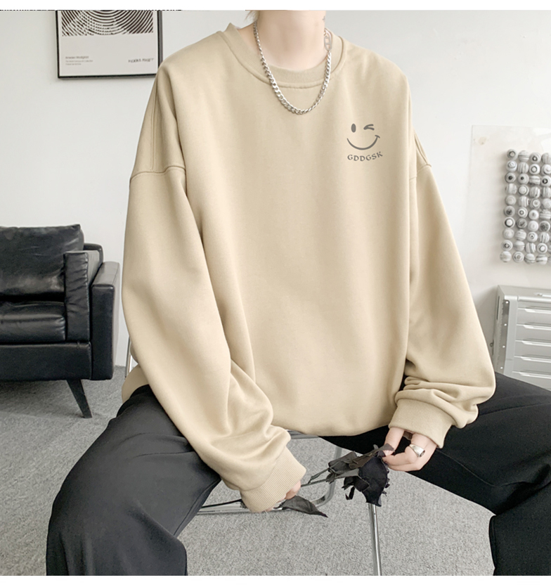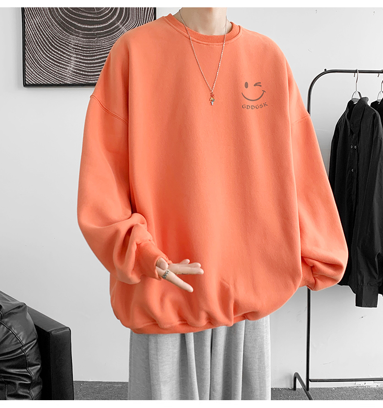 500G重磅衛衣男秋冬笑臉印花打底衫寬松情侶裝落肩款外套大碼潮流