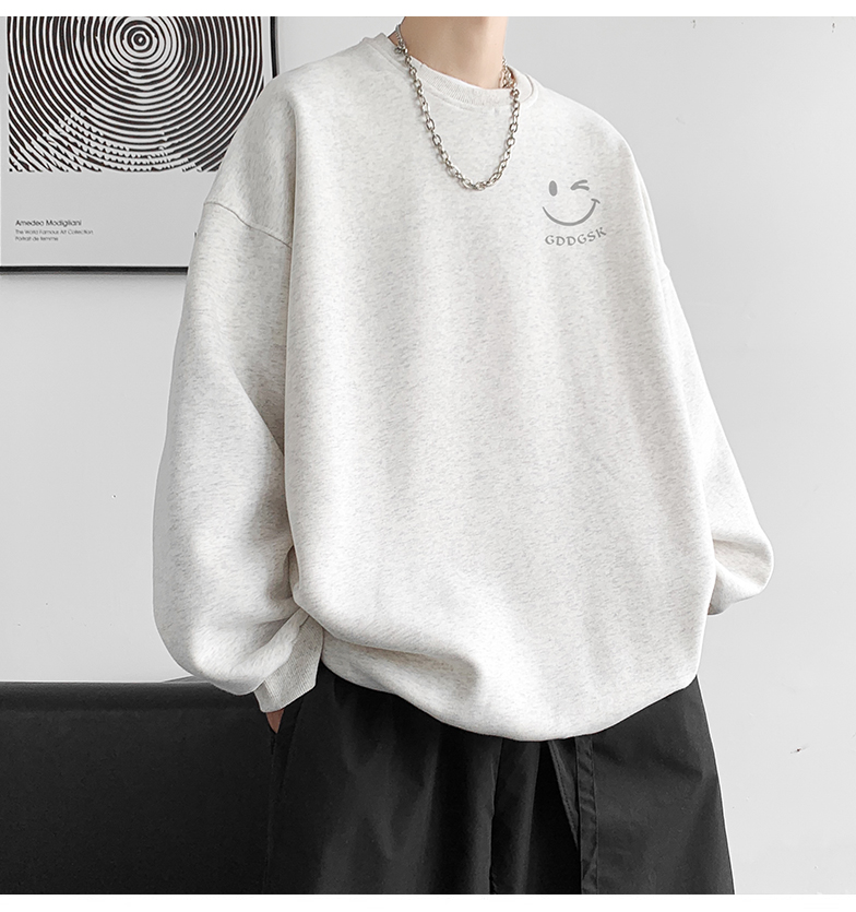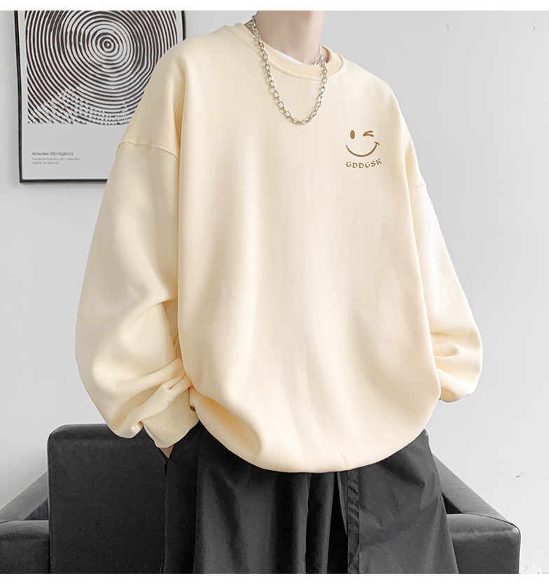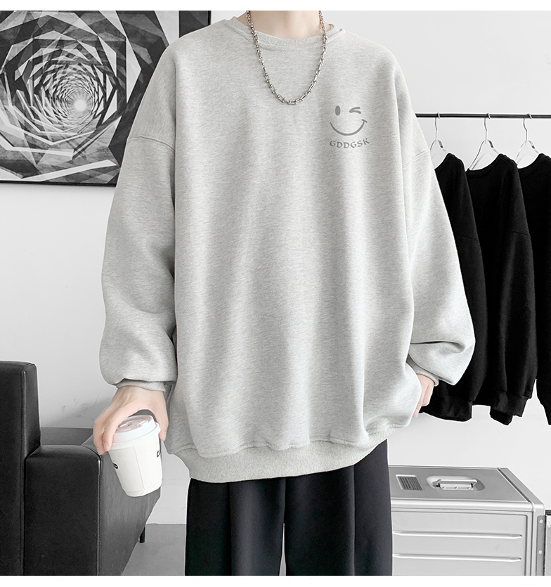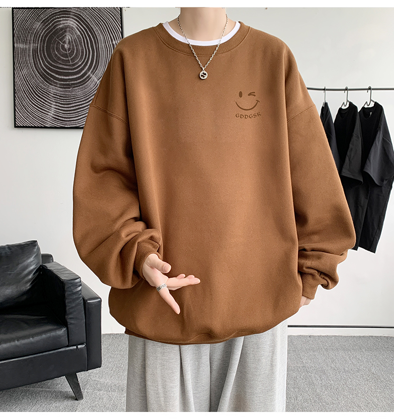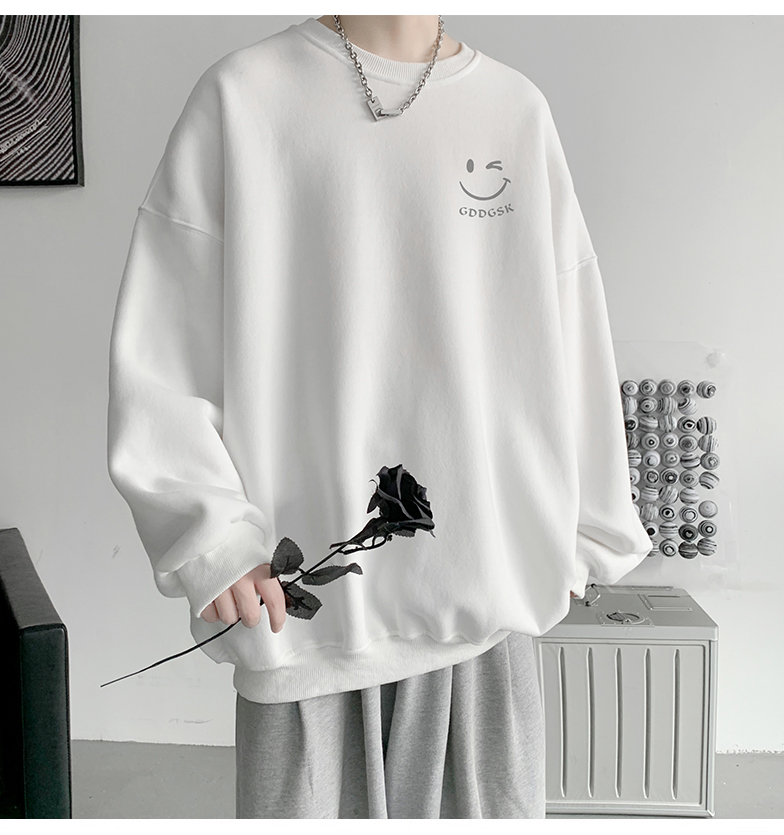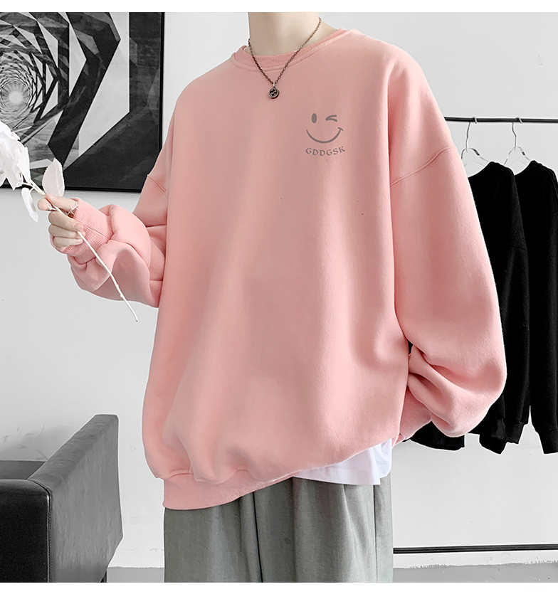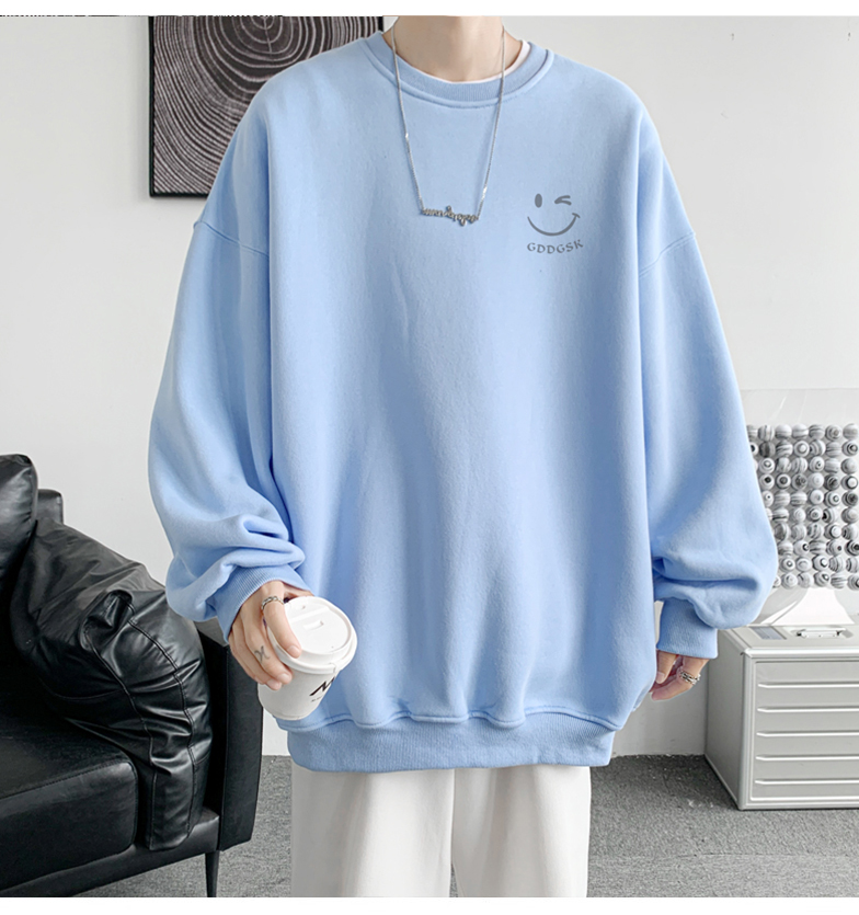 500G重磅衛衣男秋冬笑臉印花打底衫寬松情侶裝落肩款外套大碼潮流