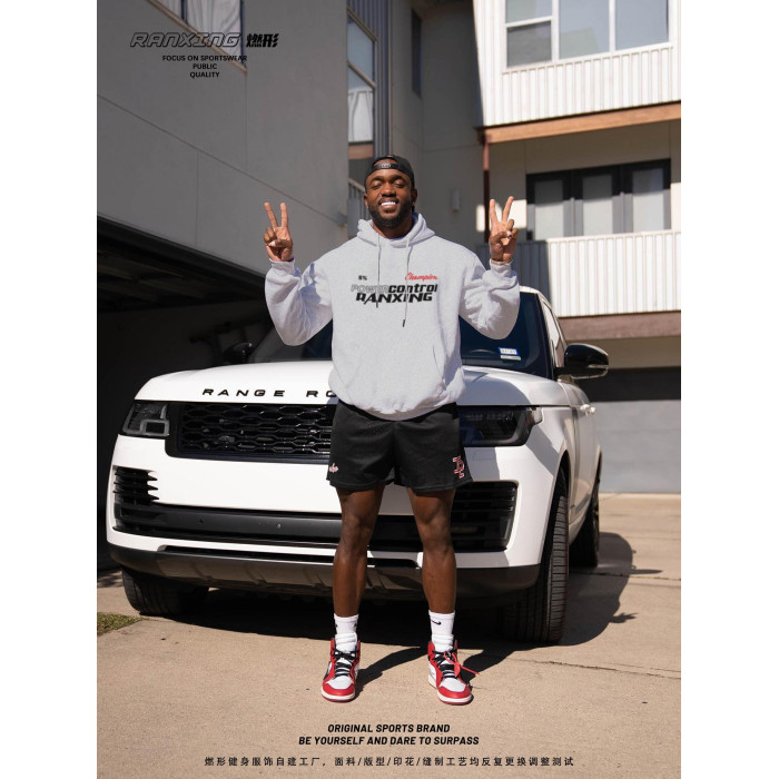 燃形5%態度連帽衛衣純棉寬松重磅健身擼鐵大碼冬季男女小衆設計師