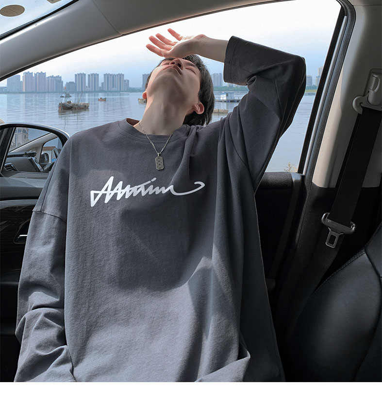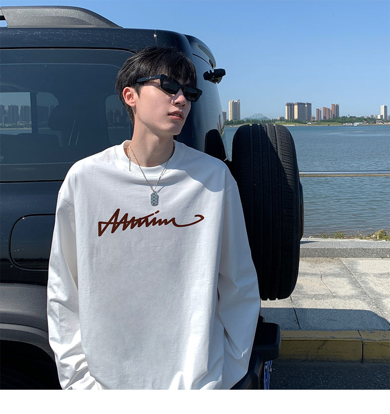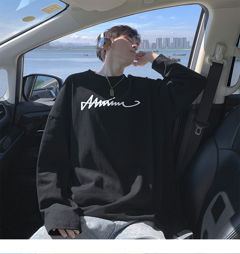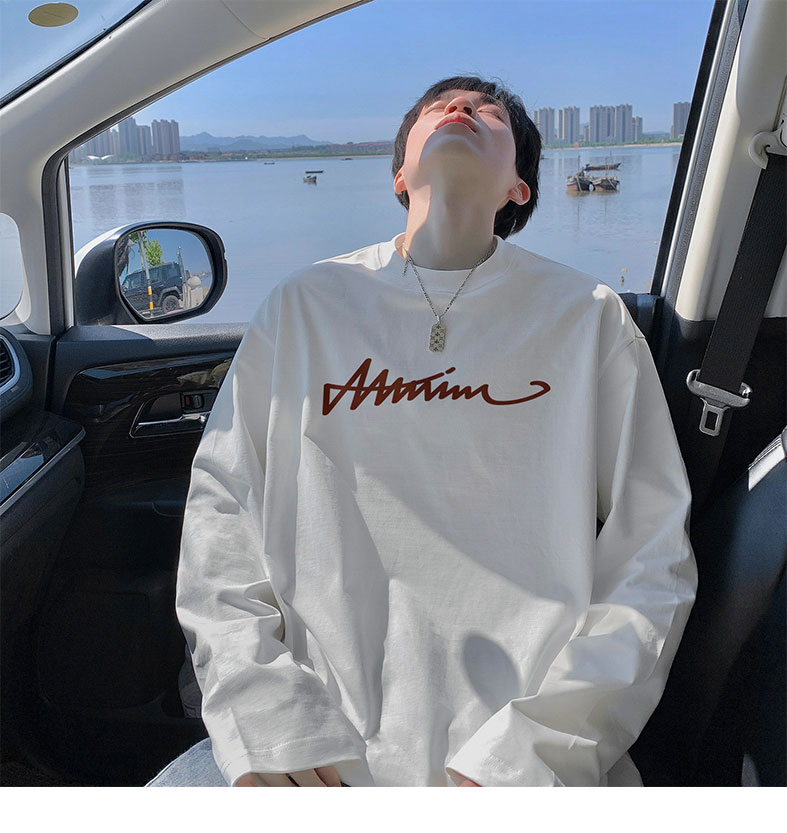 白色小衆設計感長袖t恤男春秋季2024新款重磅純棉初高中學生衛衣