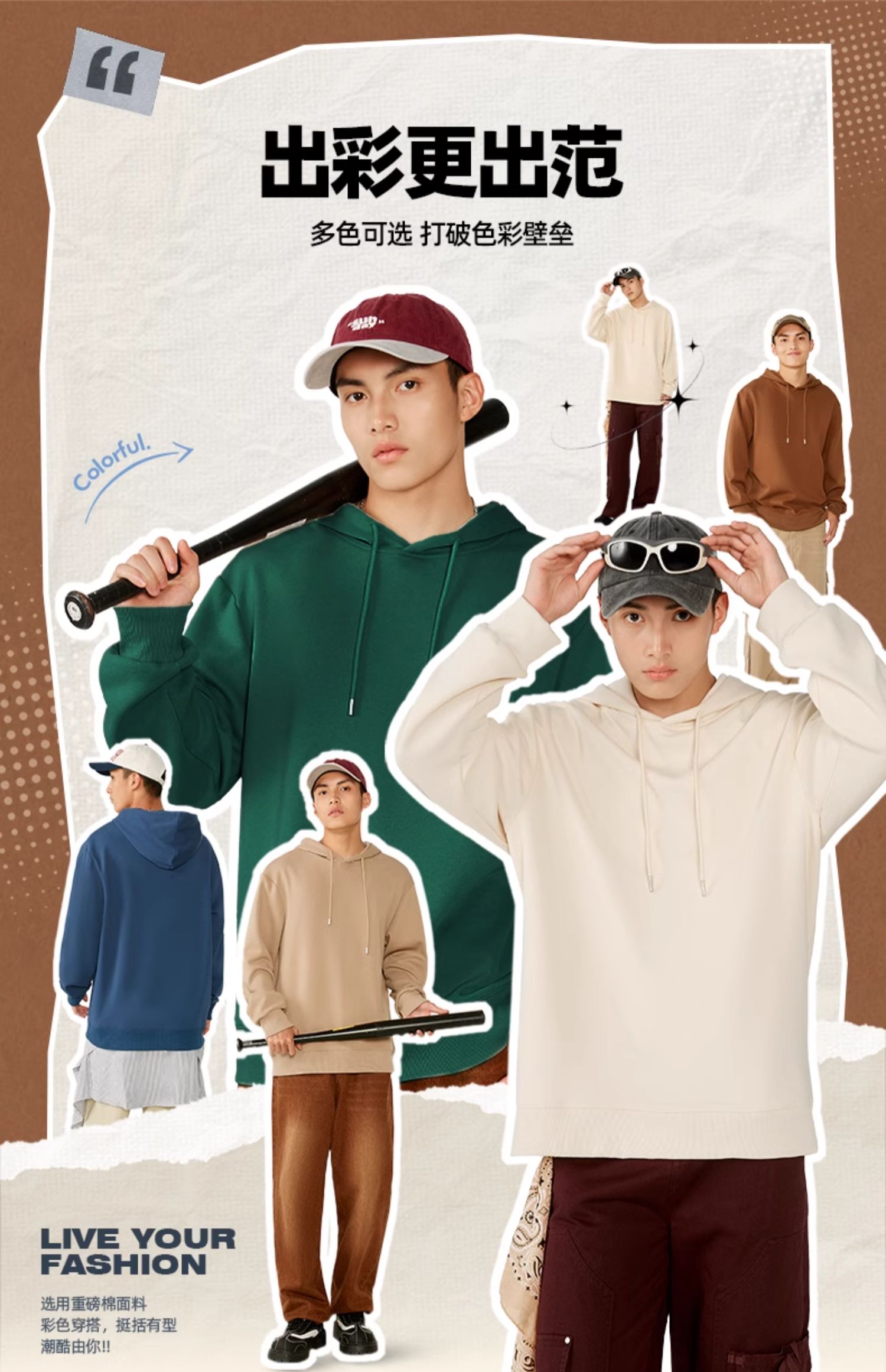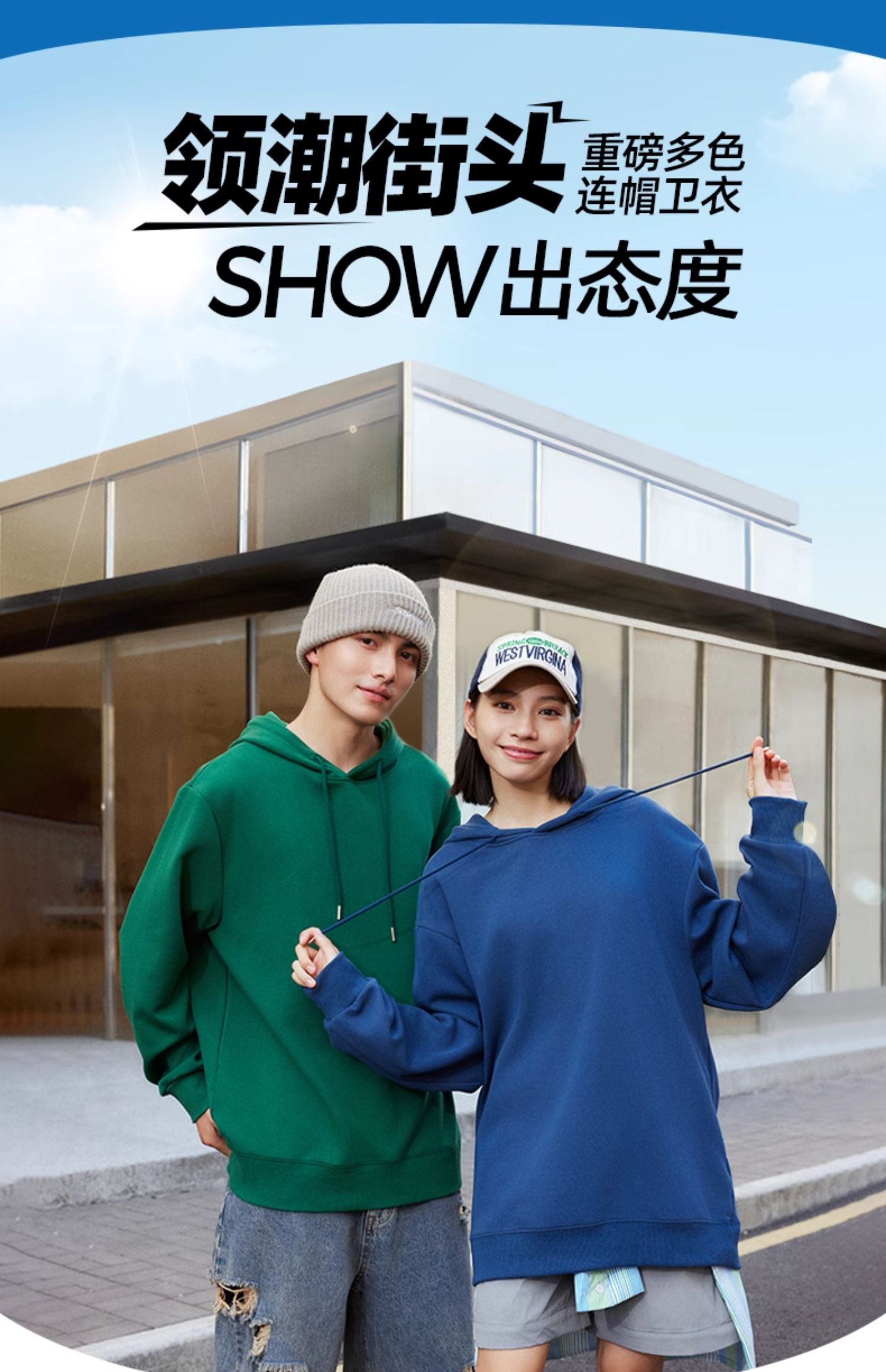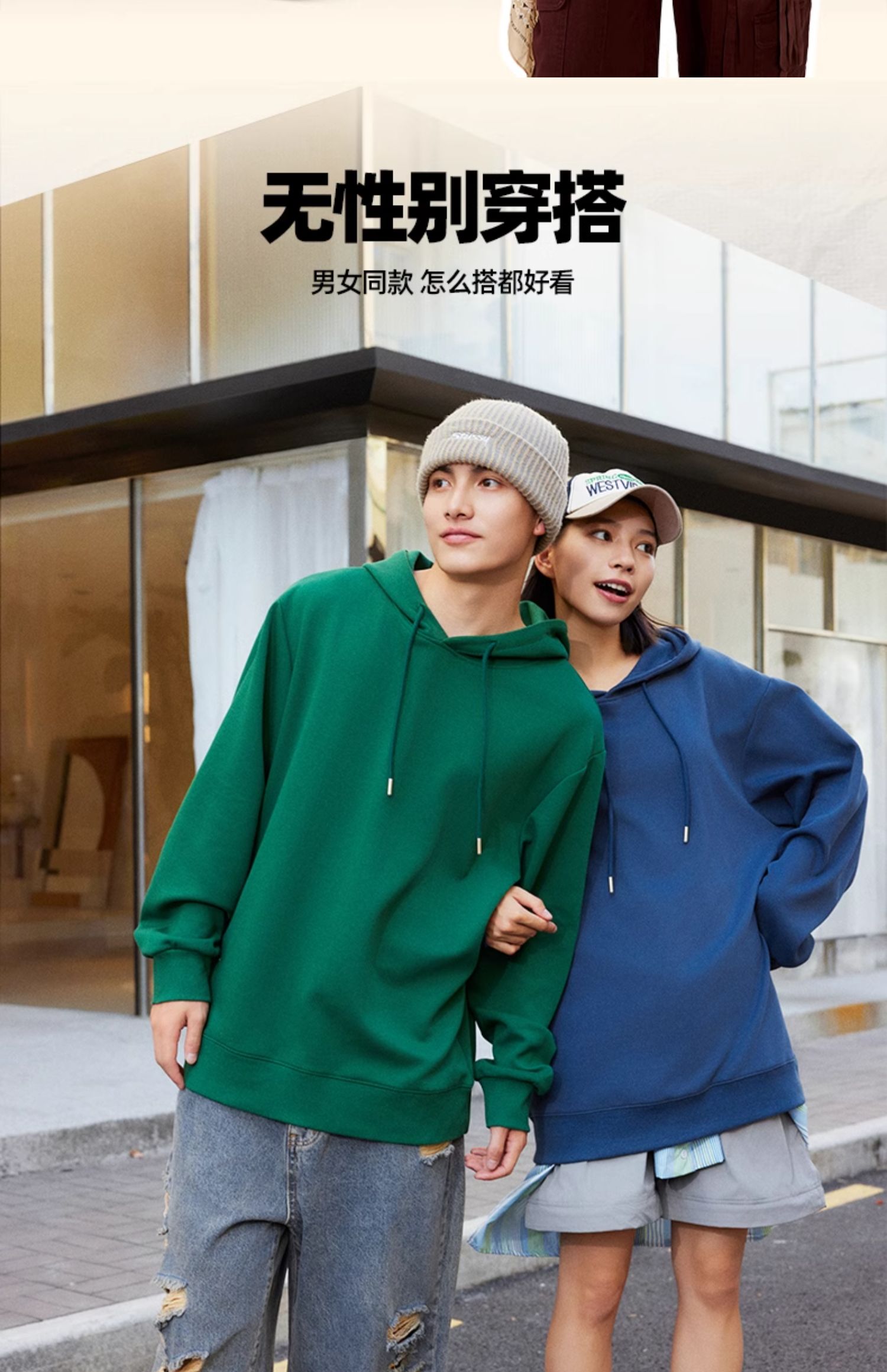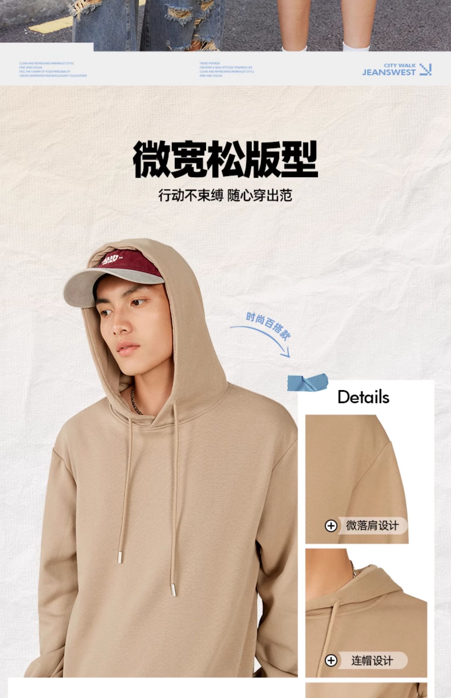 真維斯LIFE灰色連帽衛衣男秋冬季2025新款潮牌上衣加絨男士外套M